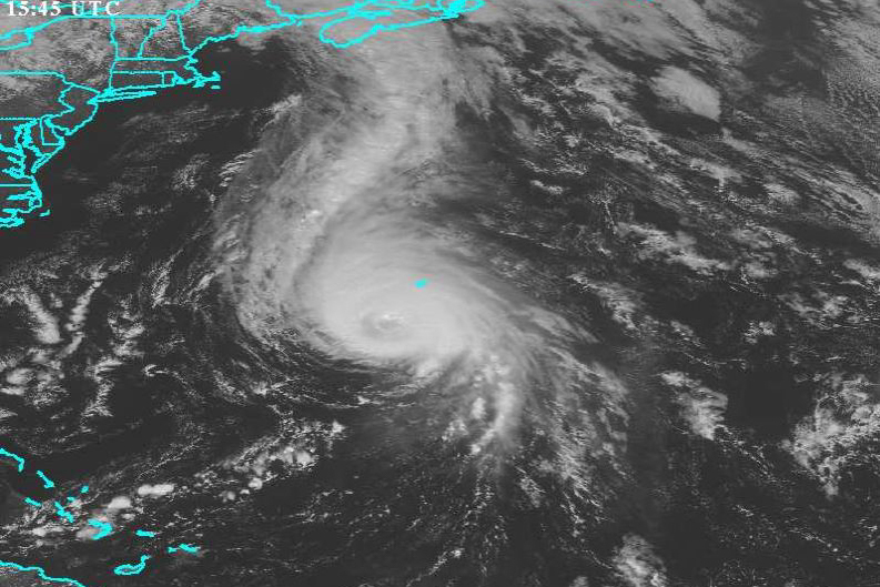 A view of Gonzalo from space as things were picking up (but before we lost power) – Bermuda is that little blue ‘blip’ in the middle, you can see the eye of the storm to our southwest.