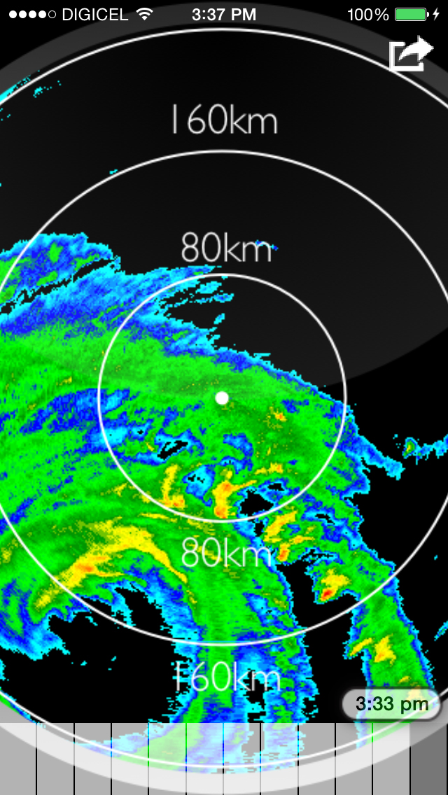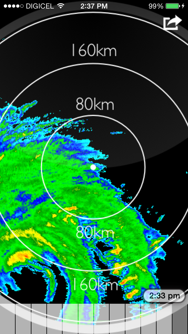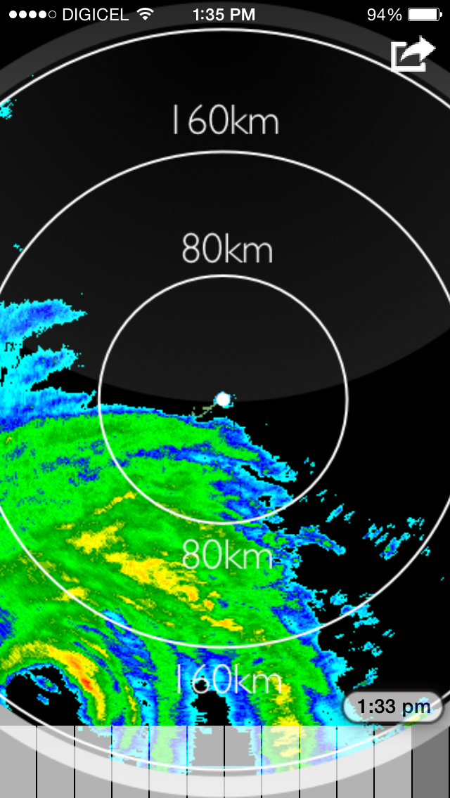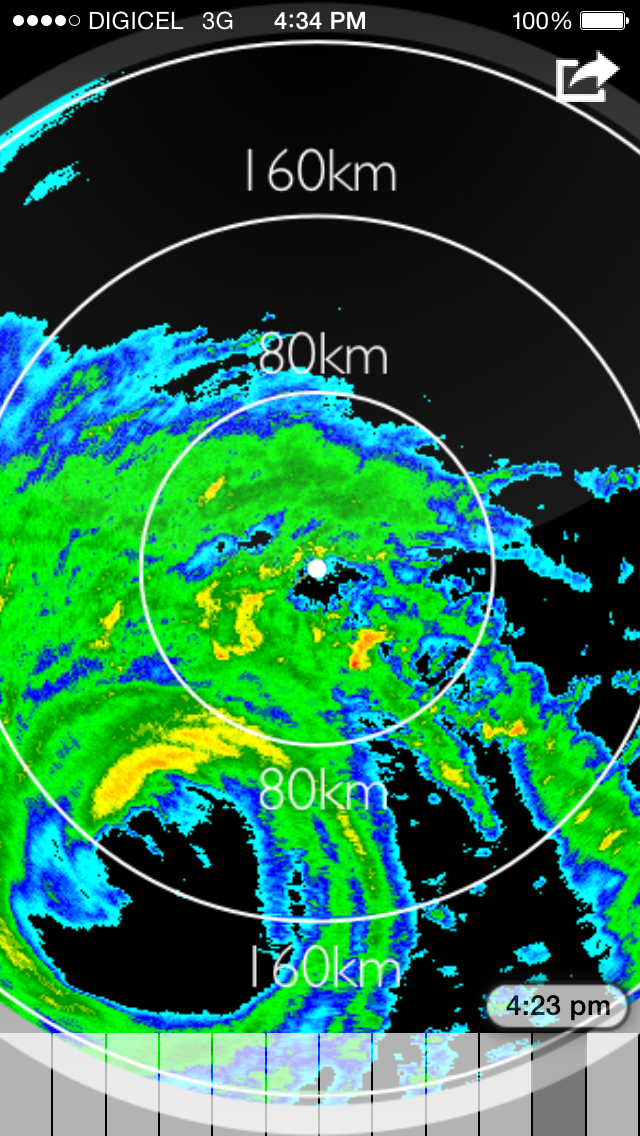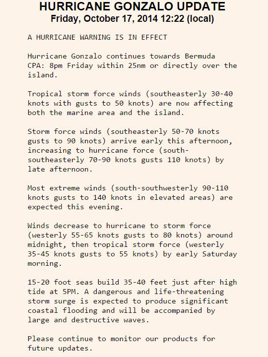 A typical storm warning from the Bermuda Weather service… note that to get kph you multiply a knot by 1.85…!