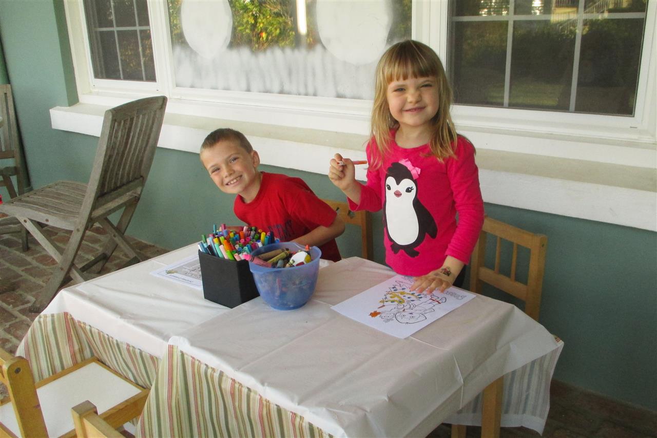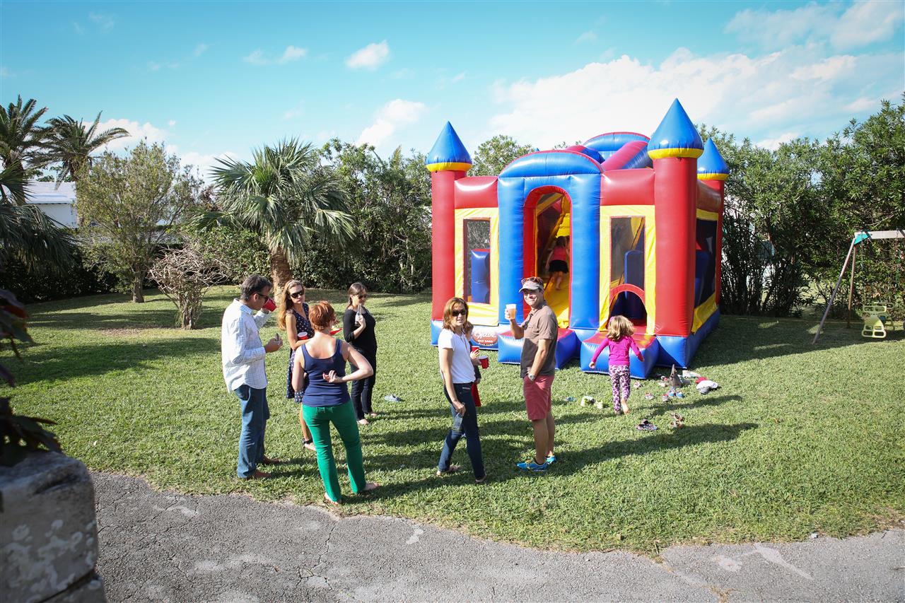 There was a bouncy castle, football (soccer) nets, and basketball for the kids to play with as well as some coloring, etc… all in the name of keeping busy!
