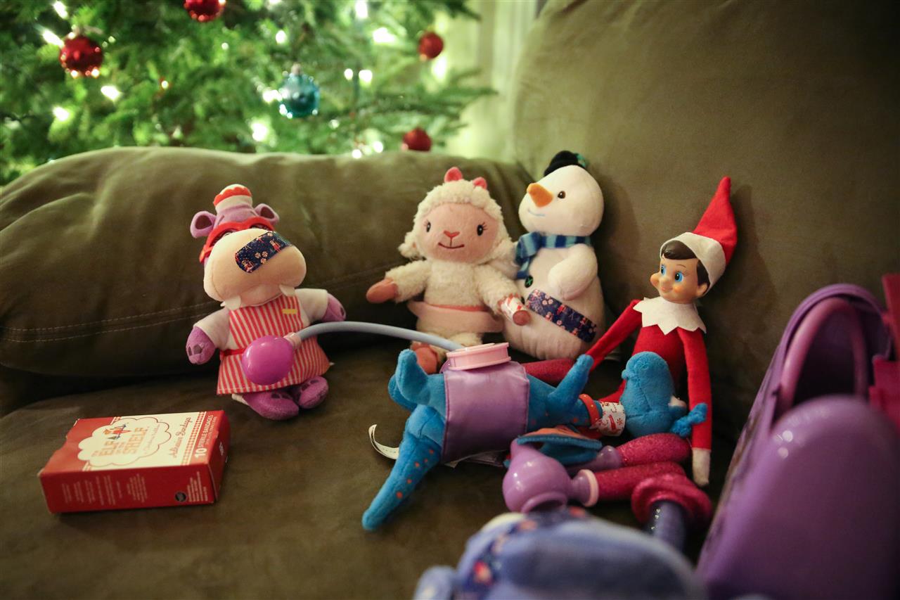 This year he’s started out by taking out all the kids’ Christmas books from Jenn’s hiding place… glad he had the strength for that after flying all the way here from the North Pole!