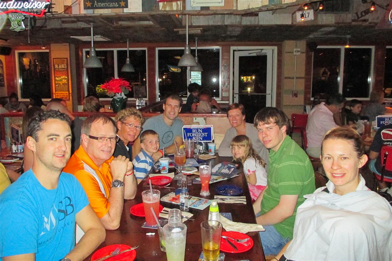 Christmas day was great – the kids made out like bandits per usual (lots of Skylanders for Josh and an American Girl doll for Ryley – and of course Lego for both as well as for Jenn!) Following the gift opening was our annual pilgrimage to the beach… and then another fantastic feast with Joel & Kandis’ family that evening! To top it off, after Christmas dinner Joel set up a ping-pong net on their dining room table (ping pong being a Christmas tradition in his family), where we had a mini-tourney on the mini-table. Lots of fun!