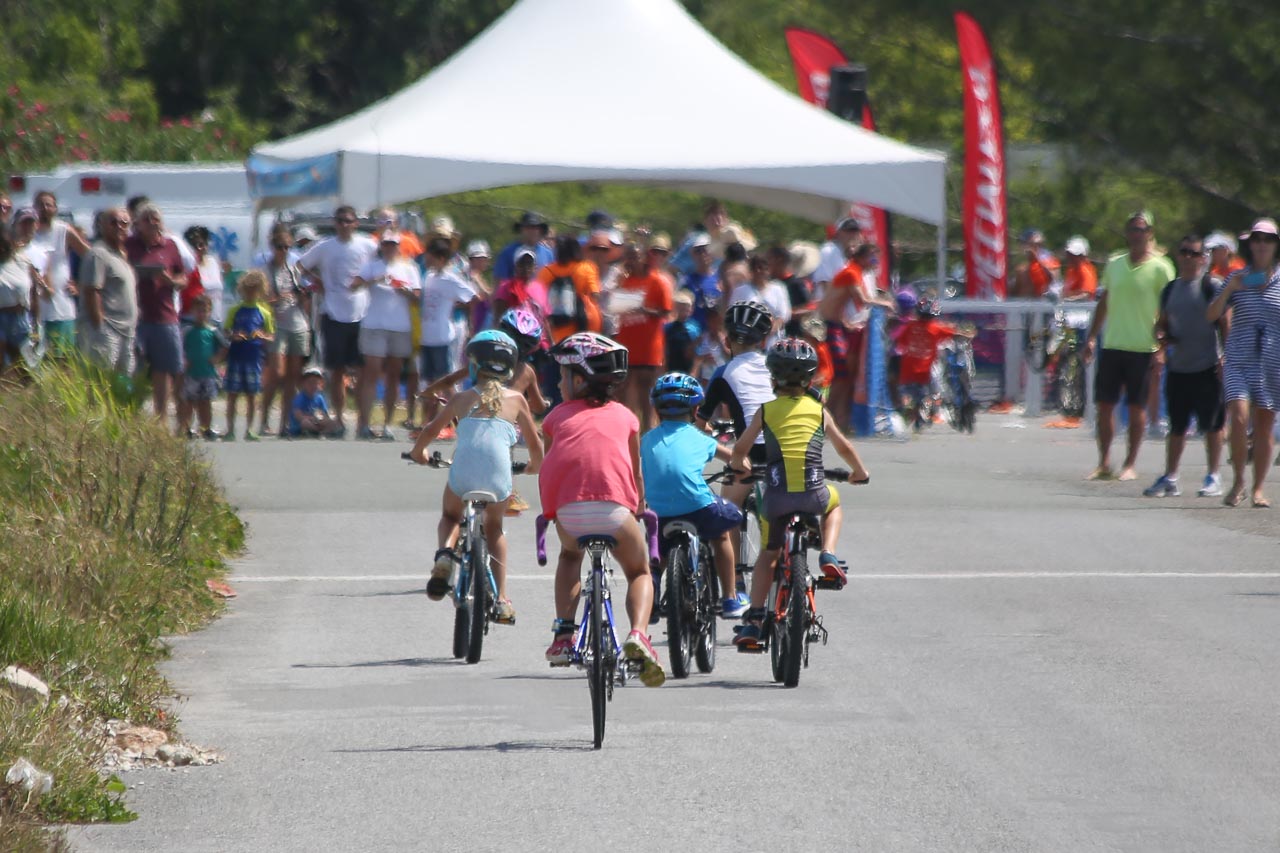 Ryley’s turn!  Officially, her race (3-6 year-olds) was a 10m swim, a 250m bike, and a 50m run.