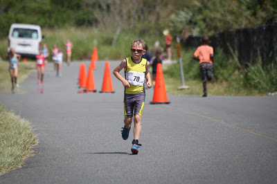 This was Josh’s second triathlon since joining the Tri-Hedz kids’ triathlon group (his first being the Tokio triathlon at the end of May), but this was the first one with a swim!  The 7 to 10 year-olds had to do a 100m swim, a 2.5 mile bike (4km), and a half mile run (0.8 km).