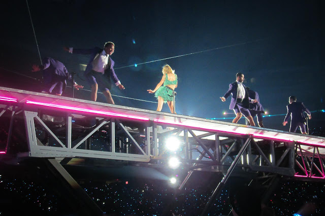 Taylor finished the night with “Shake It Off”, and during this number the entire catwalk was vaulted in the air and ended up twirling around… fairly impressive. We were close enough that when it turned around it went over our heads…!