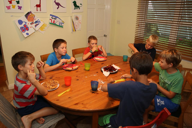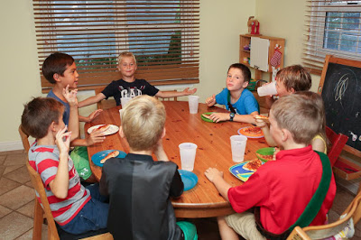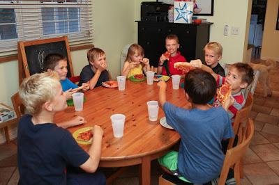 Once we thought they had lost enough darts around the yard, it was time to head inside for pizza – of course, they all played inside quietly (!) while waiting for us to get it all ready… (some were quieter than others!)