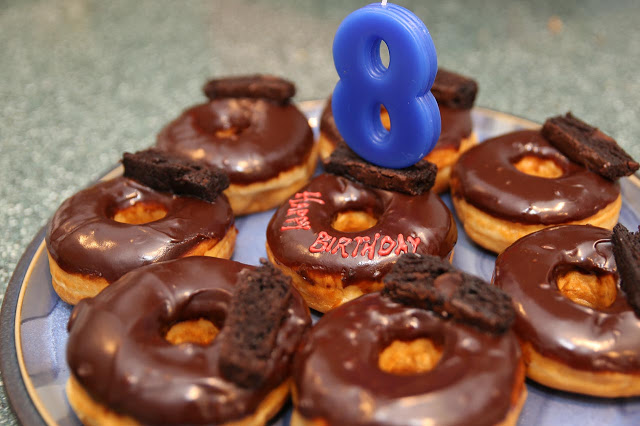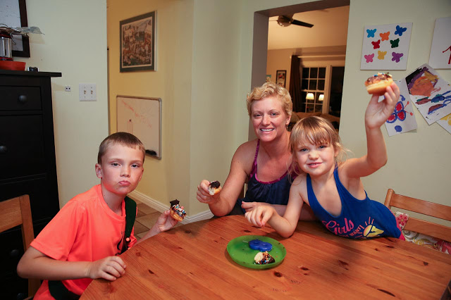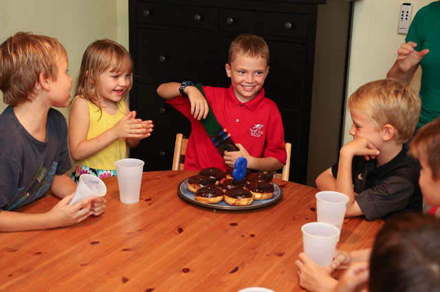 Jenn thought it would be a fun idea to have doughnuts for the kids instead of a cake (…or maybe she was cleverly trying to get out of making a cake…), a nice change of pace.