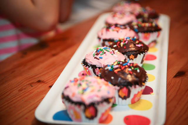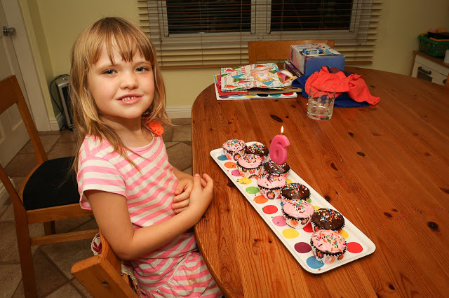 Then a special birthday supper after school, complete with cupcakes by Daddy!