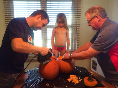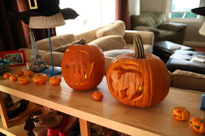 We spend most of the day getting a few things together for what has become our annual Halloween shindig – carving pumpkins (yes, with powertools – oh yeah!!), making pumpkin soup, etc. We were lucky Grandma & Grandpa Boys arrived for a visit on the Thursday before – we couldn’t find a pumpkin anywhere the week before but Jenn saw that Wadson’s farm had some so we send Grandpa for a little trip over to the other side of the island to pick some up while we were at work!