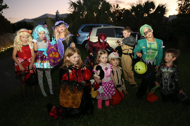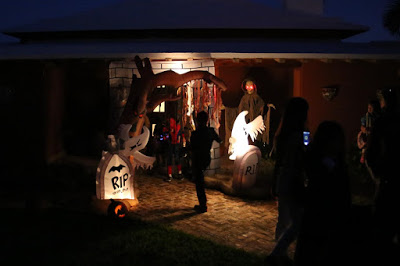 For those who don’t know, our house is on a little road that forms an elongated circle, which is apparently good for trick or treating. There are several of these sorts of busy neighborhoods around the island that have good access and parking for the trick or treaters so we like to invite our friends to come and park in our yard and take the kids around, then come back and hang around for a few adult beverages, etc.