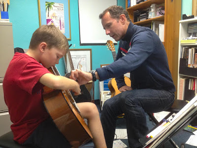 Thought I would post a few pics of the kids starting piano (Ryley) & guitar (Josh) lessons for the first time… for posterity of course.