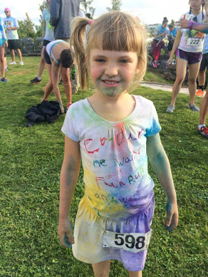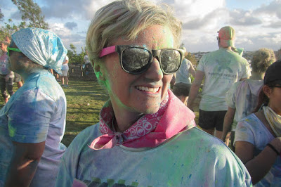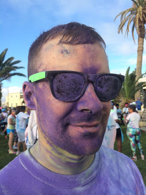 At the end of the race there was a BBQ / pizza and a bar, so most participants hung around for a while after the race. This is where everyone really got messy! There were bags and buckets of the colored powder around and everyone got their own pack (or two…) to toss around on the grassy open area where people were hanging out. Pretty messy (but easy to clean, don’t worry)!