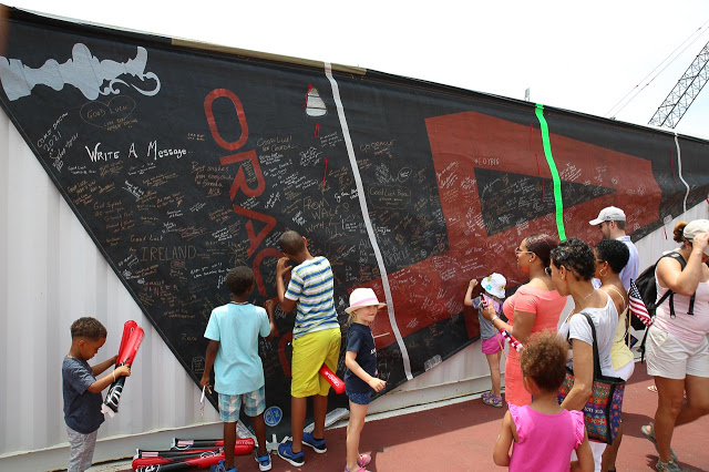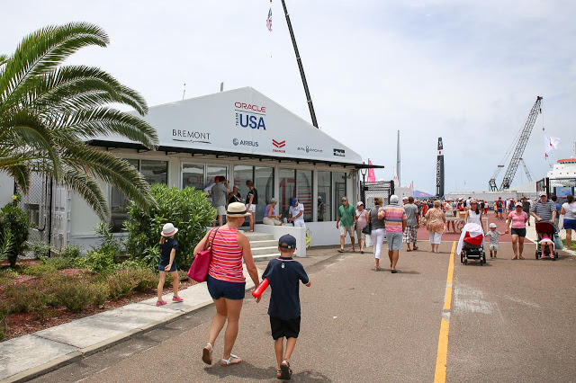 A few of the teams already have bases set up in Dockyard; Oracle (USA) and Softbank (Japan) had their bases open to the public for everyone to check out their facilities and have a little meet-n-greet with the sailors. Josh is now the proud owner of an Oracle T-shirt adorned with most of the team’s autographs!