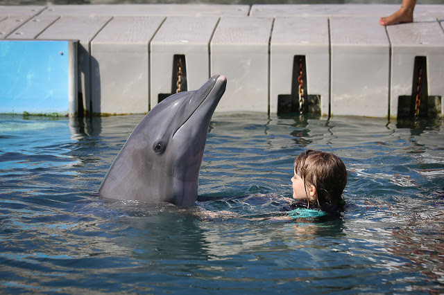 Then over we went to Dolphin Quest where Jenn and the kids went for a dip with the dolphins!