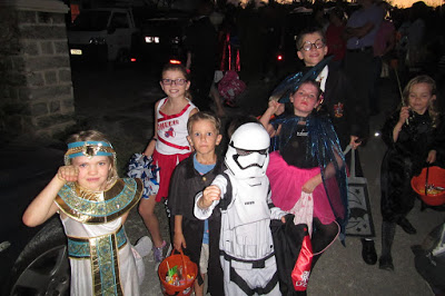 On Halloween night, we held our usual trick-or-treating party. Our neighborhood is a great place to trick or treat and is usually packed with lots of people so we invite our friends to come to ours, have a place to park, a drink and some pizza, and the kids get to go around the ‘hood to gather their sweets.