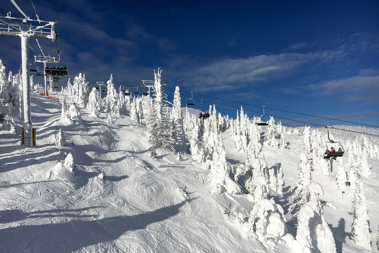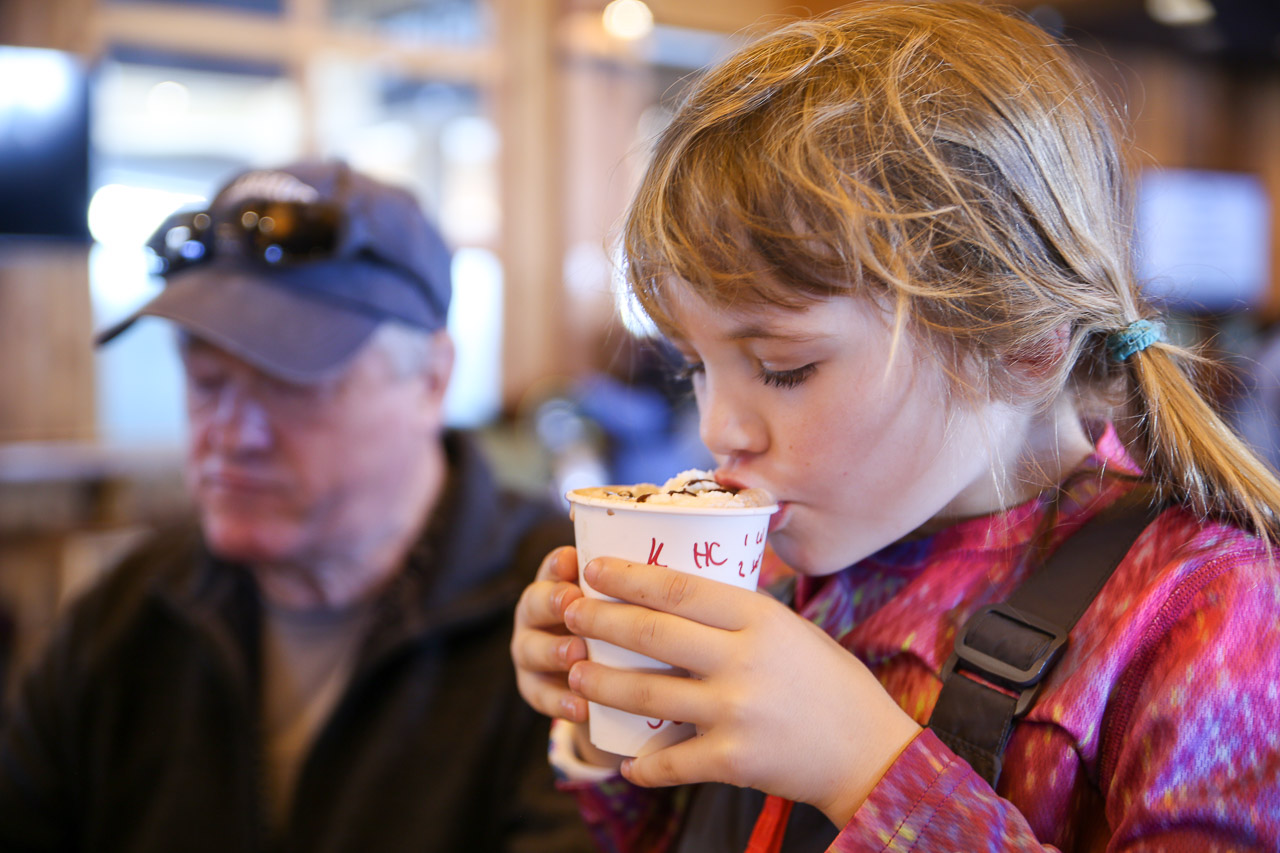 The amount of snow this year wasn’t as high as last year’s record snowfall, but there was still plenty to enjoy! Snow ghosts were abound in their usual perch on the top of the mountain, greeting us as we zip to the top on the lift. The temperature was just right, per usual – some days almost warm enough to ski without a jacket, others a little foggy and cool. I’m pretty sure no matter the weather we were always up for a hot chocolate in the village after a day’s skiing (and perhaps a beer after that).