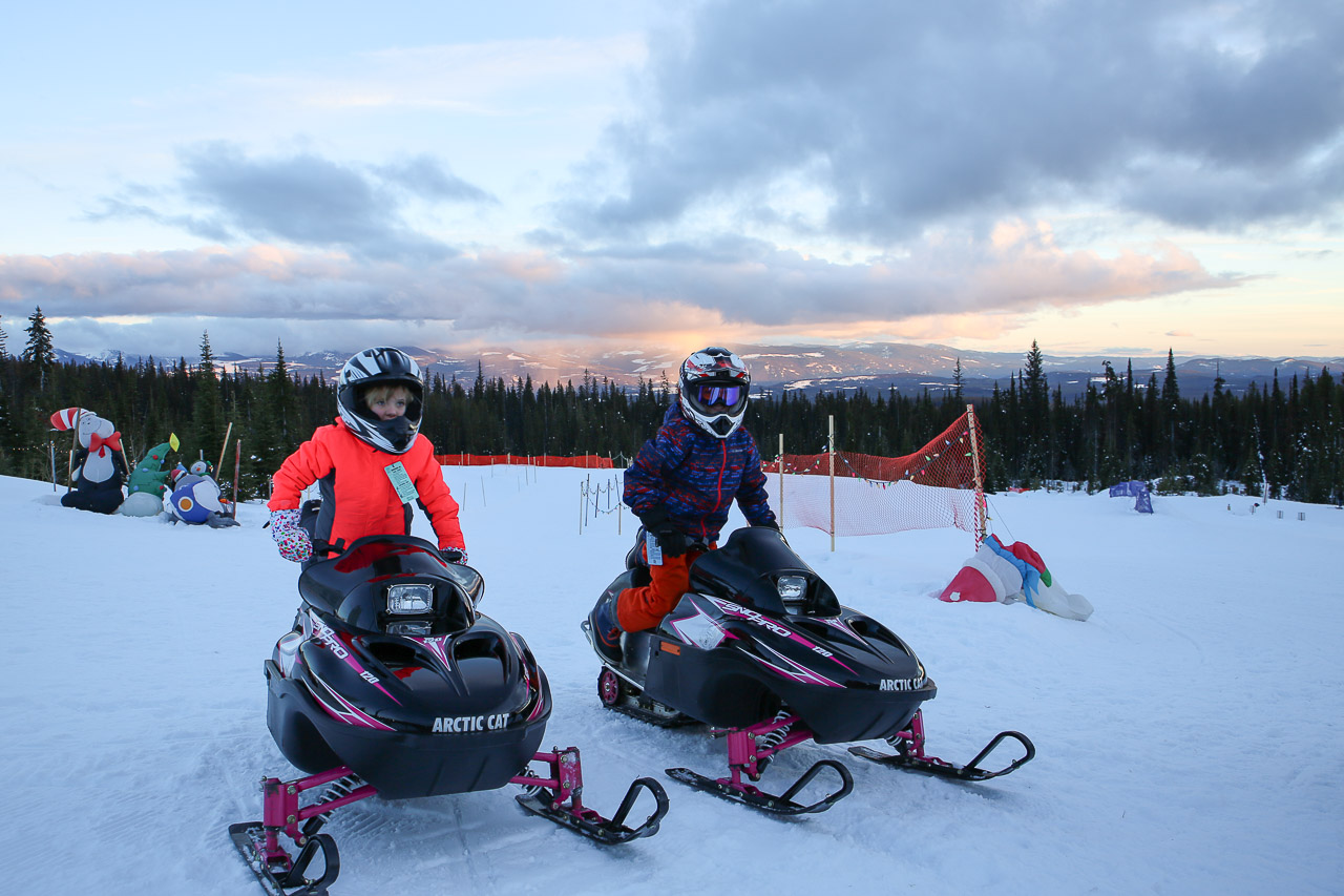 We also went on a sleigh ride with Grandma & Grandpa for some hot chocolate in the woods, while we were out we saw a team of dogs pulling a sled zoom by, they go pretty fast! Maybe one year we’ll do that, too. For now, the kids prefer the Mini-Z snowmobiles, and we were happy to avoid any crashes while taking their laps this year. 😉 Andrew and Sarah one-upped the Mini-Zs, however, as they brought their own fancy sleds with them and had some cool pics to share upon their return from the few day trips around the mountain. I think next time they should bring their sleds to the Mini-Z track and have a race with the kids! Ryley is pretty aggressive, it could turn ugly. 🙂