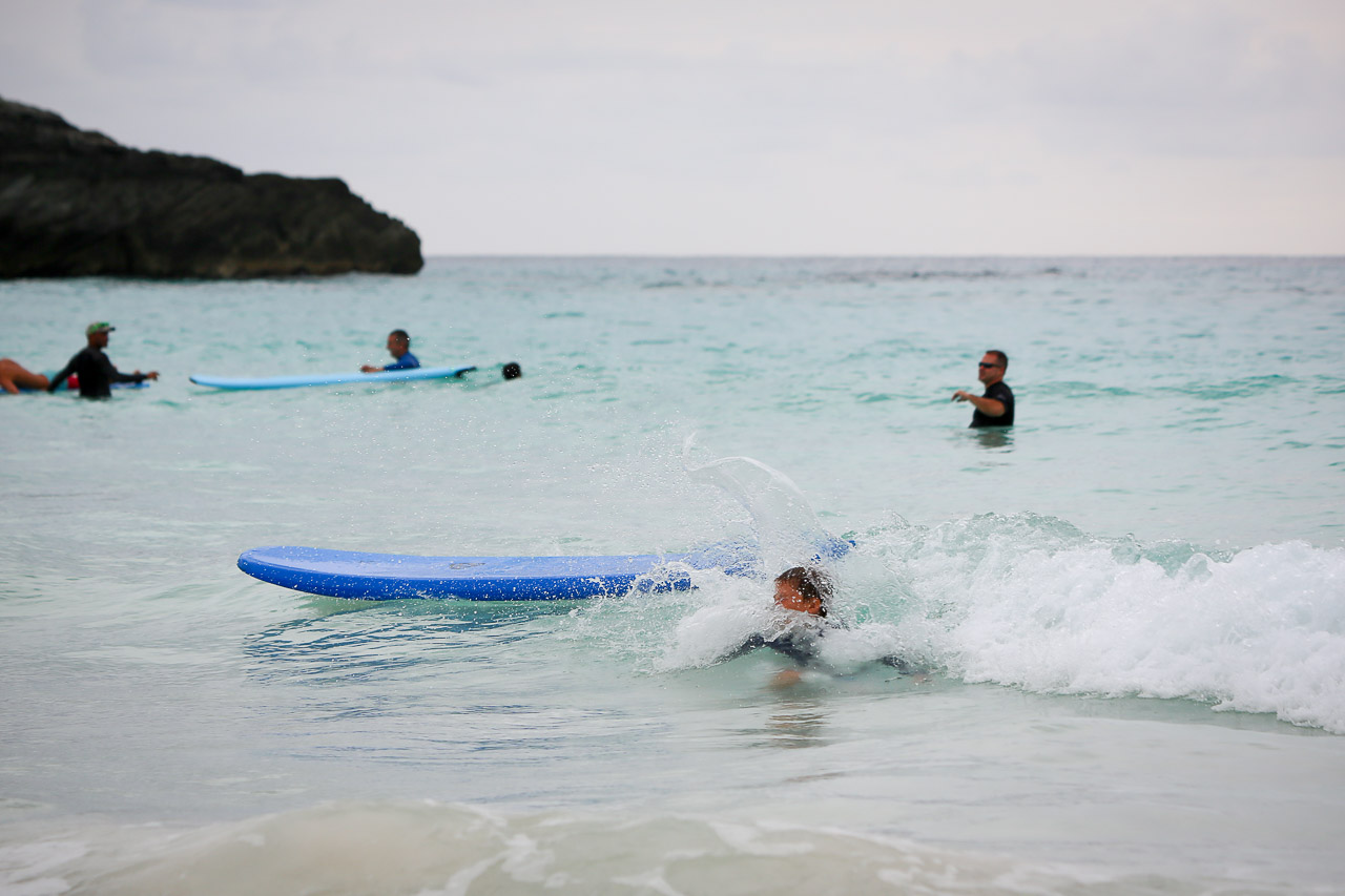 Who says you can’t surf in Bermuda? It seems that for most of the many years that Jenn and I have been here, no one has really done much surfing that we’ve seen, other than maybe when there is a hurricane in the vicinity! In the last few years, however, we’ve heard more and more comments about kids heading down to Horseshoe Bay for a surf lesson. Seems it was one of those things you think, “we should do that,” but didn’t get around to actually doing.