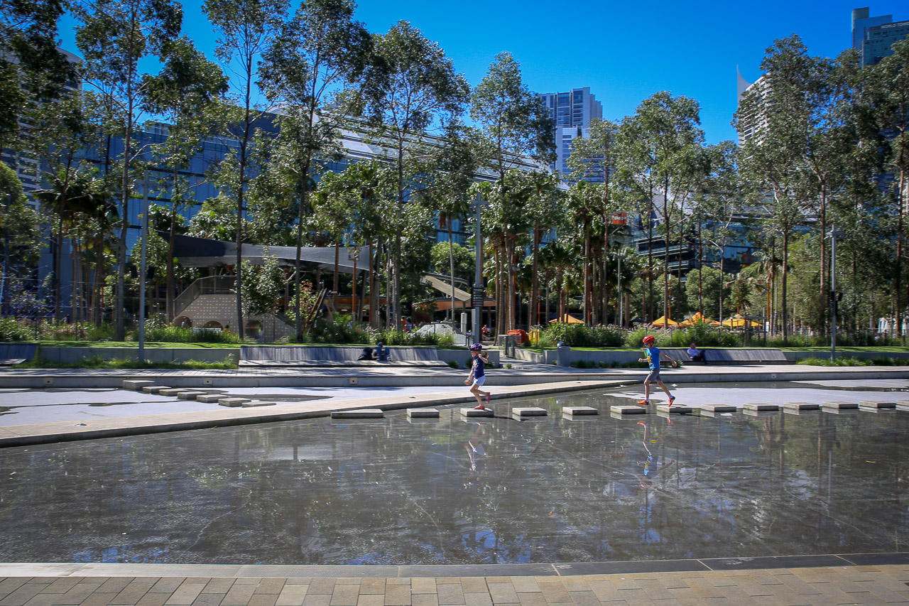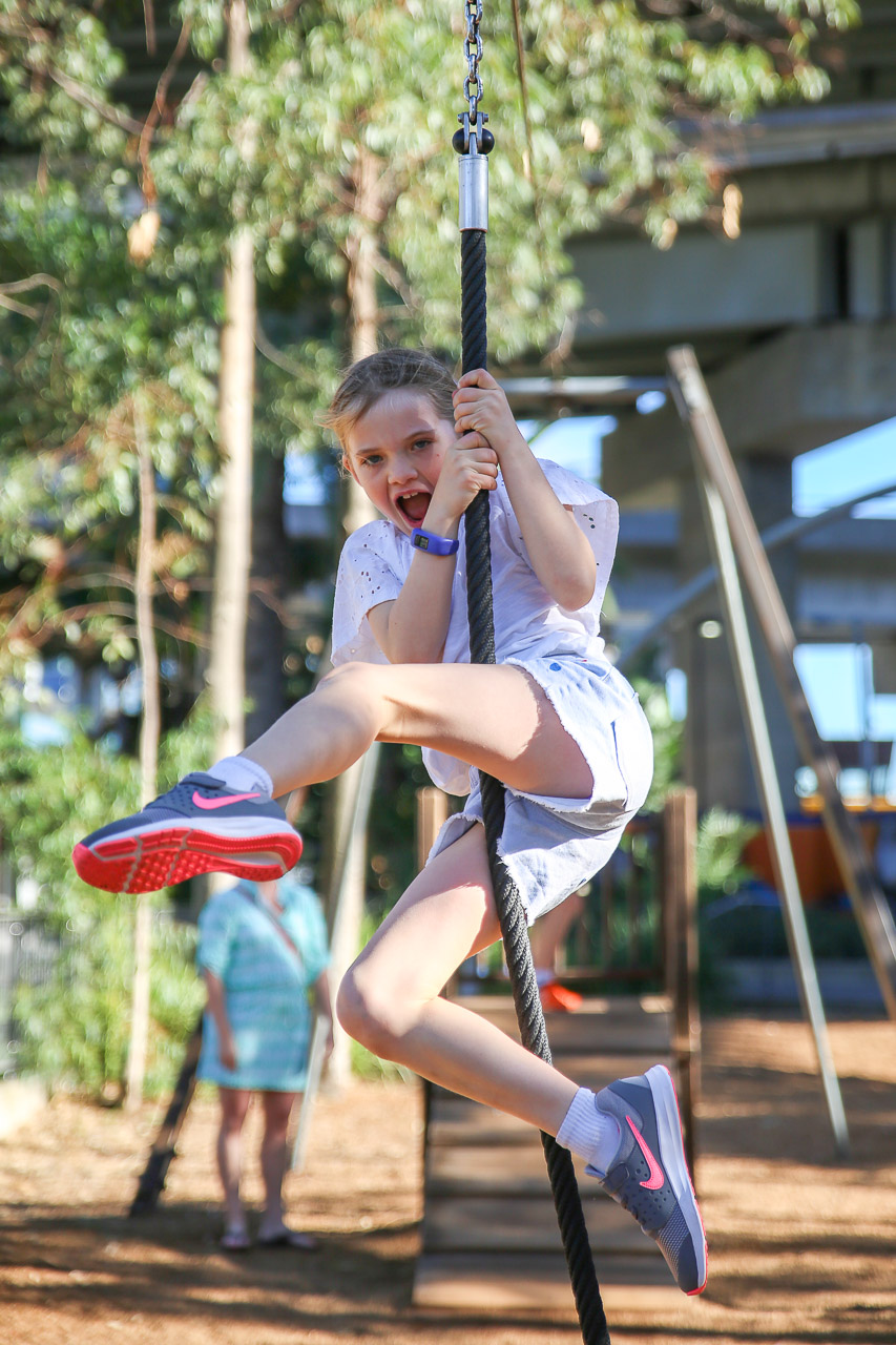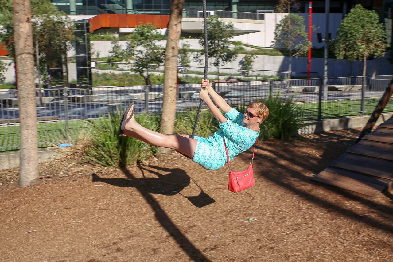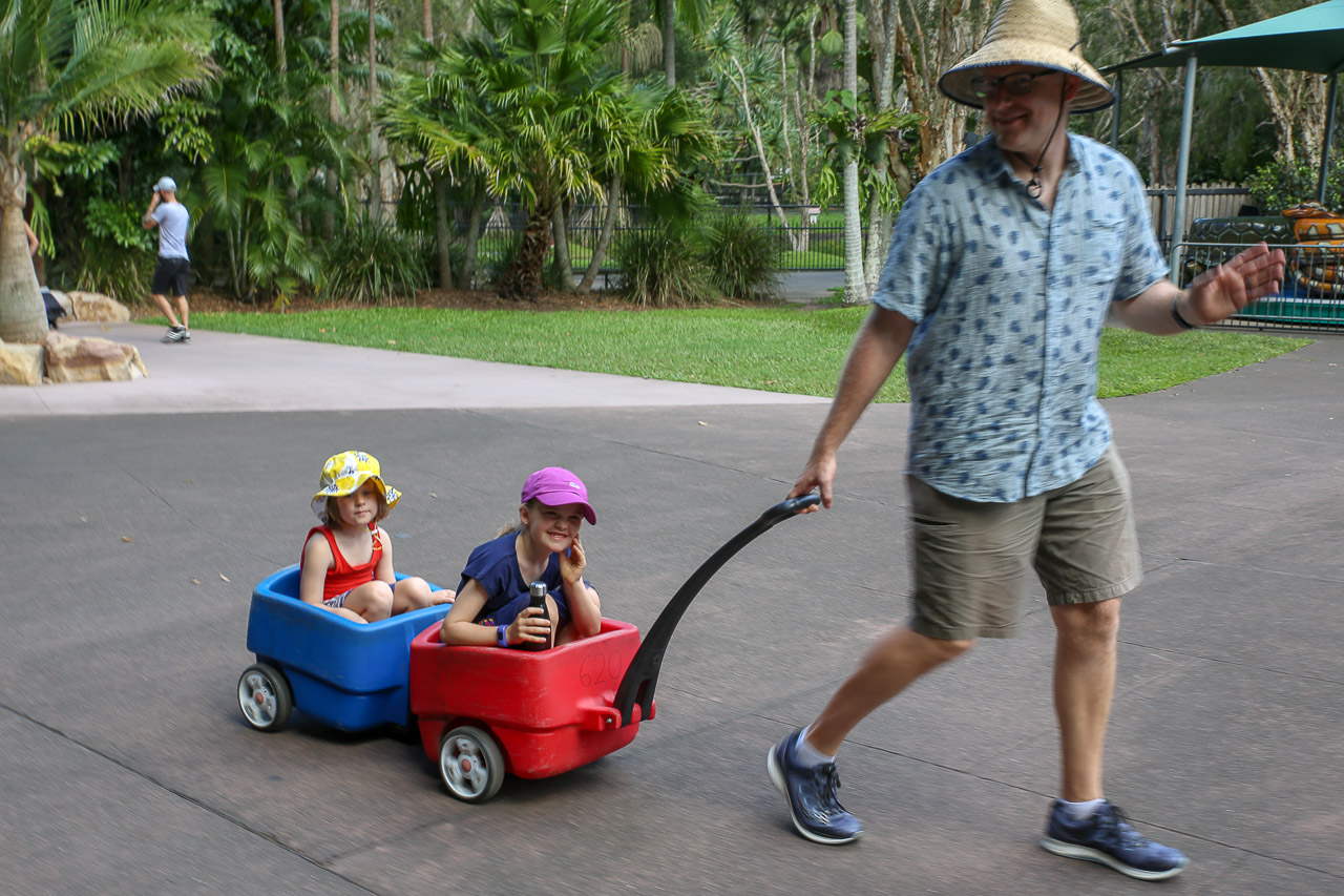 The day before we were set to leave for home, we spent an afternoon in Brisbane, starting with a pool party at relatives of John’s, they were so nice! The kids had fun in the pool with all the other children that were there, which worked out great. As we had booked a hotel room near the airport to help ease the morning logistics, we had an evening to wander around the Southbank area of the city. As the Commonwealth games were happening at the time (they were in Gold Coast officially but a few events were in Brisbane), there were open-air restaurants and concerts in the area, so we grabbed a snack and hung out in front of an outdoor big-screen to watch some of the Games before making our way back to the hotel.