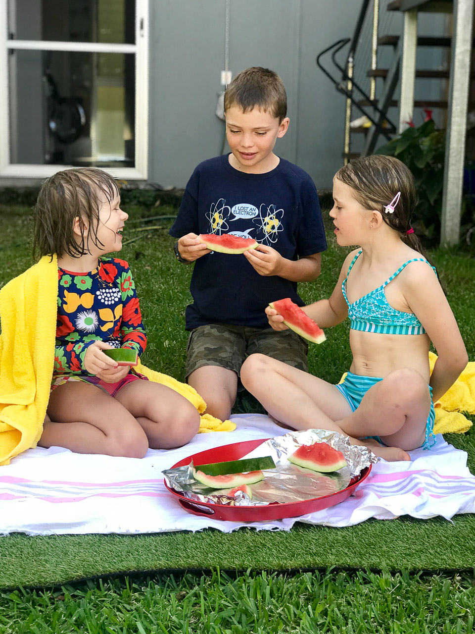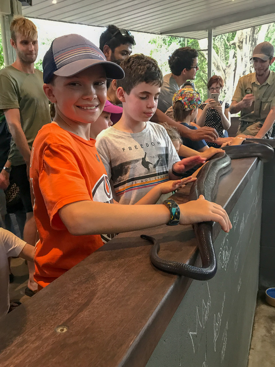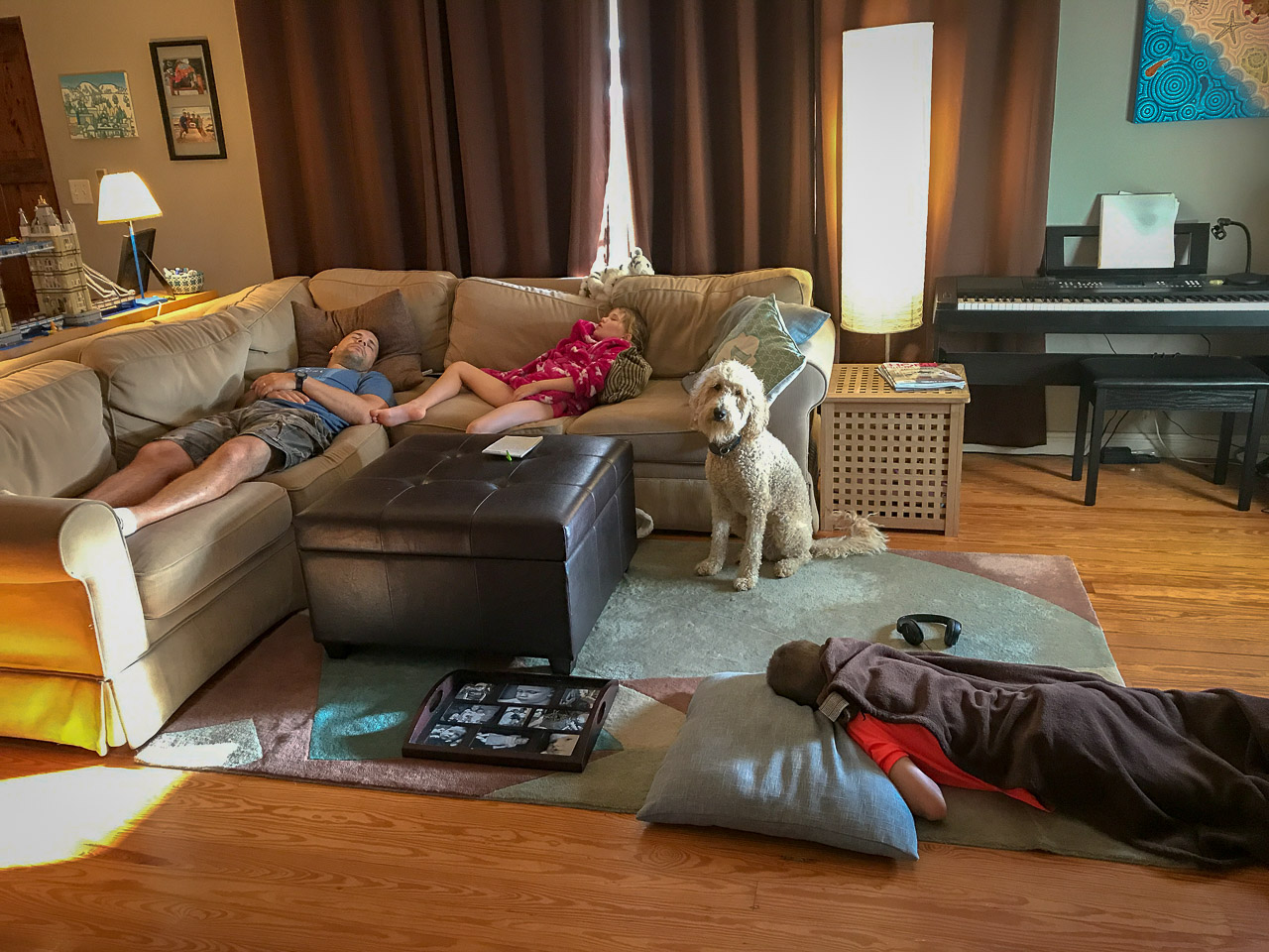 The day before we were set to leave for home, we spent an afternoon in Brisbane, starting with a pool party at relatives of John’s, they were so nice! The kids had fun in the pool with all the other children that were there, which worked out great. As we had booked a hotel room near the airport to help ease the morning logistics, we had an evening to wander around the Southbank area of the city. As the Commonwealth games were happening at the time (they were in Gold Coast officially but a few events were in Brisbane), there were open-air restaurants and concerts in the area, so we grabbed a snack and hung out in front of an outdoor big-screen to watch some of the Games before making our way back to the hotel.