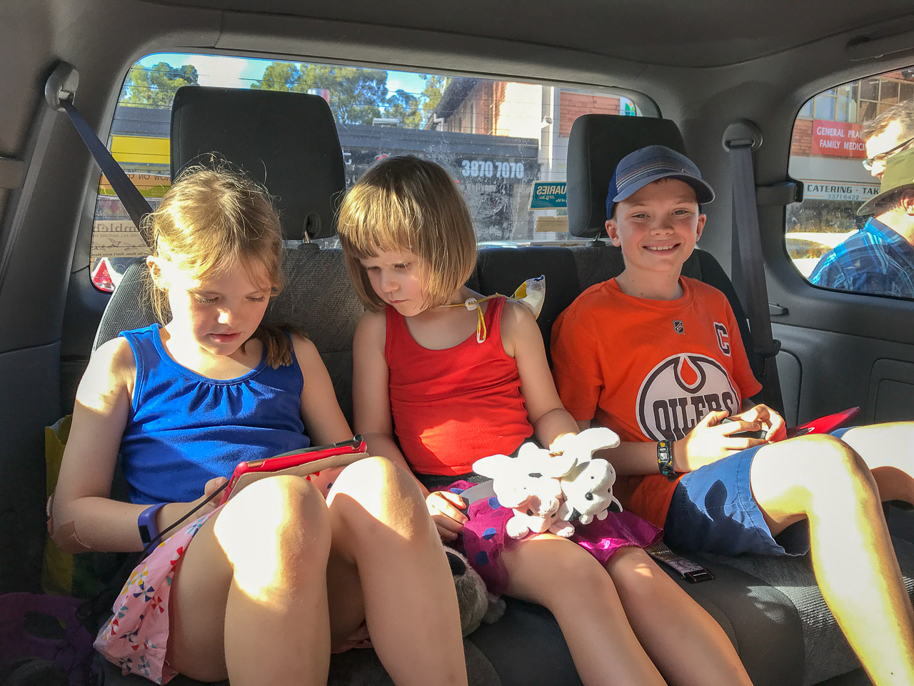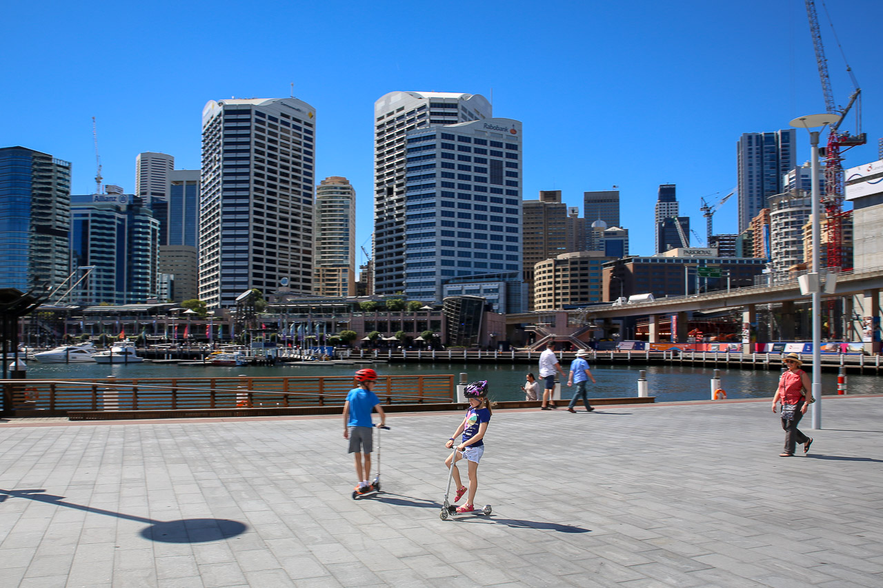 We had a long way to go, we weren’t sure how the kids (or us!) would handle the travel. Bermuda to New York, to L.A., to Sydney took us basically 24 hours of actual in-air flying time (2.5 + 6 + 15 hour legs!), plus layovers. With the time changes (Sydney was 14 hours ahead of Bermuda at the time), we ultimately left Bermuda on a Saturday early afternoon and arrived in Sydney first thing on Monday morning. The flights went very well, thanks to comfy clothes, iPads, Fly Tots, and a nice plane (Boeing 787 Dreamliner) for the long-haul from L.A. to Sydney!