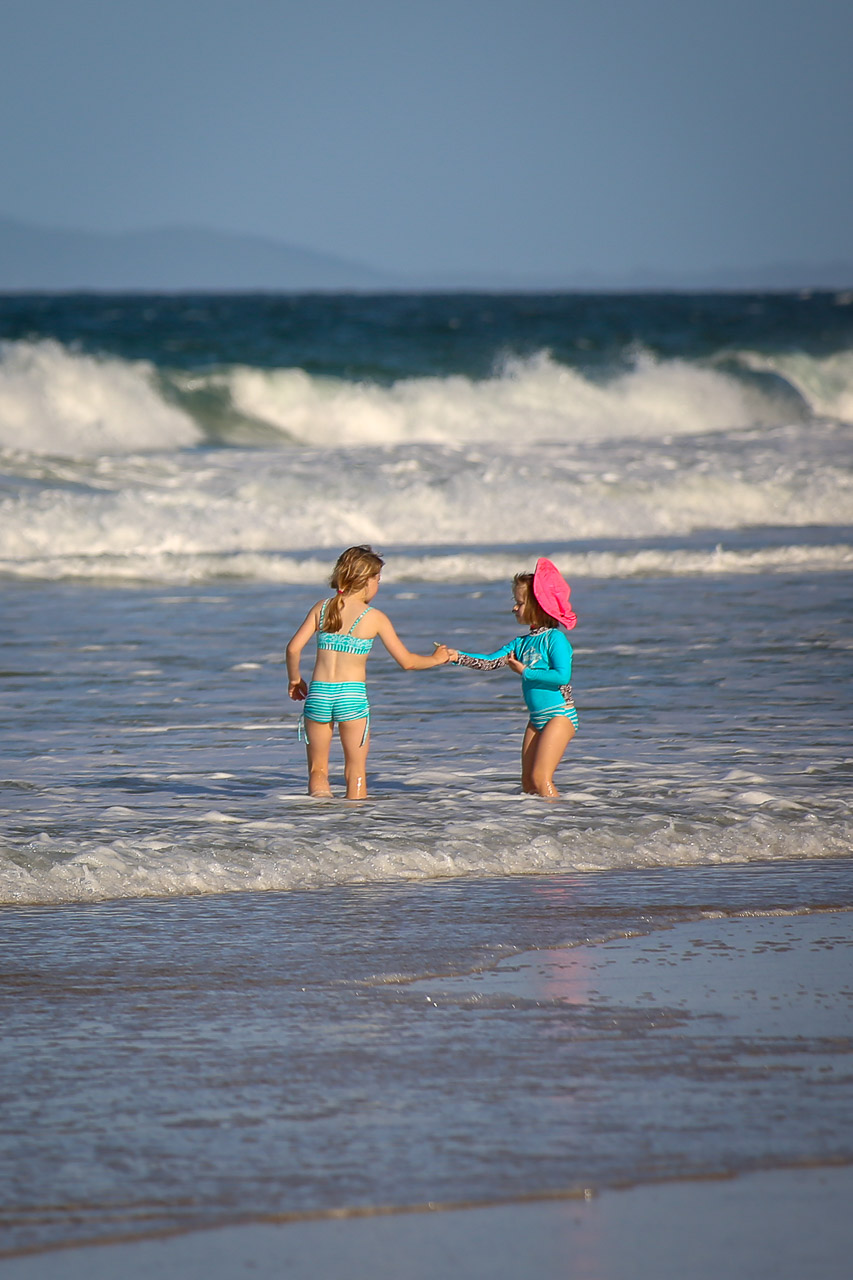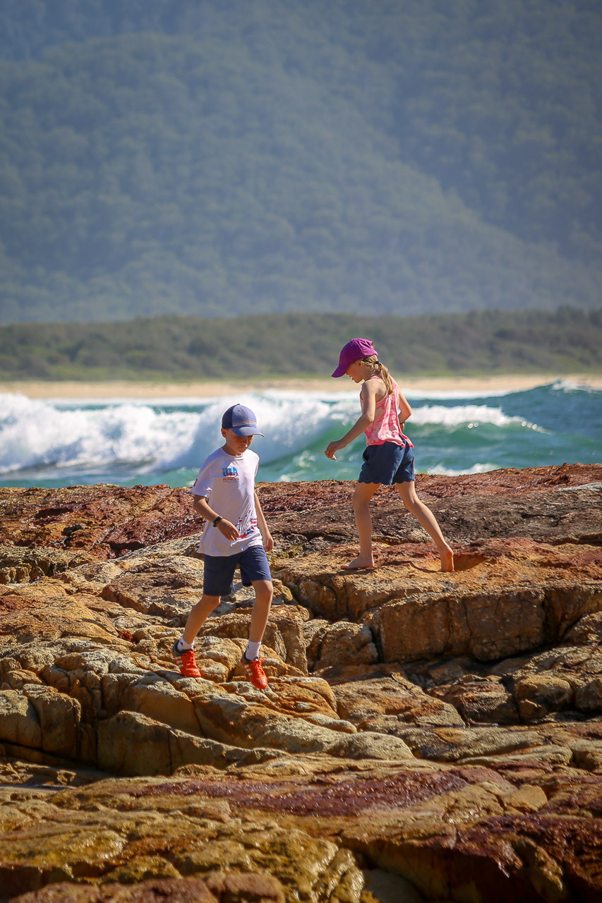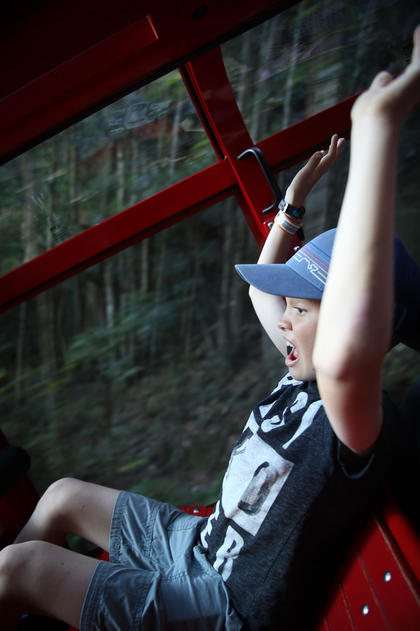 After filling our bellies at the highly-recommended Bill’s for breakfast (though I was still a bit full of my Kangaroo dinner from the evening before…mmm!), we headed west out of the city to start our somewhat meandering 1,200km / 15 hour journey that would eventually get us north to Bribie. To avoid a marathon driving session, we stretched it out over a period of about four days to enjoy some sights along the way. The first day, we went west to the Blue Mountains to enjoy the aptly-named Scenic World and the Three Sisters mountain; we later overnighted in a fake Fairmont hotel that reminded me a bit of the hotel in the Shining…! Having survived the night, we headed north through the Aussie wine country known as Hunter Valley, where those not driving (or underage!) did a little tasting and filling up the remaining space in the minivan with wine of all varieties (thank goodness each of us only had a small suitcase each, unprecedented for the Wilsons!). Diane and John were kind to set us up with their friends (John & Nola) in Dunbogan, where we spent the night and the first half of the next day; we searched for wild Kangaroos (found some at a nearby campground, along with a Monitor lizard!) and enjoyed the spectacular beach across the street from their house. The low-light of our road trip, however, came that evening – Good Friday – when we arrived in Bellina and comically discovered nothing was open and were forced to eat McDonalds for dinner in our less-than-ideal motor inn room (complete with a jacuzzi tub in the bedroom… classy)! We made up for it in Byron Bay on the following (and final) day of our road trip, where the kids found their first of several skate parks of the holiday (good thing we brought their scooters across the world!), we had a lovely breakfast at Folk, some beach time at Byron Bay beach, a taco or two from Chihuahua, and finally the last push on the highway through Brisbane and into Bribie, arriving in time for dinner with all the Oxenfords (including Tim’s sisters), which was of course a ‘line of pizzas’, the official first-night dinner of every Oxenford-Boys-Wilson vacation! We really enjoyed the drive, plus I’m happy to report that the kids (and grandparents) were very well behaved. 😉
