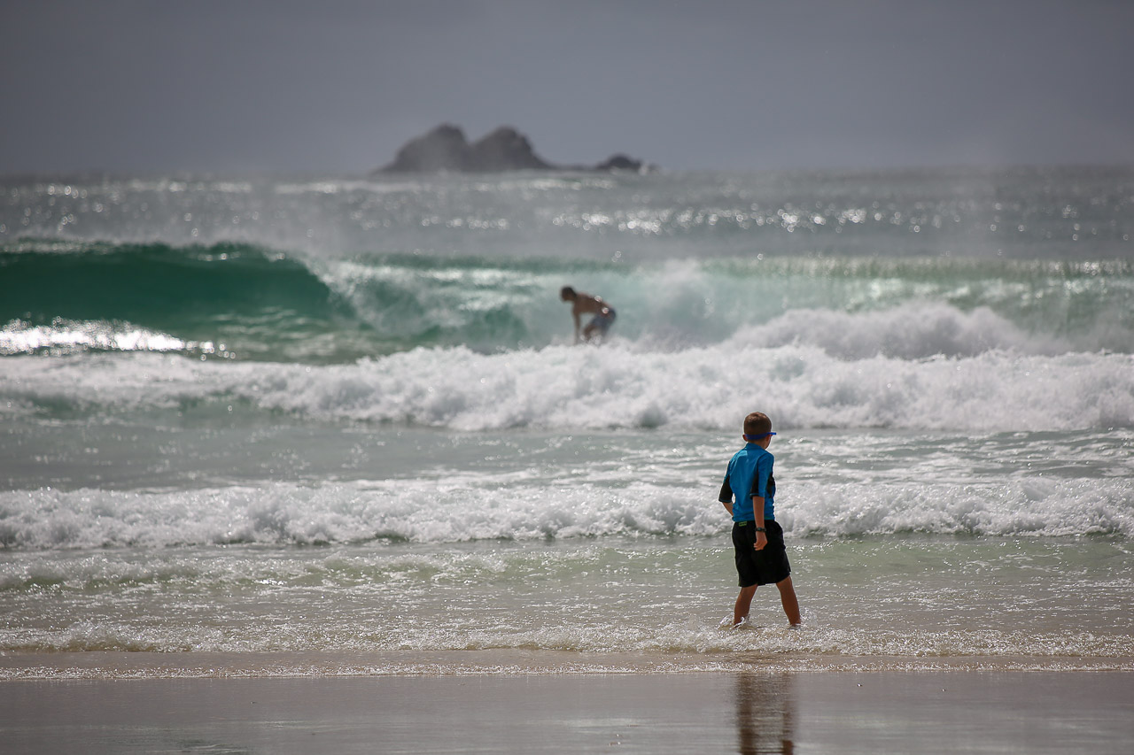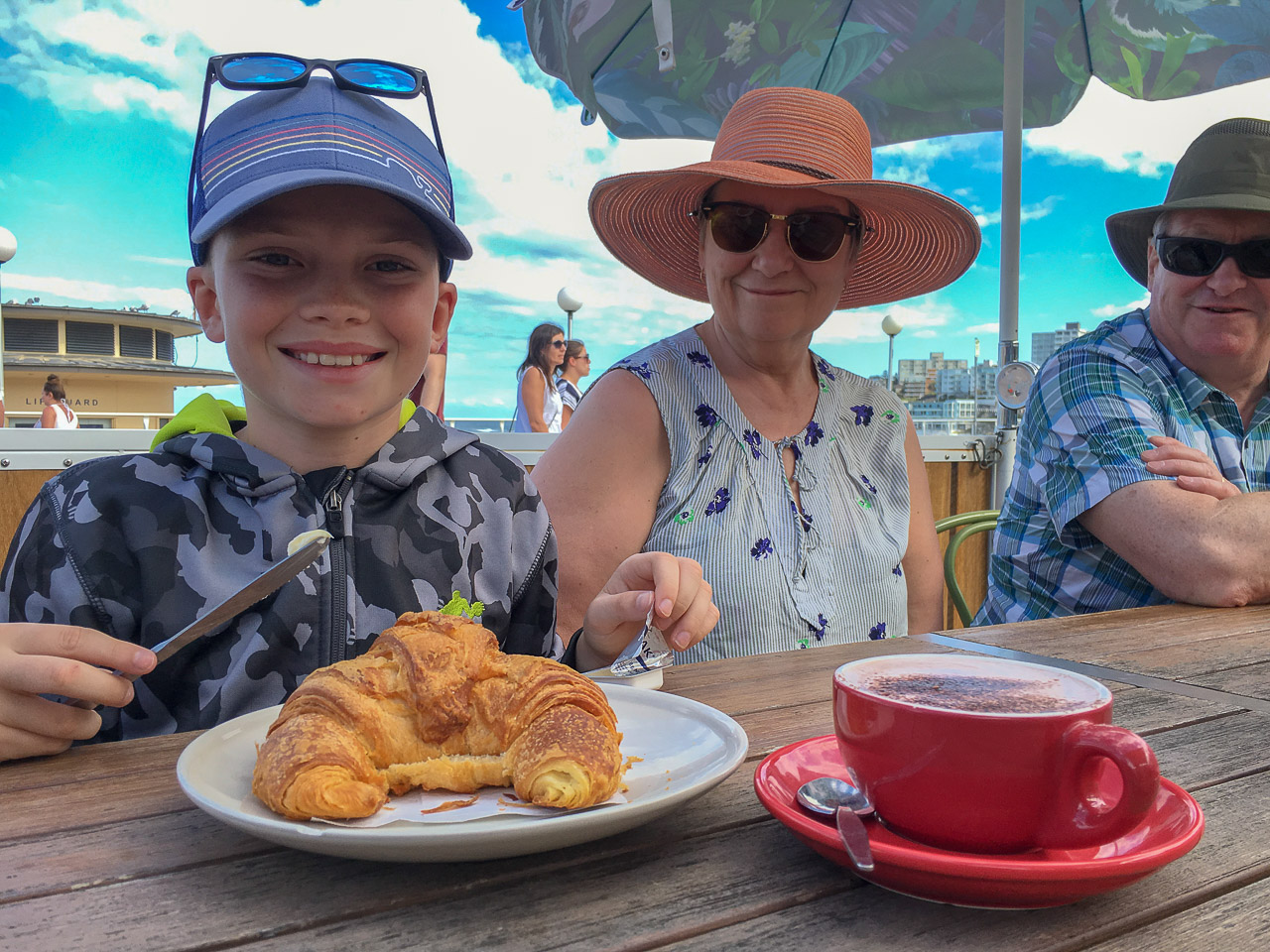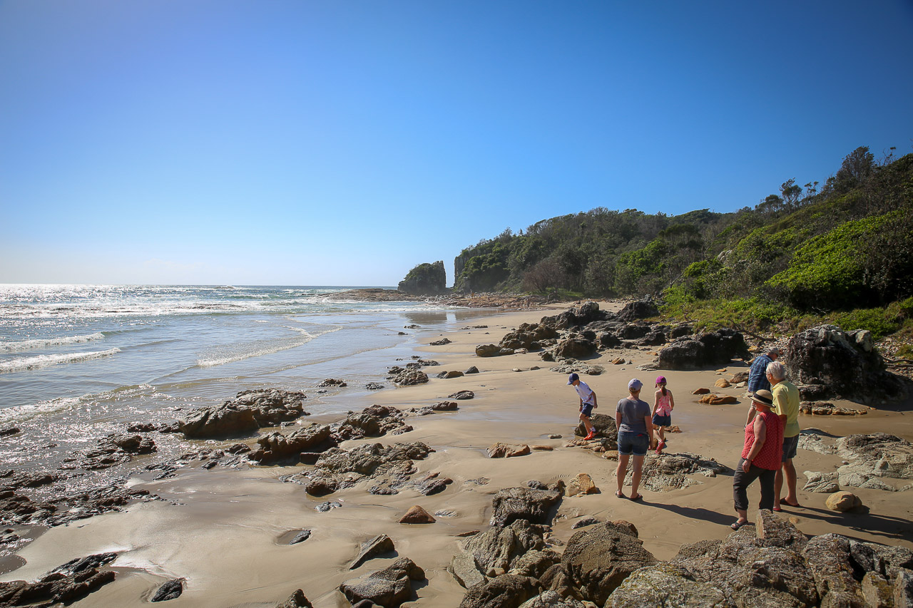 After filling our bellies at the highly-recommended Bill’s for breakfast (though I was still a bit full of my Kangaroo dinner from the evening before…mmm!), we headed west out of the city to start our somewhat meandering 1,200km / 15 hour journey that would eventually get us north to Bribie. To avoid a marathon driving session, we stretched it out over a period of about four days to enjoy some sights along the way. The first day, we went west to the Blue Mountains to enjoy the aptly-named Scenic World and the Three Sisters mountain; we later overnighted in a fake Fairmont hotel that reminded me a bit of the hotel in the Shining…! Having survived the night, we headed north through the Aussie wine country known as Hunter Valley, where those not driving (or underage!) did a little tasting and filling up the remaining space in the minivan with wine of all varieties (thank goodness each of us only had a small suitcase each, unprecedented for the Wilsons!). Diane and John were kind to set us up with their friends (John & Nola) in Dunbogan, where we spent the night and the first half of the next day; we searched for wild Kangaroos (found some at a nearby campground, along with a Monitor lizard!) and enjoyed the spectacular beach across the street from their house. The low-light of our road trip, however, came that evening – Good Friday – when we arrived in Bellina and comically discovered nothing was open and were forced to eat McDonalds for dinner in our less-than-ideal motor inn room (complete with a jacuzzi tub in the bedroom… classy)! We made up for it in Byron Bay on the following (and final) day of our road trip, where the kids found their first of several skate parks of the holiday (good thing we brought their scooters across the world!), we had a lovely breakfast at Folk, some beach time at Byron Bay beach, a taco or two from Chihuahua, and finally the last push on the highway through Brisbane and into Bribie, arriving in time for dinner with all the Oxenfords (including Tim’s sisters), which was of course a ‘line of pizzas’, the official first-night dinner of every Oxenford-Boys-Wilson vacation! We really enjoyed the drive, plus I’m happy to report that the kids (and grandparents) were very well behaved. 😉