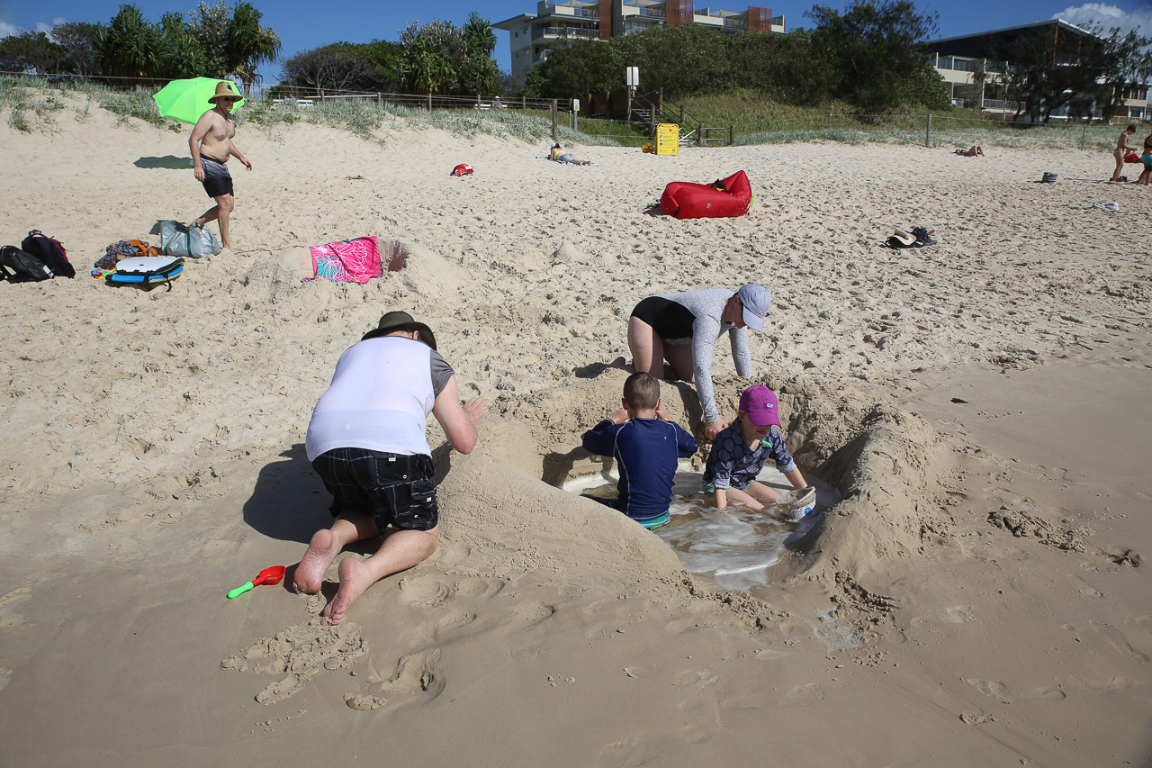 We returned to Bribie on Friday, which happened to be Peter & Helen’s anniversary, and it was the day before they were set to leave – we arrived to a party / open house in full swing at the Oxenfords! So, we did a little day-drinking before a fantastic meal at the Bribie Island Surf Club (one of our only meals out while in Bribie!). They were off the next day to Perth to catch up with some of Peter’s family – sans the rest of us. We had a nice relaxing morning the following day as resumed our beach routine before the girls accompanied them to the airport and went to do a little shopping. The kids and dads stayed behind with Diane as she put on her ‘turtle lady’ hat and brought us to the beach.