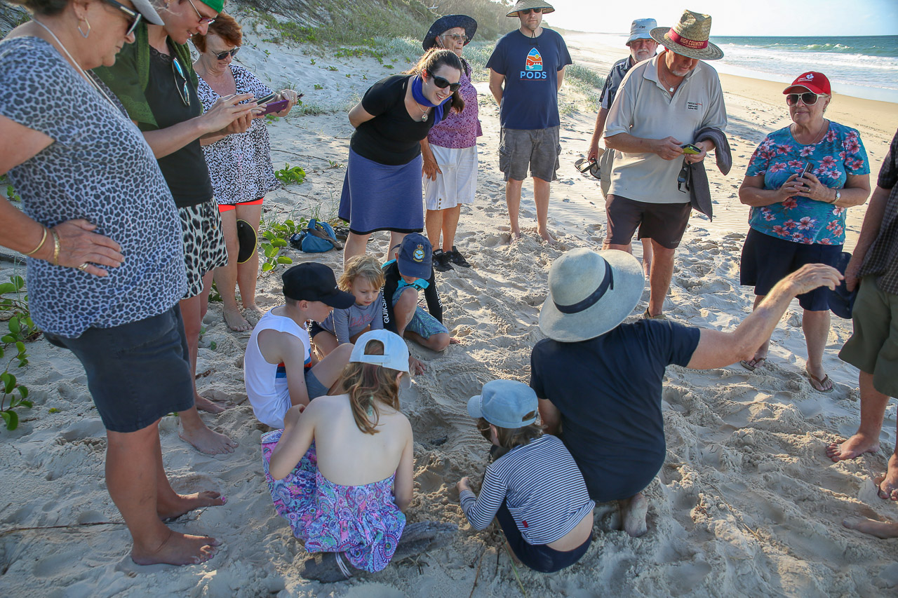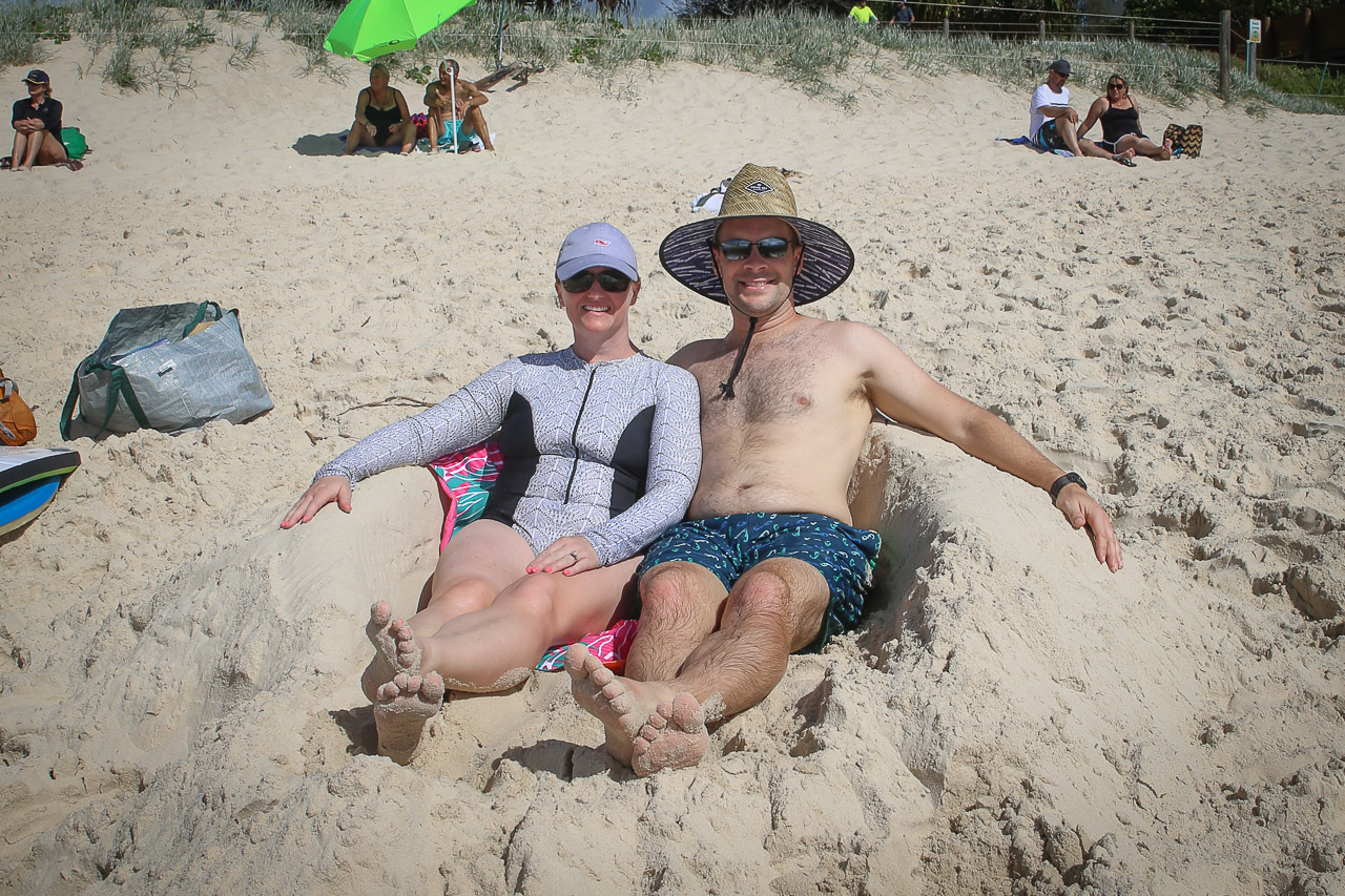 Diane is known around Bribie (and maybe beyond!) as the ‘turtle lady’ as she is responsible for the safeguarding and tracking of the seasonal loggerhead turtle egg-laying and hatching along the local beach. She is certified each year to lead the effort, and she does a mighty fine job with it, as we can attest! Anyway, the afternoon the girls were doing the airport run, Diane took the rest of us down to the beach as a nest she was tracking had some hatchlings run overnight and she has to check the next to make sure they all get out and do a count of the eggs. Sure enough, after we arrived to the nest site, Diane dug down and found a few stragglers that needed minor assistance to start their journey to the sea and beyond! It was a simple thing, but still so amazing and and undoubtedly a rare experience to witness these hatchlings drag themselves to the ocean and battle the waves with their tiny fins to begin their lives in the ocean. We were lucky to be in the right place at the right time! Jenn and Wendy were able to see this for themselves a few evenings later when we were twice lucky and were able to witness a few more hatchlings from another nest do the same thing. Ahh-mazing.