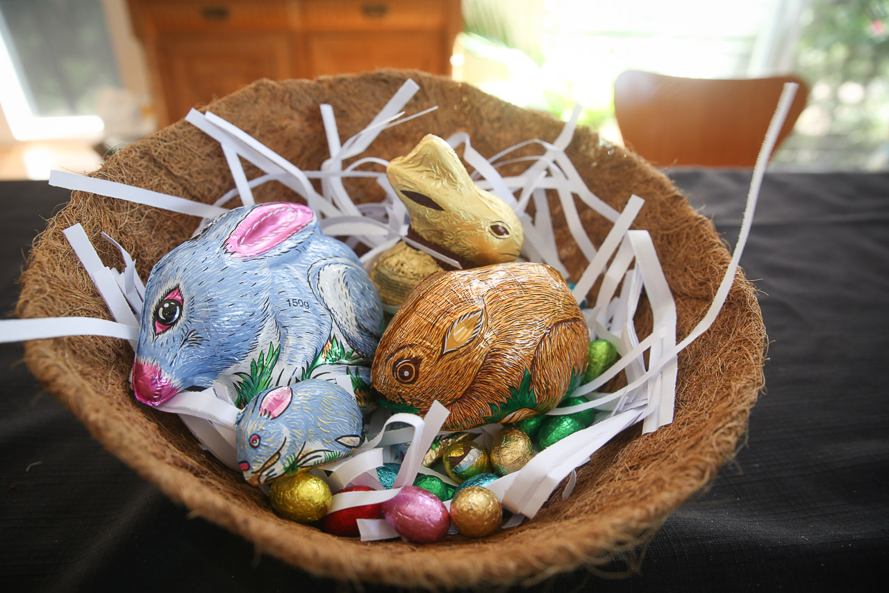 So, I had mentioned it was Easter Sunday – apparently in Australia, as the kids discovered the following morning after returning from the beach, Easter is actually celebrated on Easter Monday instead…! Who knew? The kids were happy to find little footprints on the floor, and each of them had received a basket with all sorts of chocolate goodies, including an Easter Bilby (Australia’s answer to a bunny)! Whew – didn’t miss out on Easter after all.