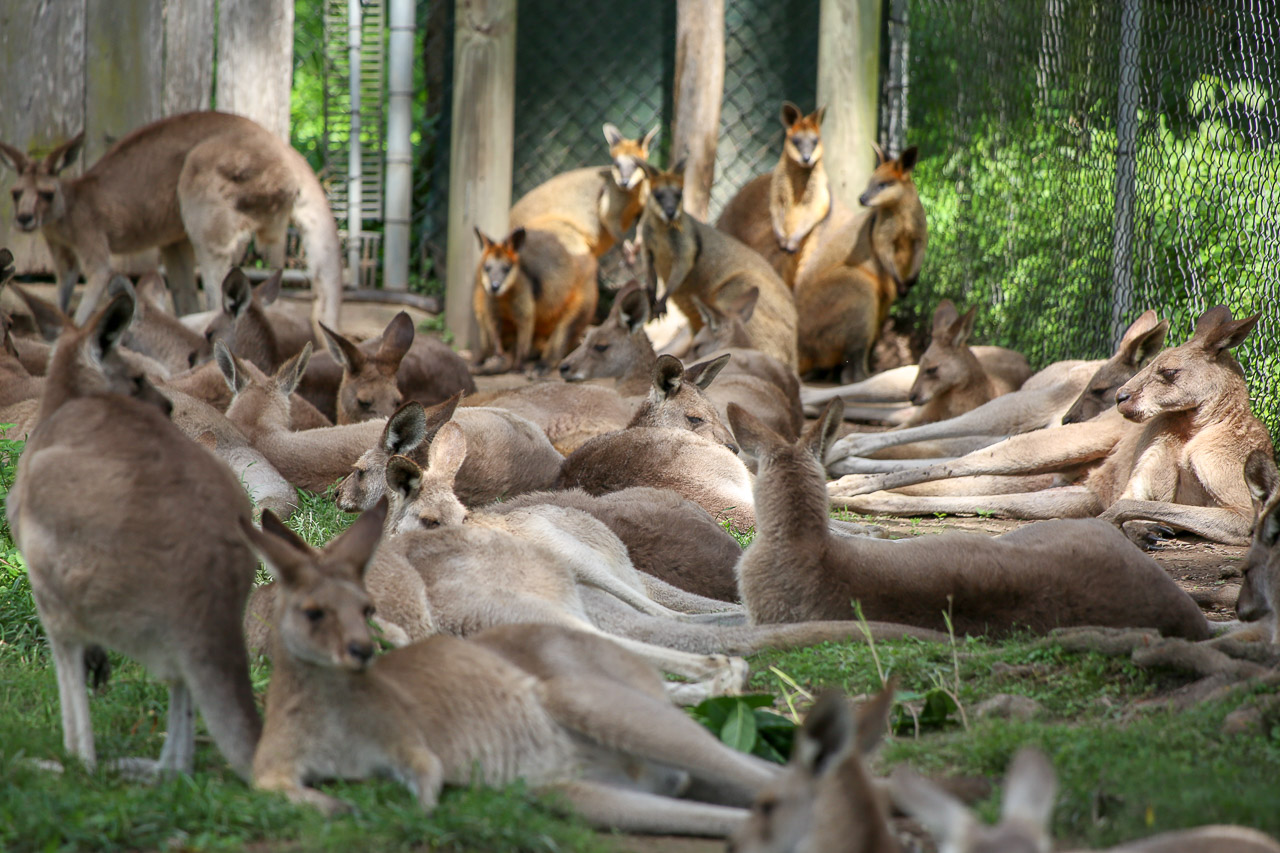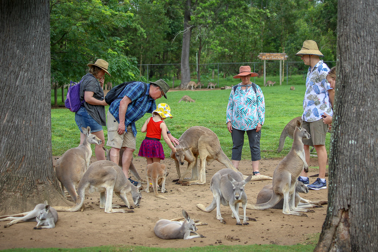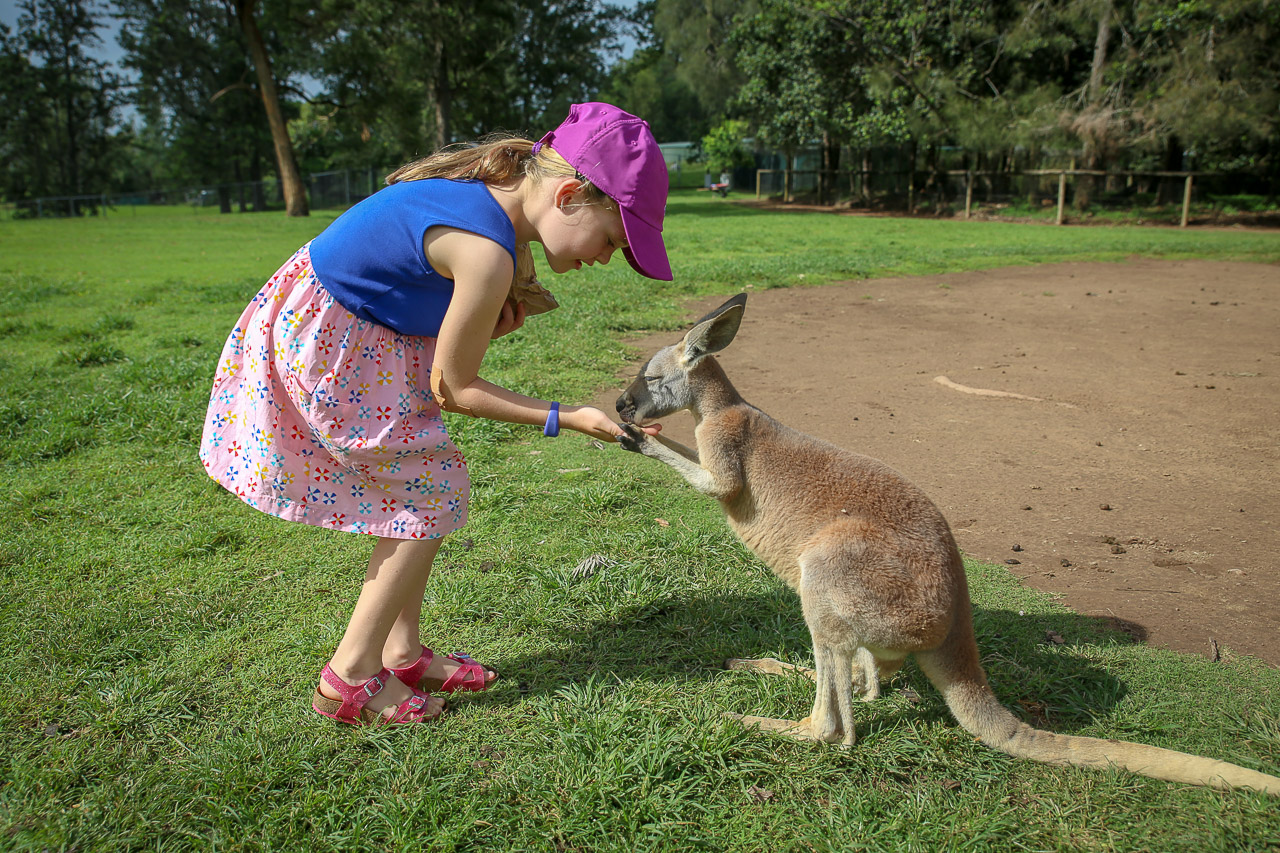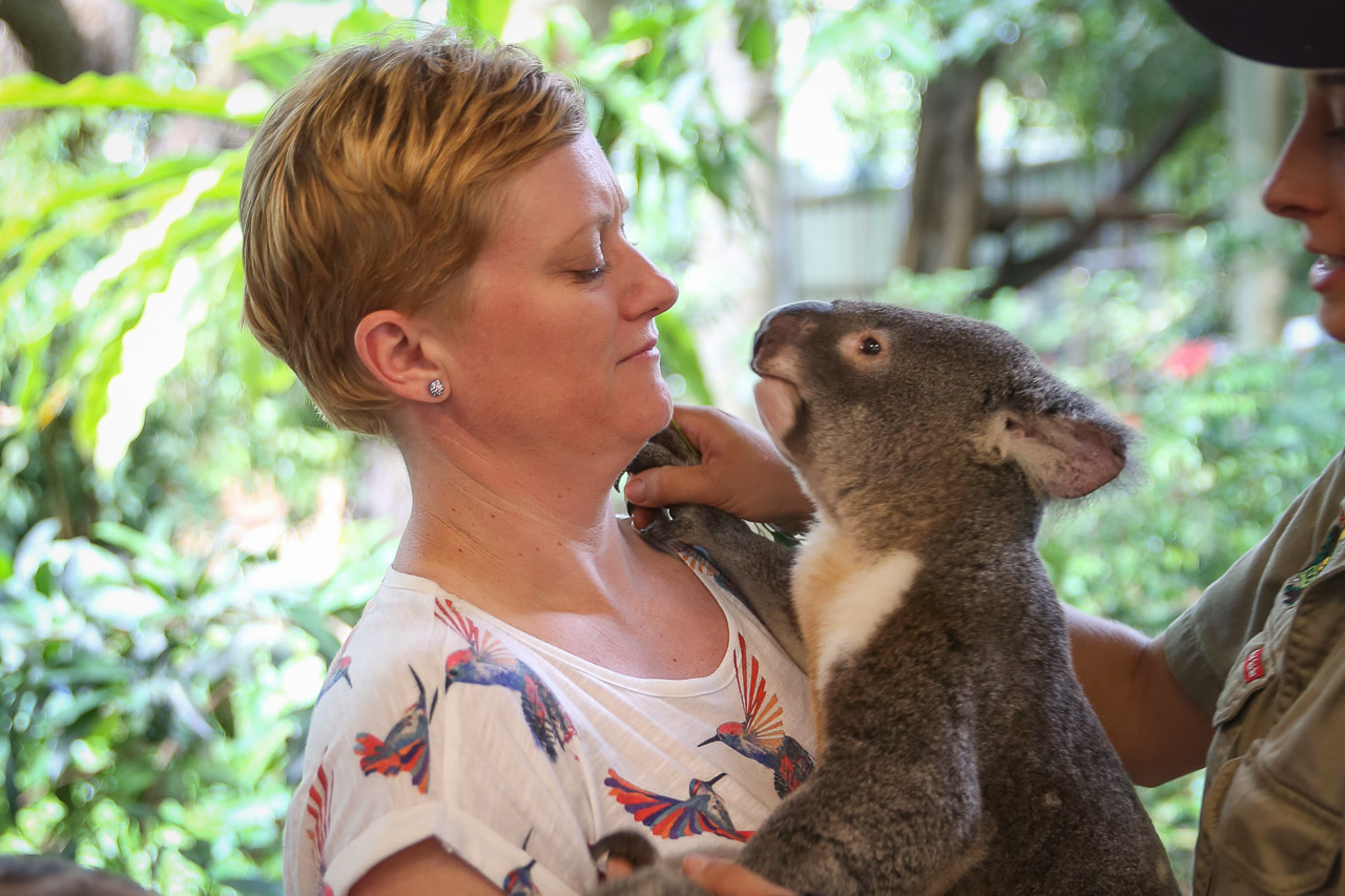With another relaxing weekend in the books, we started our final week of vacation at the Australia Zoo on Monday and had a day full of animal fun! Steve Irwin did it up right, the zoo was amazing. Saw an amazing show with some pretty cool birds and a giant croc at the Crocoseum, we got to feed a giraffe up close, Wendy took a wombat for a walk (yes, this is something you can do), and of course a few more kangaroos needed some feeding!