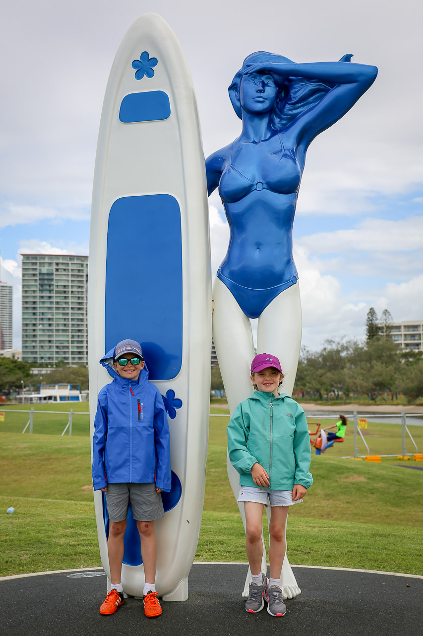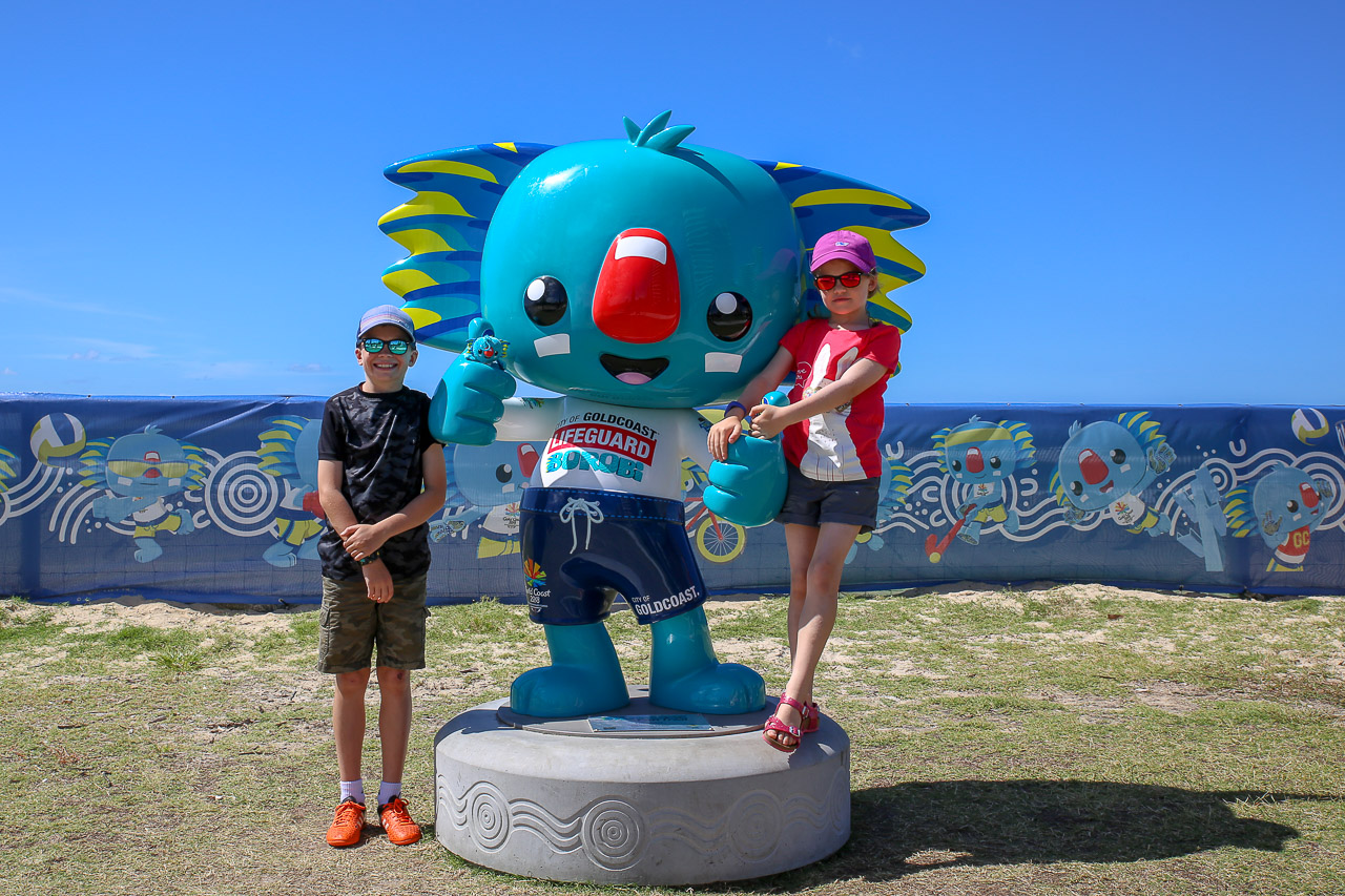 The day preceding our next adventure was a chill one for the guys and kids – we did a little ‘guerrilla planting’ of some new trees / plants on some public land adjacent to the Oxenfords. In the meantime, the ladies took the day to venture to a few surrounding areas to hit some local markets and shops, including the Eumundi market, the Ginger factory, and a local woodworking shop, a fave of Tim’s mom Diane, the pack leader for the day! After dinner, Jenn and the kids and I hopped in the van to take a little drive to the home of this year’s Commonwealth Games, Gold Coast.