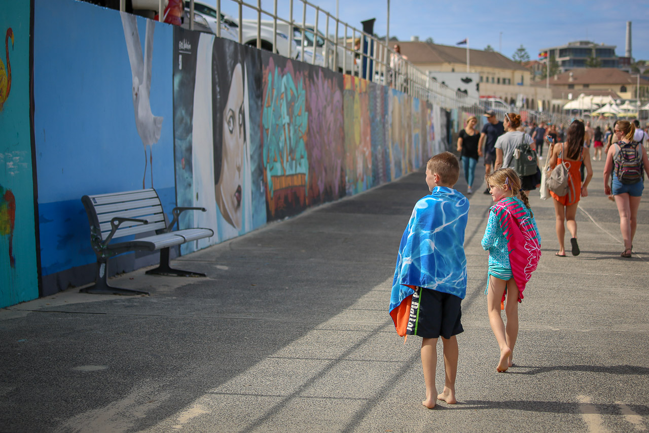 Sydney was pretty awesome – we could have stayed for much longer than the few days we were there, lots to see and do! Peter and Helen had been there for a few days before we arrived, so they had a chance to set up at the AirBNB and scope out the nearby amenities. We hit the ground walking after arriving Monday morning, taking a stroll down to nearby Darling Harbour for lunch, then we jumped on a ferry for a closer look at the Sydney Harbour Bridge and Opera House. We didn’t take the time to go into the Opera House, unfortunately, but a walk over the bridge later offered a pretty majestic vista of the building set in the cityscape. After a morning park excursion the next day, we took in the kid-approved Powerhouse Museum, then caught a surfboard-friendly bus over to the iconic Bondi Beach for our first taste of the amazing Aussie beaches (although the water was a bit cool for our liking…! 😉 ). That was all for us in Sydney, however… our brief introduction was amazing (we’ll be back!), but it was time to hit the pavement… road trip!!