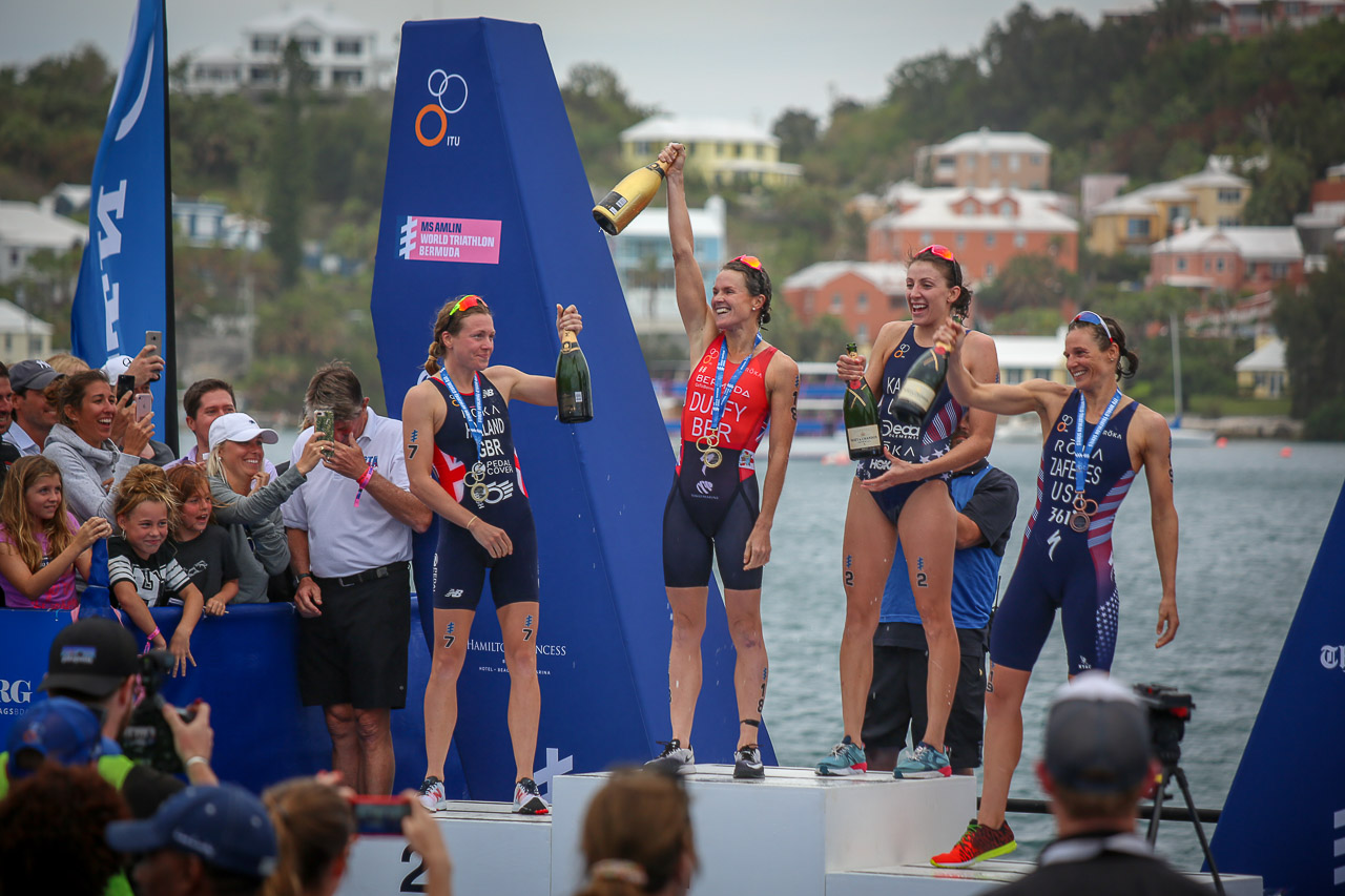 Hey, triathlon fans! Bermuda is now officially on the ITU Triathlon map, thanks in no small part to Flora Duffy, Bermuda’s multi-time world champ! Typically there are about 8 races in an ITU World Triathlon Series season, the island played host to the the 2nd race this year. Bermuda had some practice holding an international event last year with the America’s Cup sailing race, and while this event wasn’t quite as big, this race weekend seemed to bring quite a lot of excitement to the island!