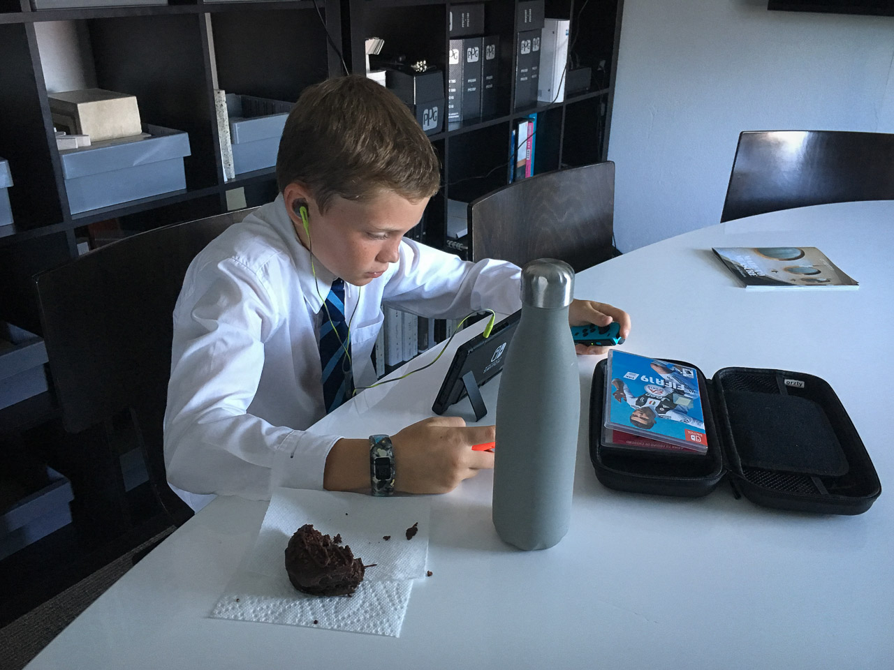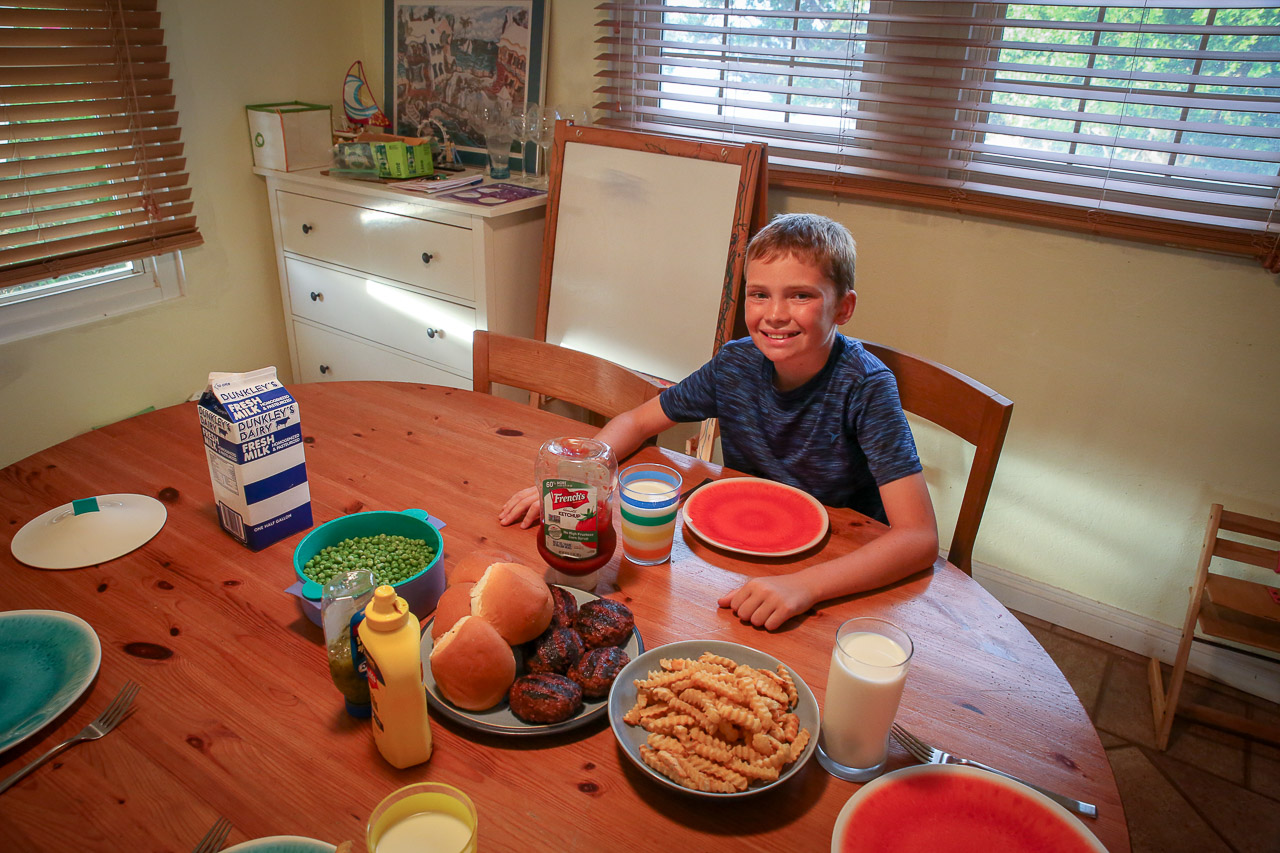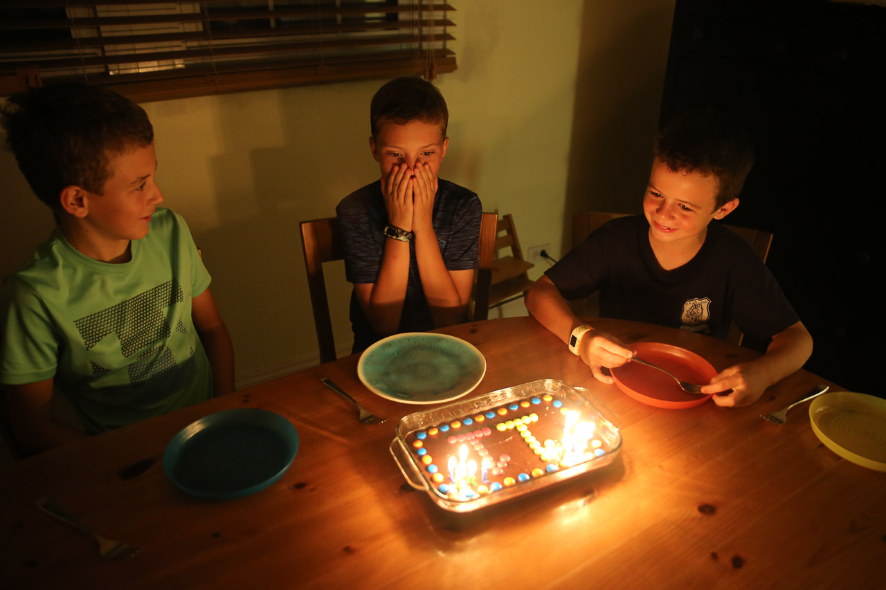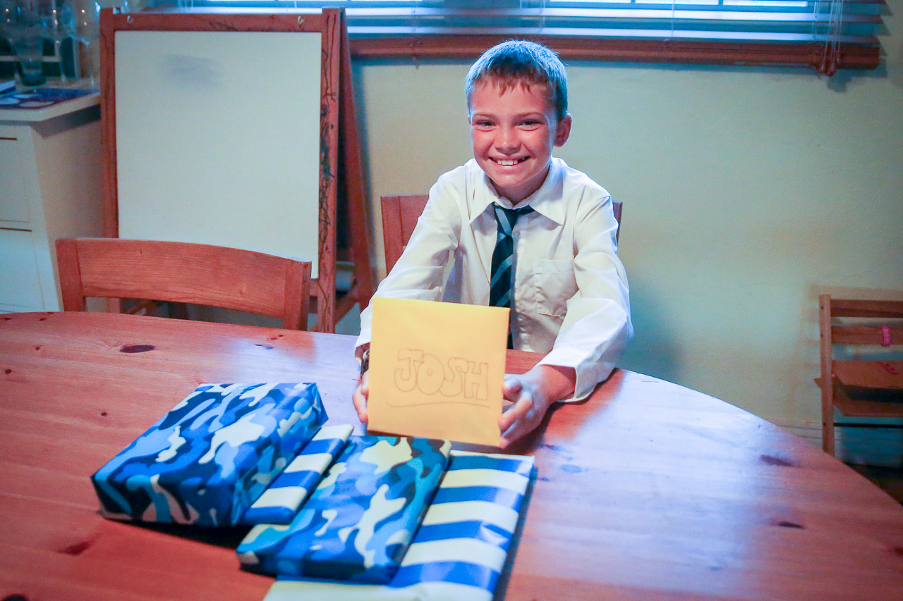 His birthday was fairly low-key this year. The actual day fell on a Thursday, and for some reason he was out of school early so happily spent a few hours at my office, playing his Nintendo and eating a doughnut. We did his favorite meal (Dad Burgers!) for dinner, a few friends from up the road came by for a Happy Birthday hello and some cake afterwards, that was about all. Josh went to sleep a satisfied 11-year-old.