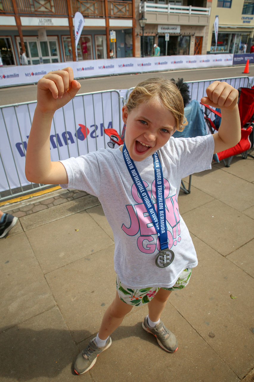 Jenn was extra busy this year during race week. She volunteered to be a ‘TO’ (technical official) again this year, but contrary to last year she found the time to actually do the age-group Olympic distance triathlon as well, the same day of the elite races she was due to officiate! Who needs R&R anyway, I guess…? She did well and had a great race, coming in at 2:48:45 – good for 6th of 28 in her age group and 15th of 60 women overall. Josh was also up for competing in the kids race on Friday night, he had a good race too!