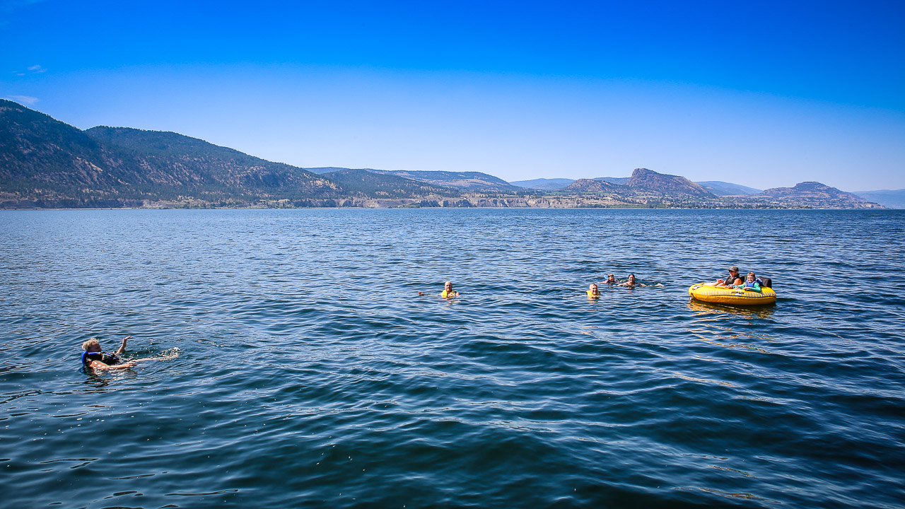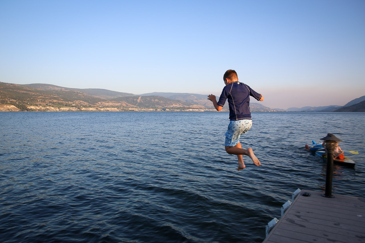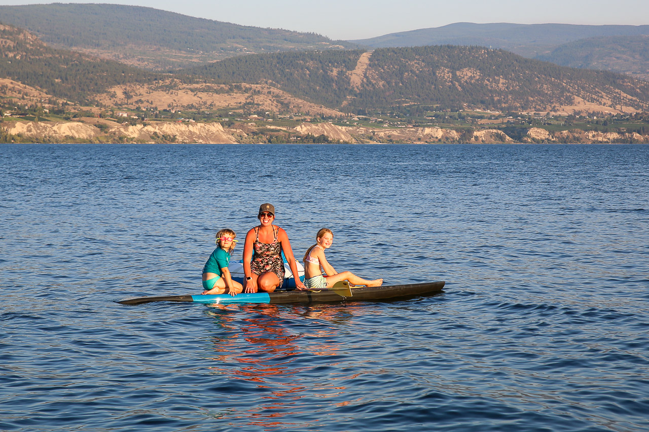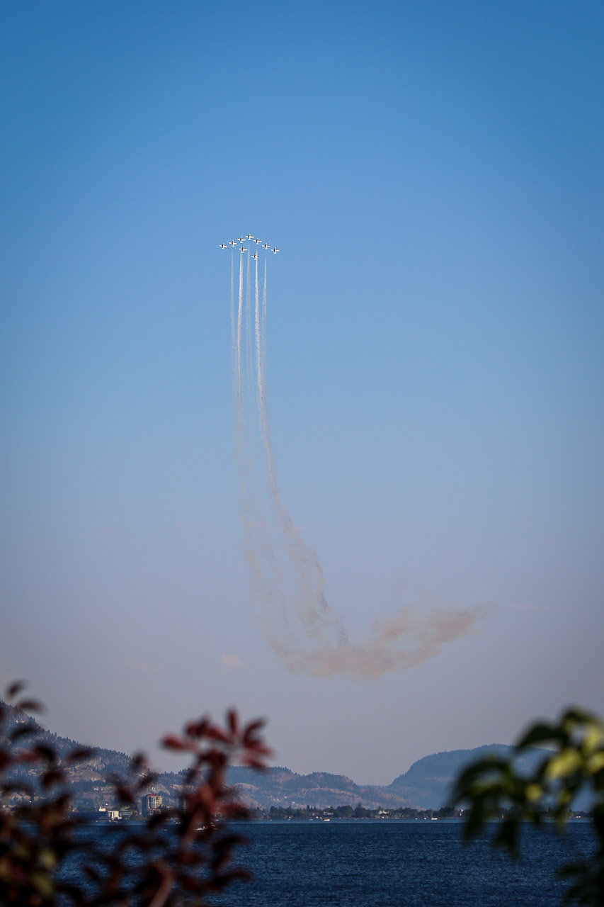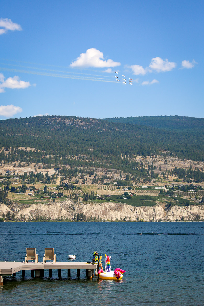 Then it was onto the Okanagan in BC the next day! We had rented a home in Summerland (which turned out to be owned by former Edmonton Oiler Cam Barker), it was awesome. Big and modern, right on the water with a beach and dock – perfect. Even better, there weren’t any forest fires in the area to smoke us out (like last year and the year before…). We enjoyed a week of lazy summer days and gourmet meals, with some kayaking and paddle boarding off the beach sprinkled in there too. An added bonus during our stay in Summerland – we were treated to a flyby by the Snowbirds on a few occasions, we weren’t sure if they were on their way to another show elsewhere or performing for a festival somewhere nearby on the lake, but we were happy to see them do a few stunts at any rate! Maybe they were there for Ruby and Tim’s early birthdays (later in August)! Or maybe to celebrate the big announcement about Andrew & Sarah expecting a baby next year (congratulations guys)!