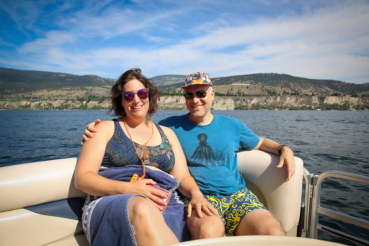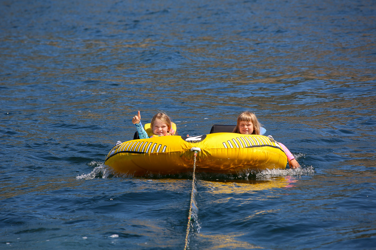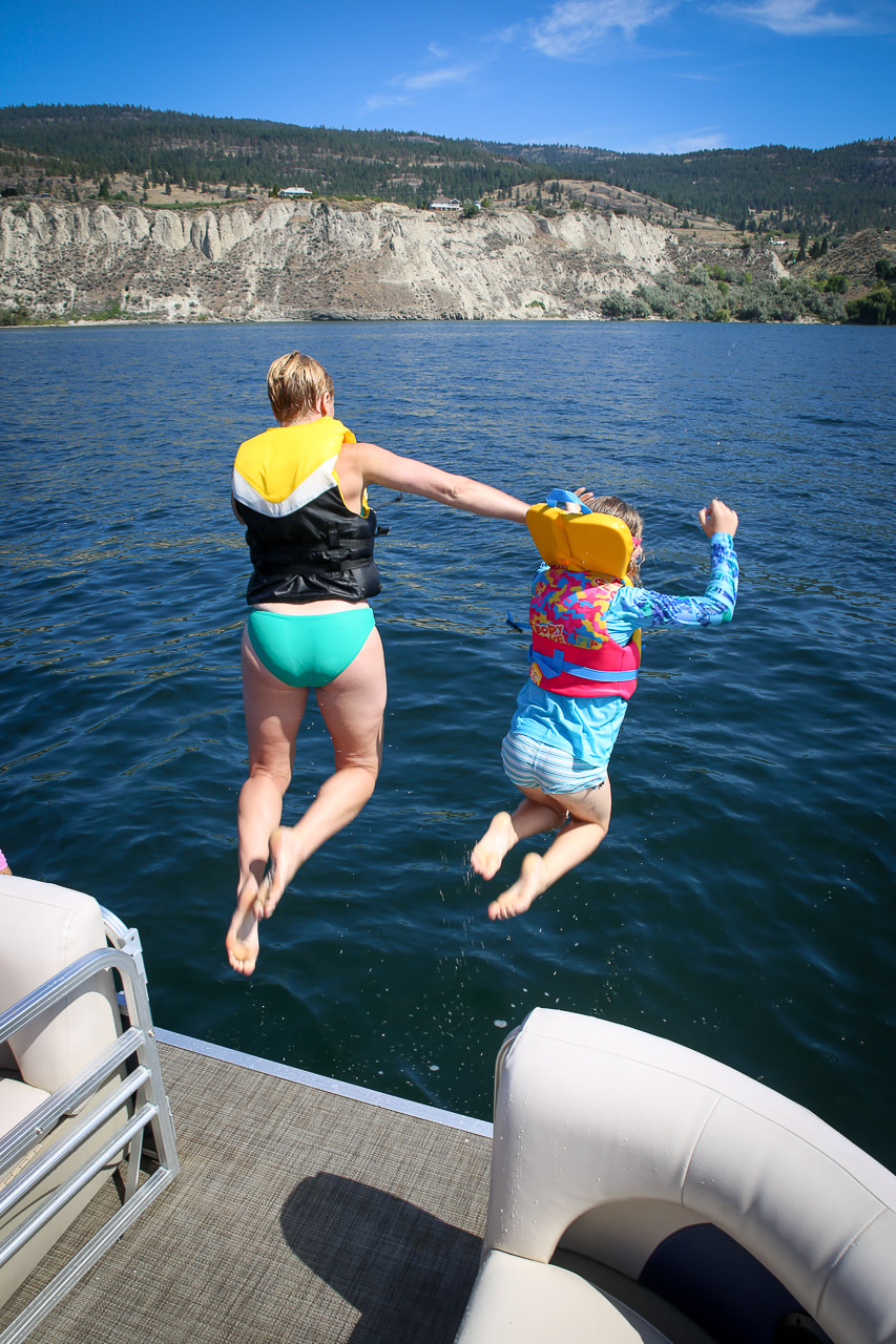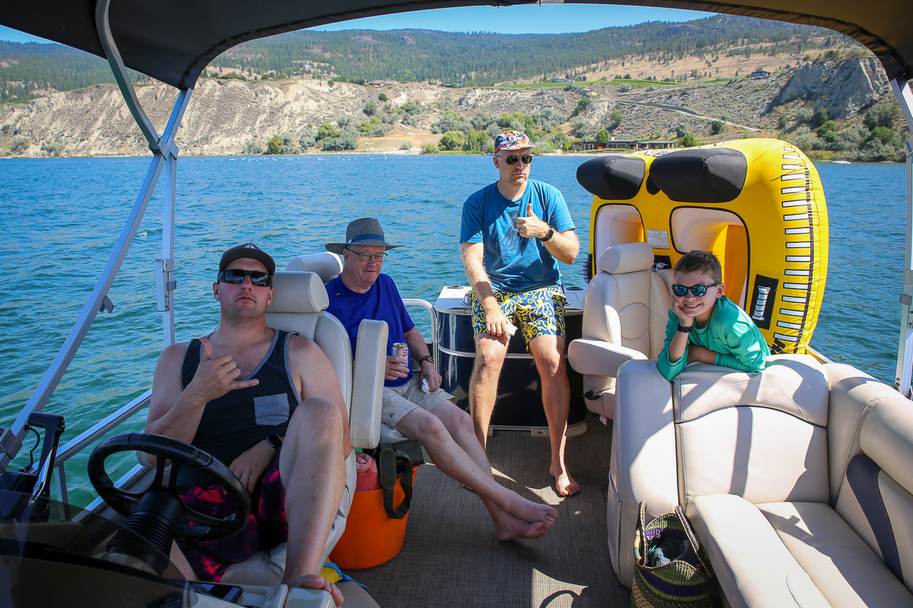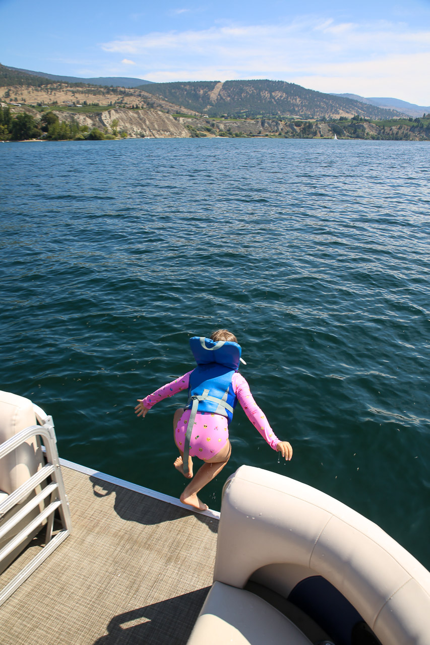 Anyway, we also went on a few adventures. Our friend Amber’s daughter babysat the kids for a day and we went with her and the rest of the ‘of age’ family members on a wonderful wine tour of the nearby Naramata area… amazing day, hit about 5-6 wineries and came back to the house with a few bottles! A day trip to Big White was also in the cards, though we didn’t get to go mountain biking due to some power issues (lifts weren’t working) – we made the best of it and did a little geo-caching instead! We also rented a boat for a change of pace another day; the kids always have a blast riding on the tube as we try to buck them off (need a more powerful boat as the kids get bigger)!