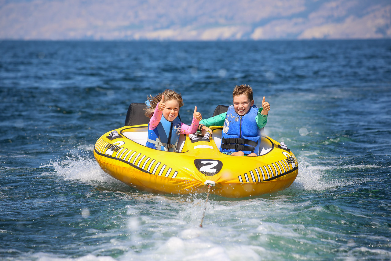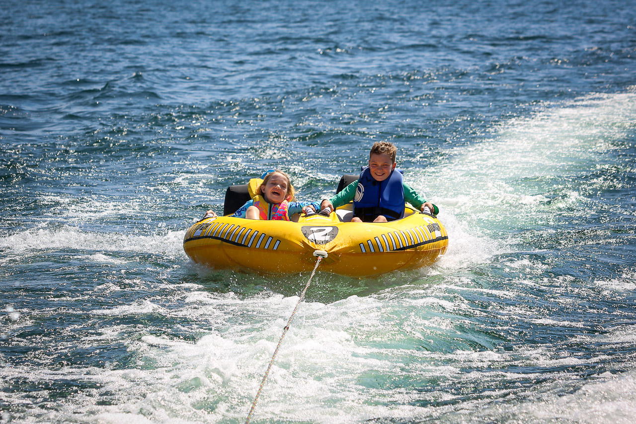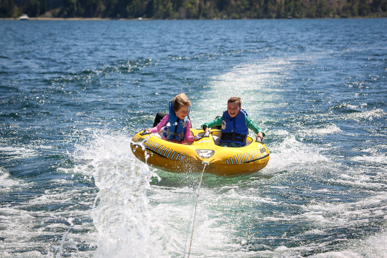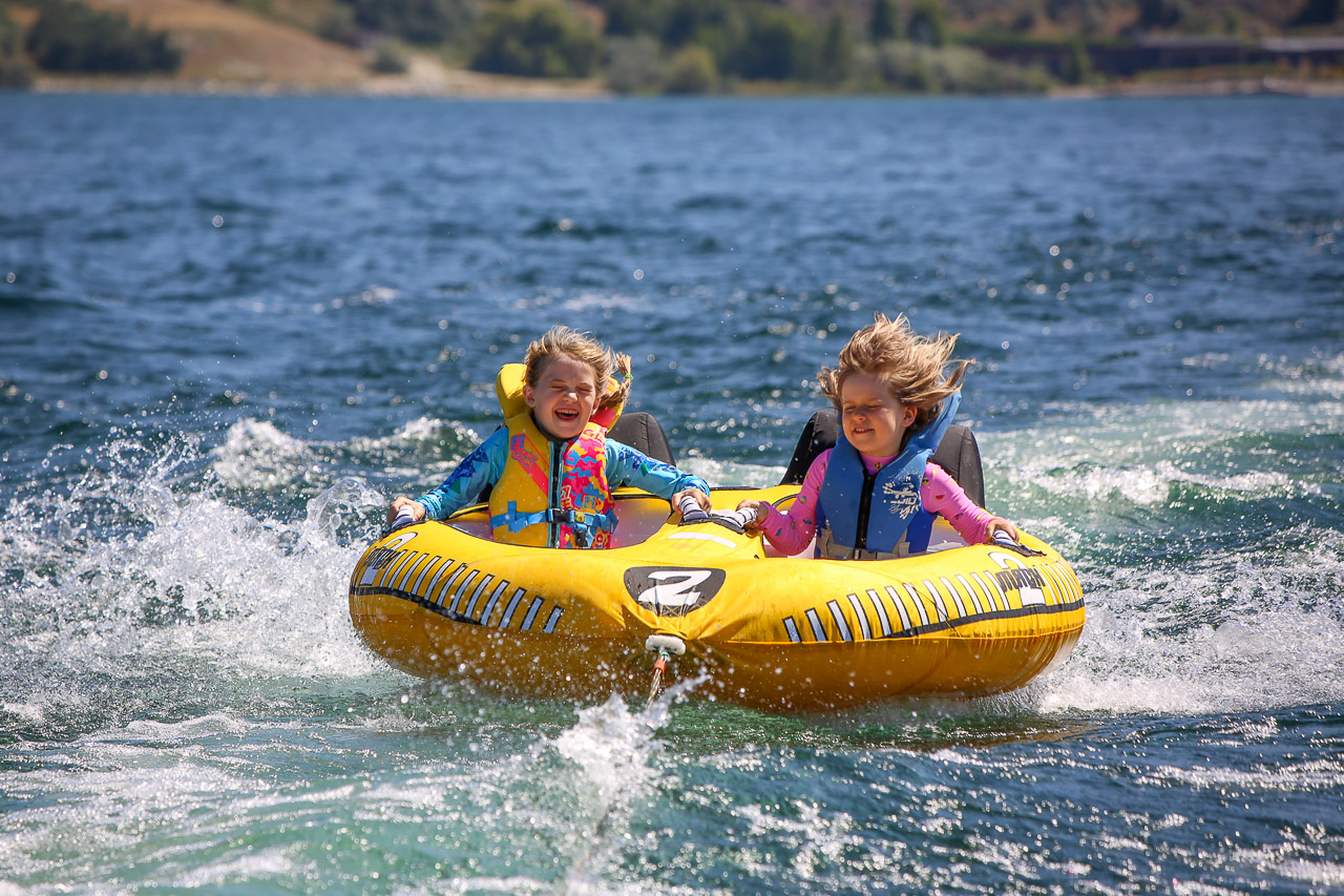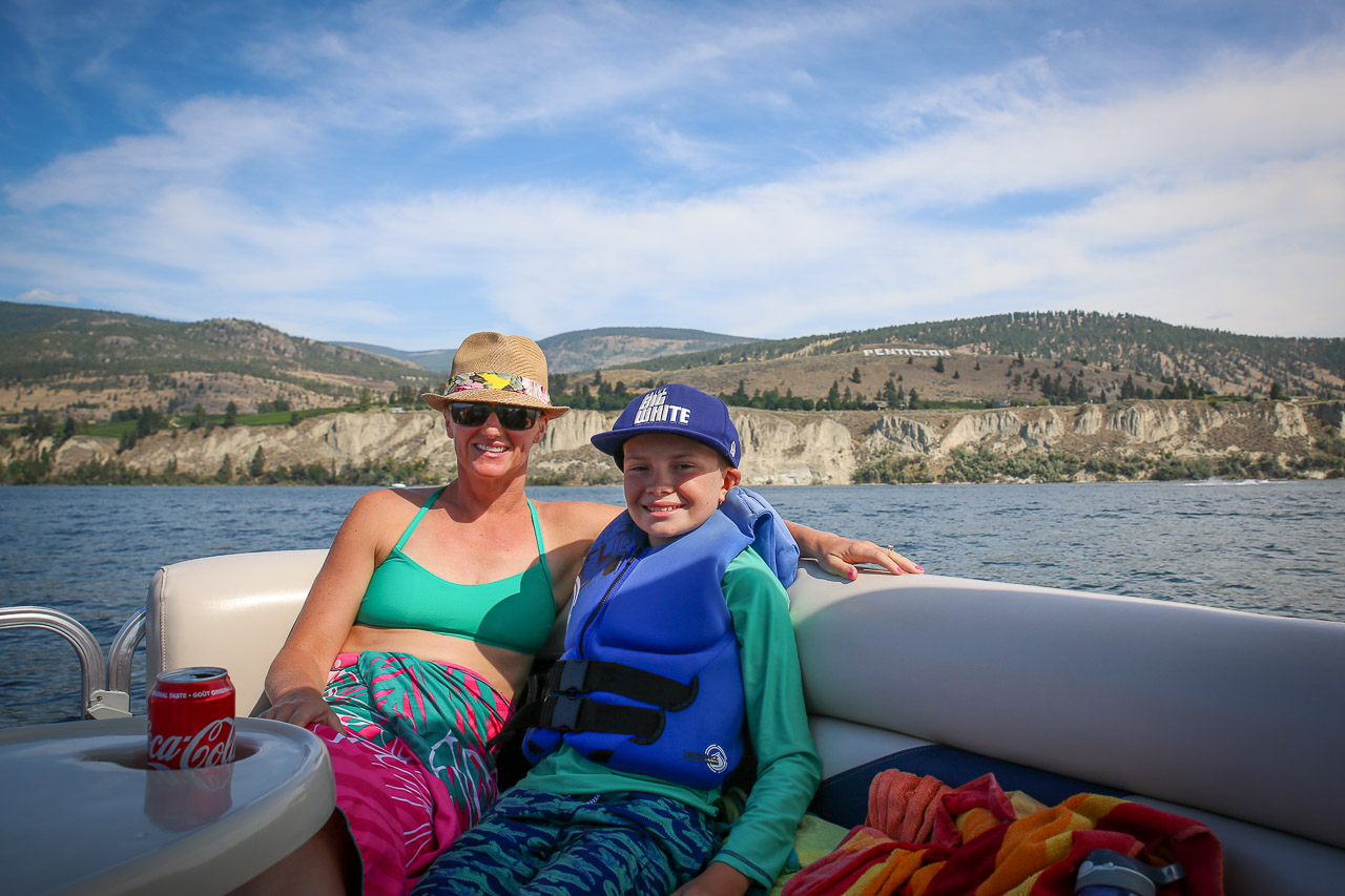 Anyway, we also went on a few adventures. Our friend Amber’s daughter babysat the kids for a day and we went with her and the rest of the ‘of age’ family members on a wonderful wine tour of the nearby Naramata area… amazing day, hit about 5-6 wineries and came back to the house with a few bottles! A day trip to Big White was also in the cards, though we didn’t get to go mountain biking due to some power issues (lifts weren’t working) – we made the best of it and did a little geo-caching instead! We also rented a boat for a change of pace another day; the kids always have a blast riding on the tube as we try to buck them off (need a more powerful boat as the kids get bigger)!