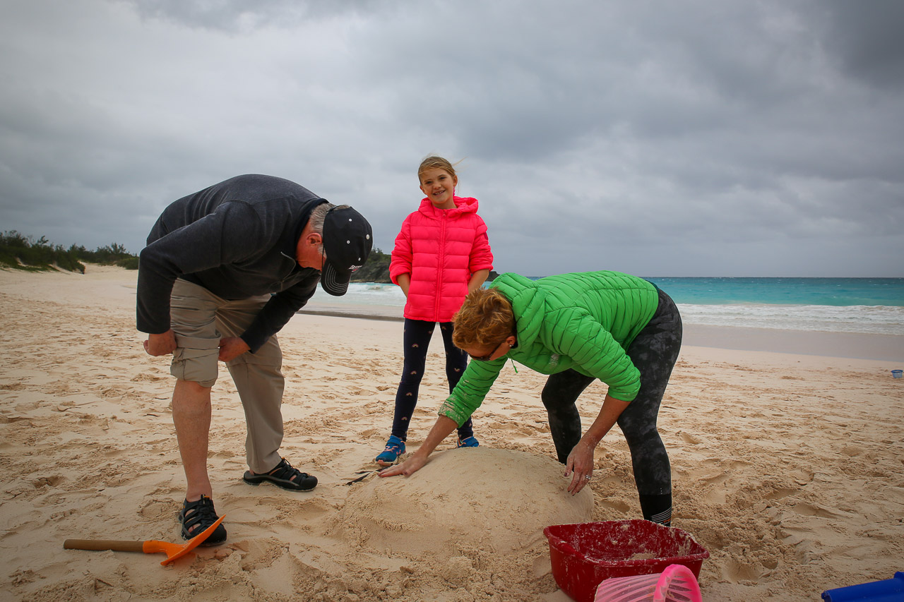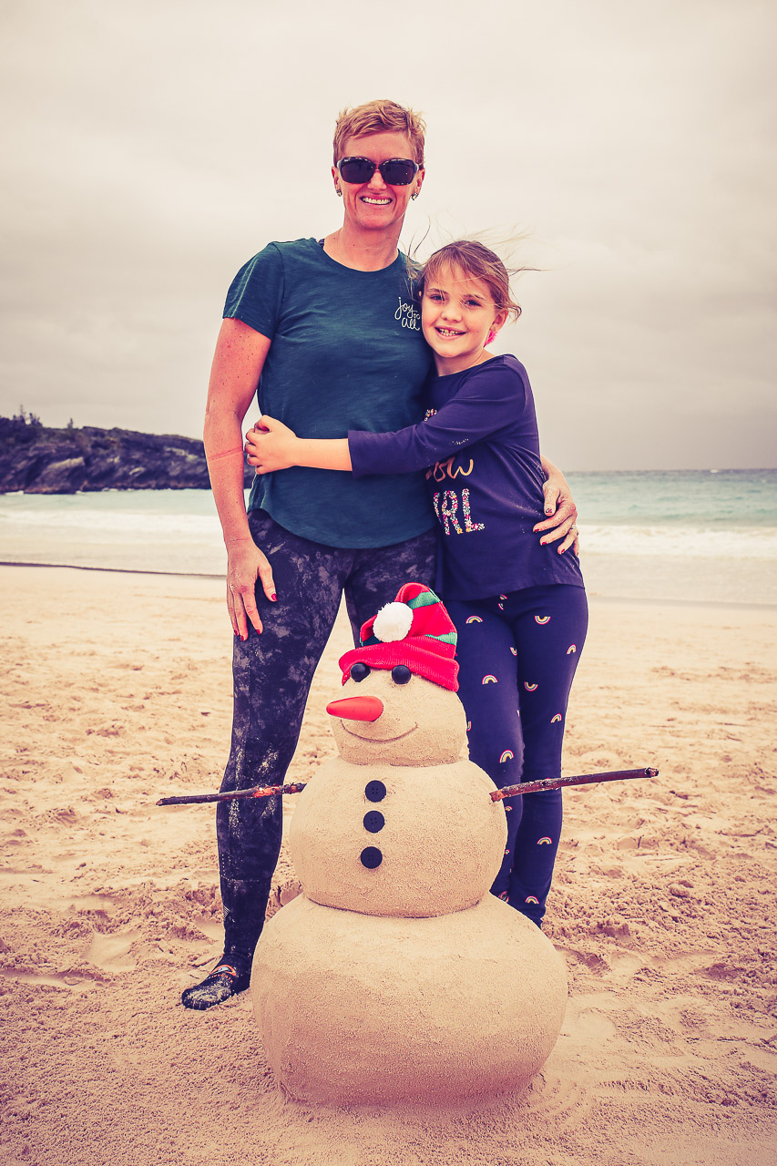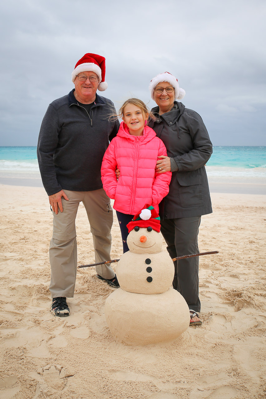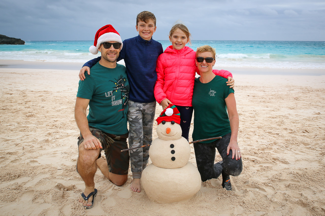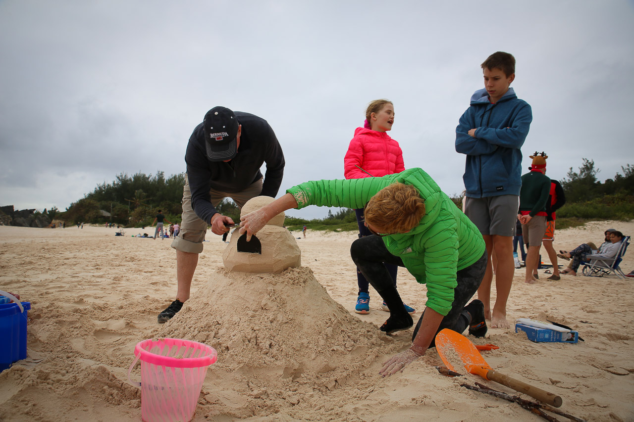 Unfortunately the weather on Christmas day was less than ideal, it was threatening rain and was fairly windy and cool – not at all the norm we’d come to know in all our Christmases on the island! We did want to make our traditional sand snowman (Jenn and Ryley actually took a sandcastle building course in November in preparation!), so we “bundled up” and went to Horseshoe Bay beach for a few hours. We had to burn up some time before we picked up our usual take-out Southampton hotel turkey dinner! Ultimately the weather was just fine and everyone had a wonderful day.