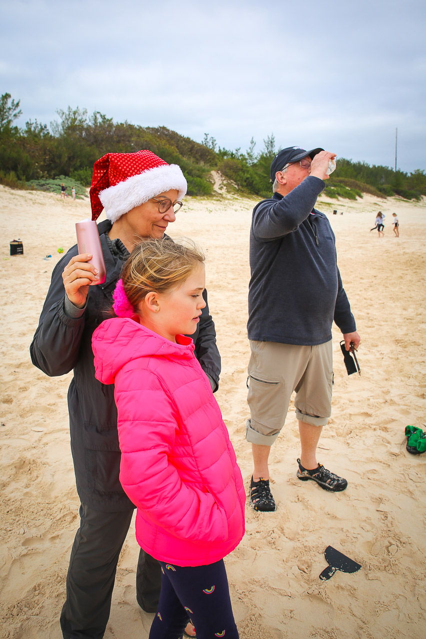 Finally, Ryley and Jenn started the new year off right the next morning with a ‘polar plunge’ at Tucker’s Point beach. Josh and I were too lazy to brave the ‘freezing’ 19.8C / 67.6F water…!