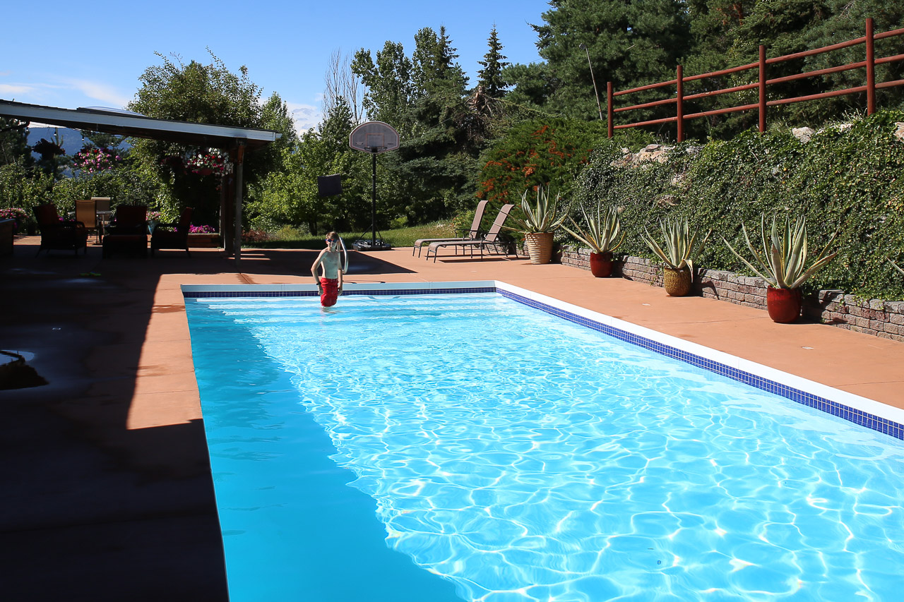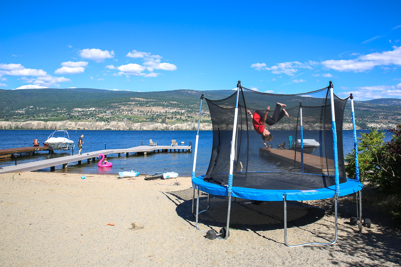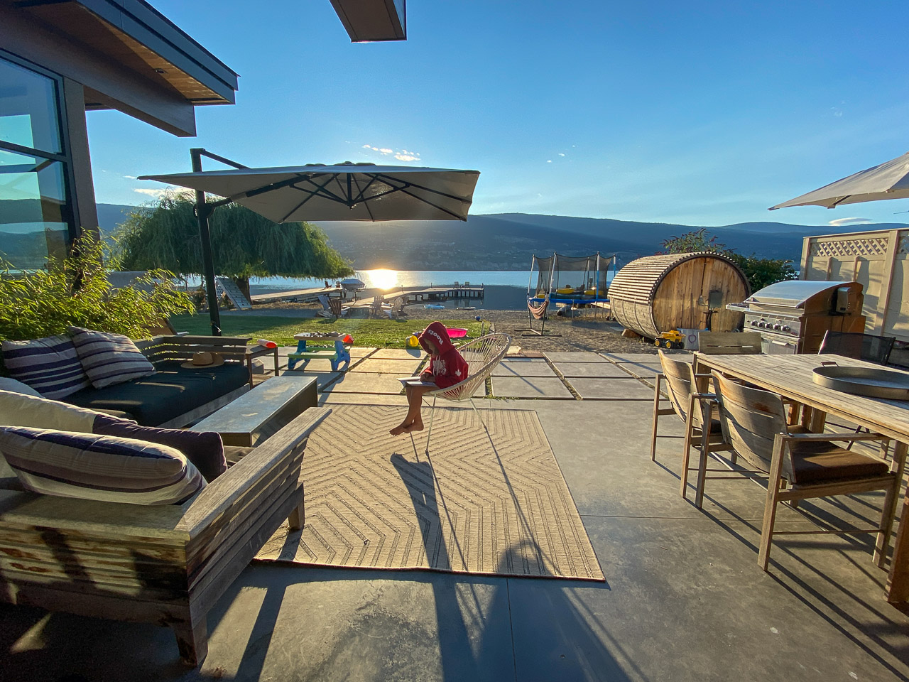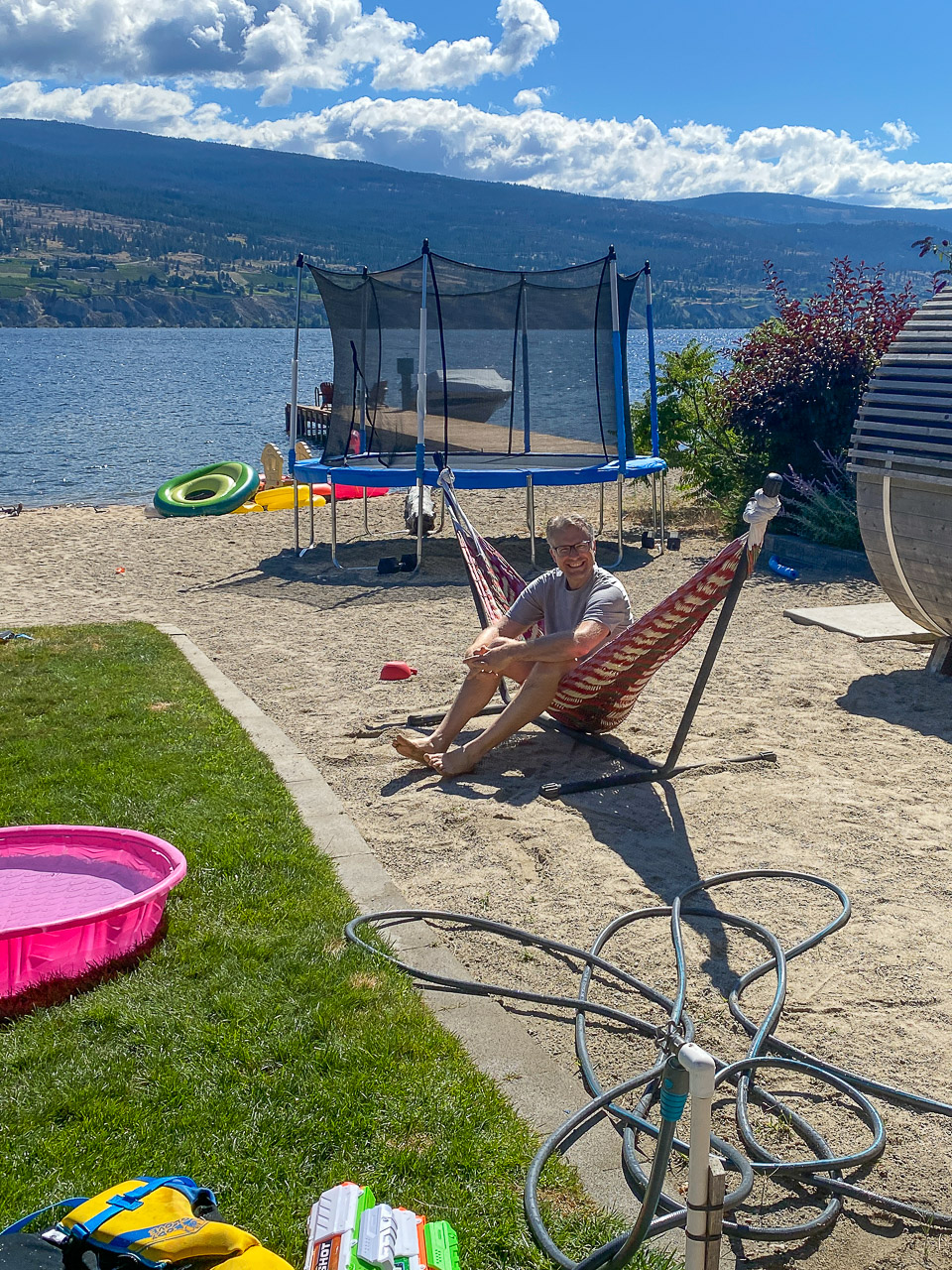 Our time in quarantine went as ok as it could have, it was nice to be able to relax by the pool at the end of a workday and on weekends, it made the time feel a bit ‘holiday-ish’. The +30 to +35 degree weather didn’t hurt either. The first week’s house was an older place but still spacious and all we needed. There was a great view over Vernon to Swan Lake, plus it was on about 5 acres so there was room to go for short walks (or run up and down the long driveway if you’re Jenn and in desperate need of exercise)! We quickly discovered the two ponies and Alpacas on property as well, it was a bit of a fun challenge for the kids to find and get a photo of the animals as apparently they like to hide, though we saw them often enough. The property we stayed in for the second week was literally 2 minutes up the road so the view was similarly spectacular, and the house and pool were much newer which pretty much made up for the fact that we had no fun animals on property! We used the fire pit for s’mores once or twice, plus there was a BBQ for us to use too, both a nice-to-have for sure. So we were comfortable but were still counting the days (literally) we had left before we were free! We had two calls to check on our health from the BC Health Authority during the two weeks, and were pleasantly surprised on the last call to find out that isolation time was over at midnight that night rather than 3:30pm the following day (which would have been the exact 14-day mark)! We made it!