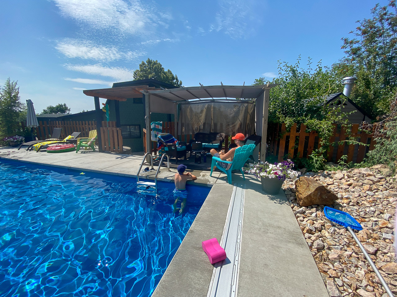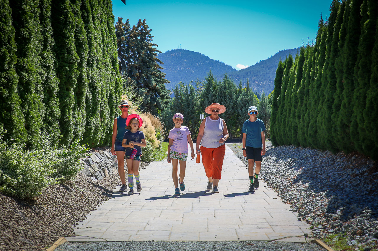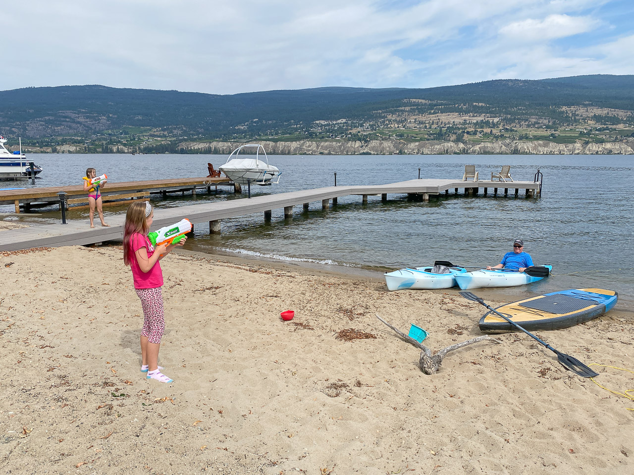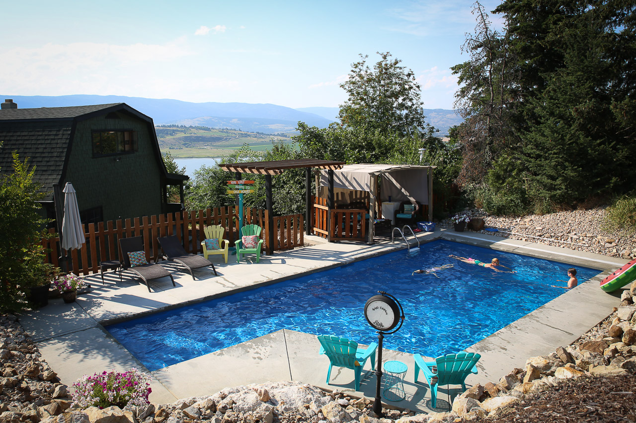 Our time in quarantine went as ok as it could have, it was nice to be able to relax by the pool at the end of a workday and on weekends, it made the time feel a bit ‘holiday-ish’. The +30 to +35 degree weather didn’t hurt either. The first week’s house was an older place but still spacious and all we needed. There was a great view over Vernon to Swan Lake, plus it was on about 5 acres so there was room to go for short walks (or run up and down the long driveway if you’re Jenn and in desperate need of exercise)! We quickly discovered the two ponies and Alpacas on property as well, it was a bit of a fun challenge for the kids to find and get a photo of the animals as apparently they like to hide, though we saw them often enough. The property we stayed in for the second week was literally 2 minutes up the road so the view was similarly spectacular, and the house and pool were much newer which pretty much made up for the fact that we had no fun animals on property! We used the fire pit for s’mores once or twice, plus there was a BBQ for us to use too, both a nice-to-have for sure. So we were comfortable but were still counting the days (literally) we had left before we were free! We had two calls to check on our health from the BC Health Authority during the two weeks, and were pleasantly surprised on the last call to find out that isolation time was over at midnight that night rather than 3:30pm the following day (which would have been the exact 14-day mark)! We made it!