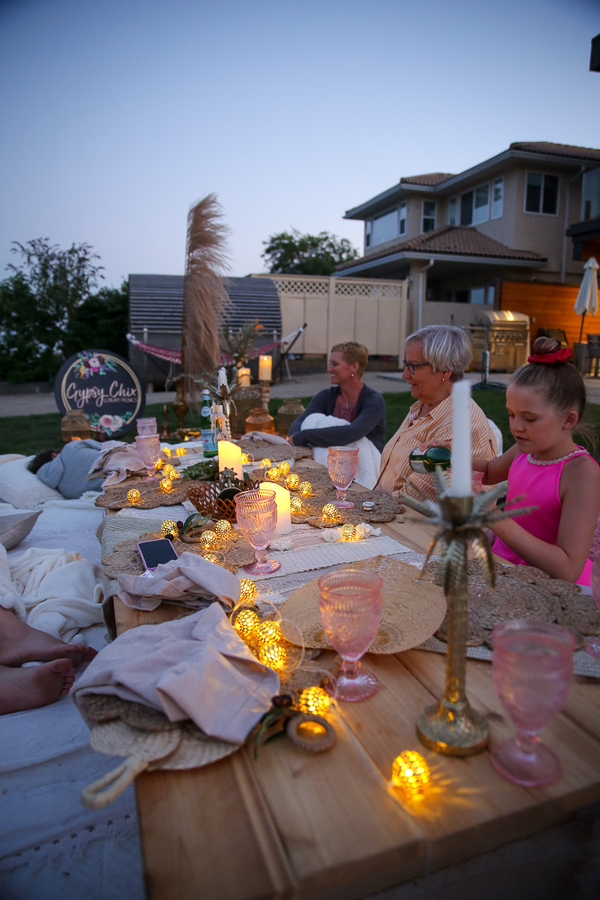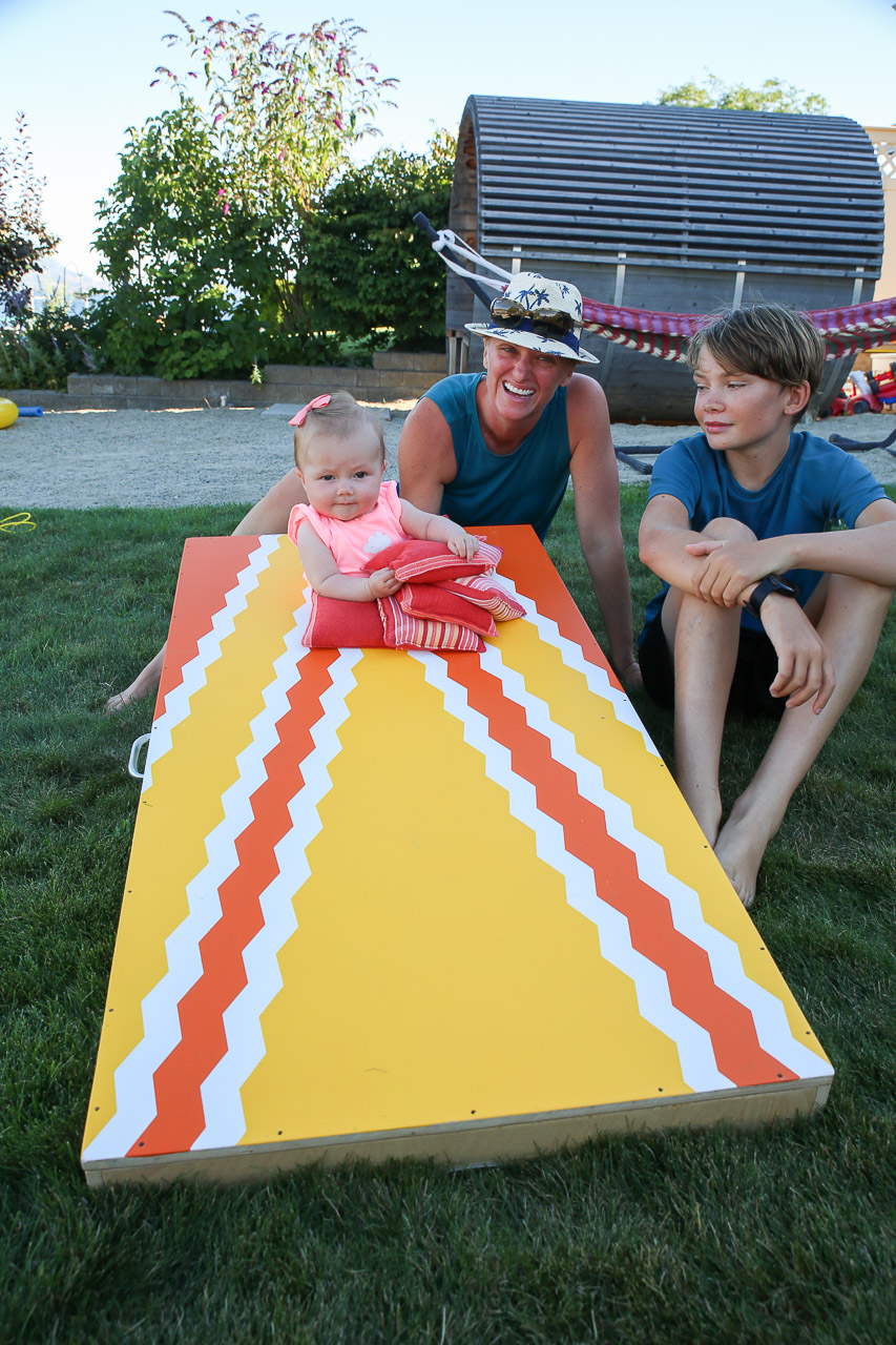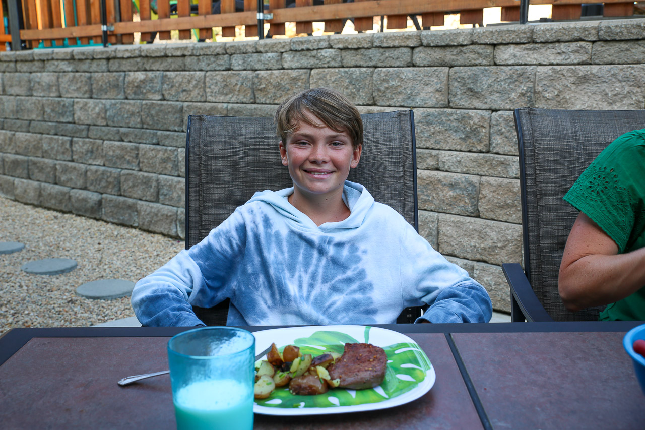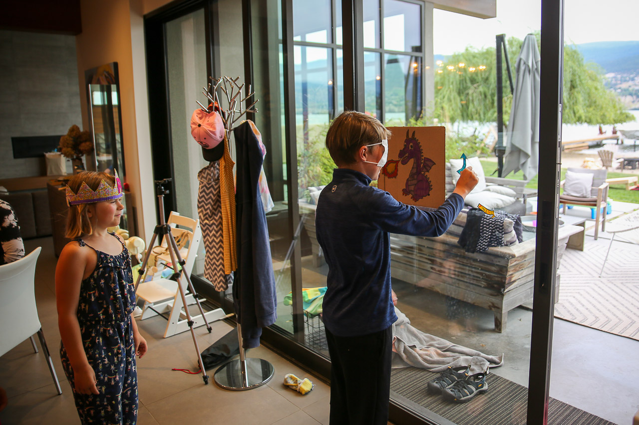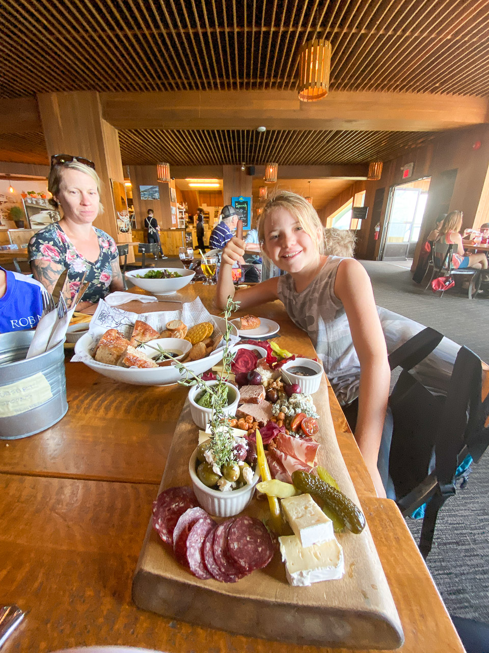 Once situated in Summerland it was time to just decompress after a long last several months of COVID-induced stress! The house was actually the same one we rented last year, a rather large and gorgeous contemporary place right on the lake. We didn’t stray too far from the house this year of course, but still found our way to a few wineries and fruit stands for some local home-grown goodness! These coupled with our usual home-cooked meals and perhaps a few cocktails were the perfect vacation recipe. The most elaborate meal we ate was actually part of the surprise 70th birthday celebration for Jenn’s mom Helen: the kids arranged for a super-fancy picnic at the house, complete with a million pillows around a low table in the yard overlooking the beach, fancy stemware and of course a meal of charcuterie boards – all set up and provided by a company called Gypsy Chix Luxury Picnics (set up was done while Jenn and Wendy were ‘distracting’ Helen at a nearby winery…!). Wendy whipped up an amazing pavlova for dessert, too, which we enjoyed before retiring to the beach fire pit and a few cocktails before bed. Not a bad birthday party I’d say! This wasn’t even the first birthday party we had this holiday – we had a little celebration for Ruby’s 7th birthday a few days earlier, complete with a wicked dragon cake (another Wendy creation) and some karaoke! These guys know how to party. 😉