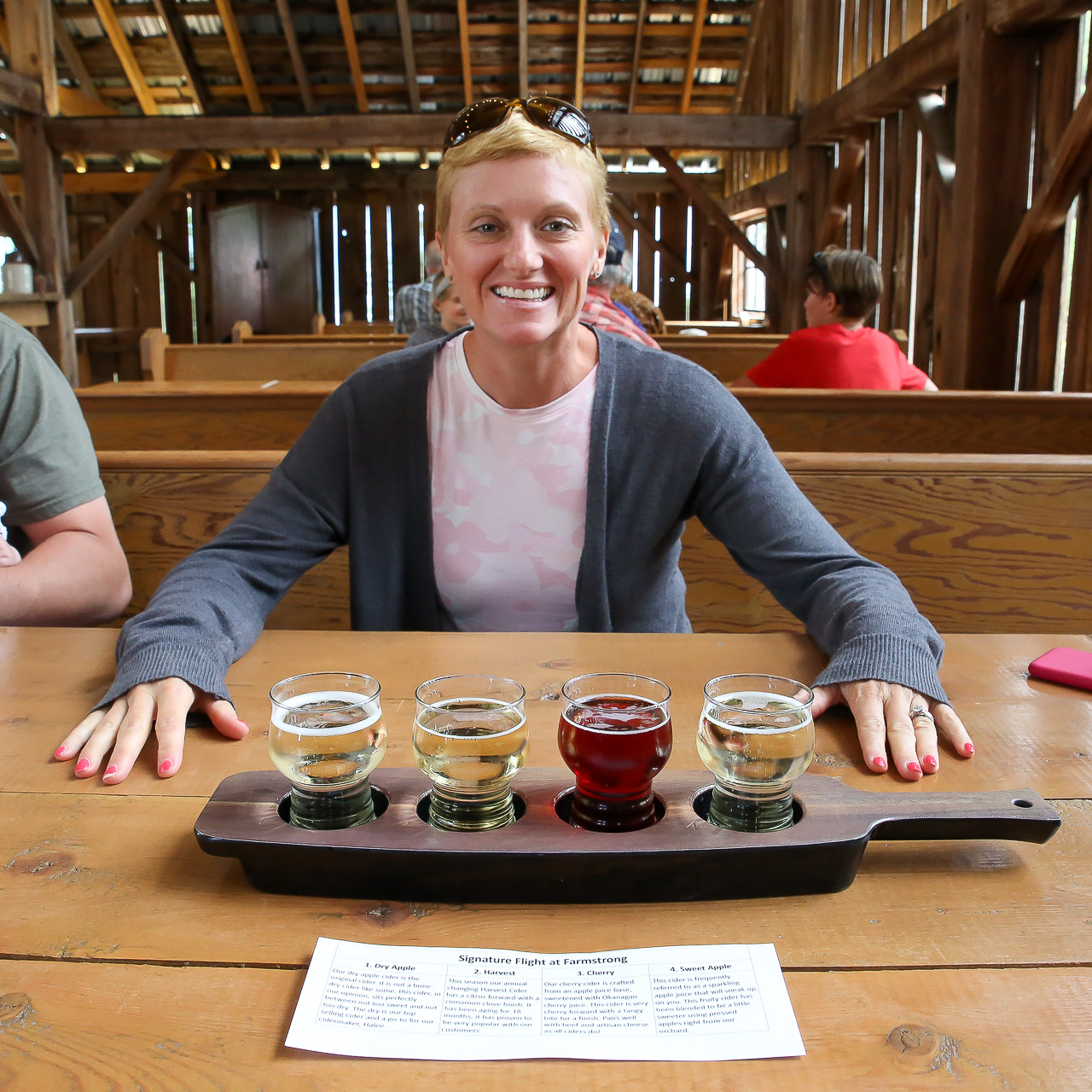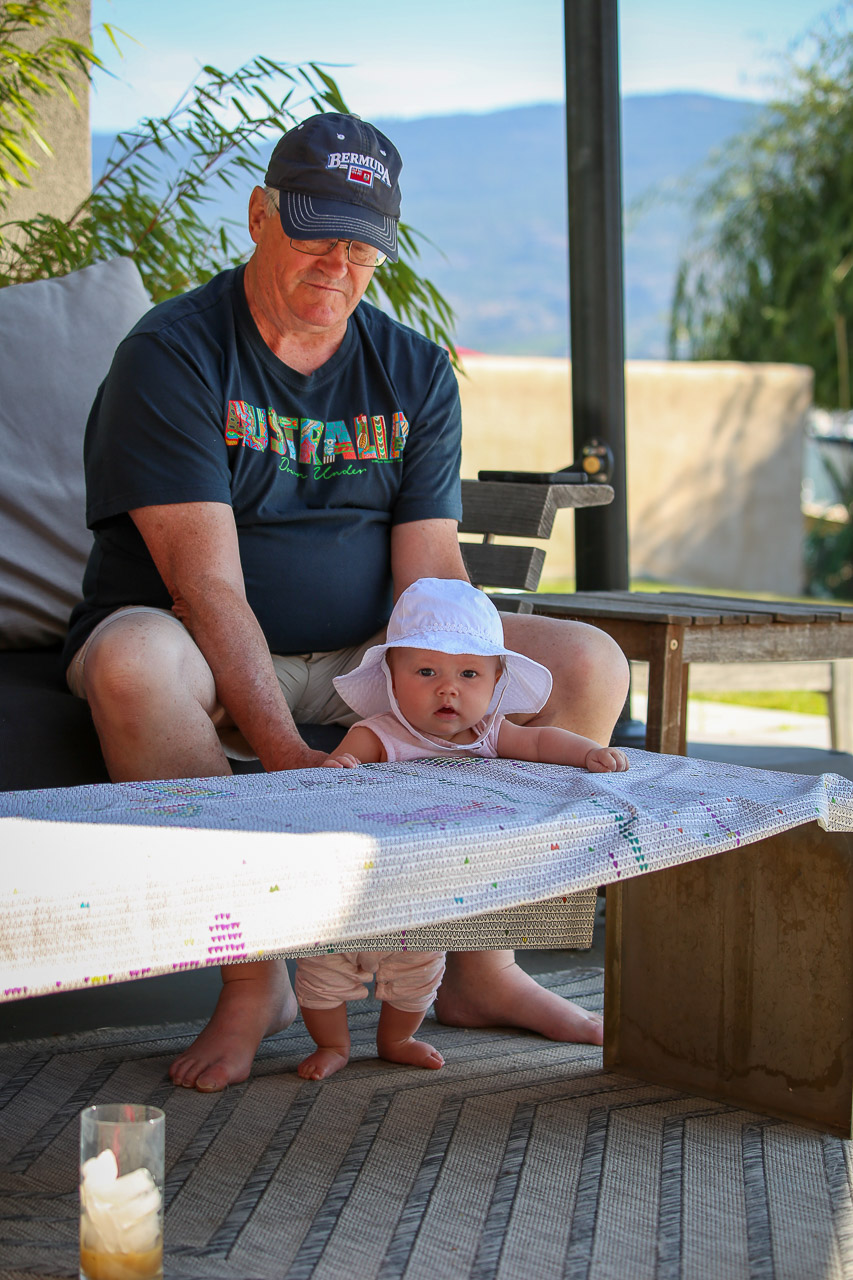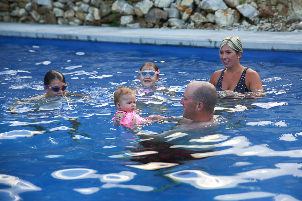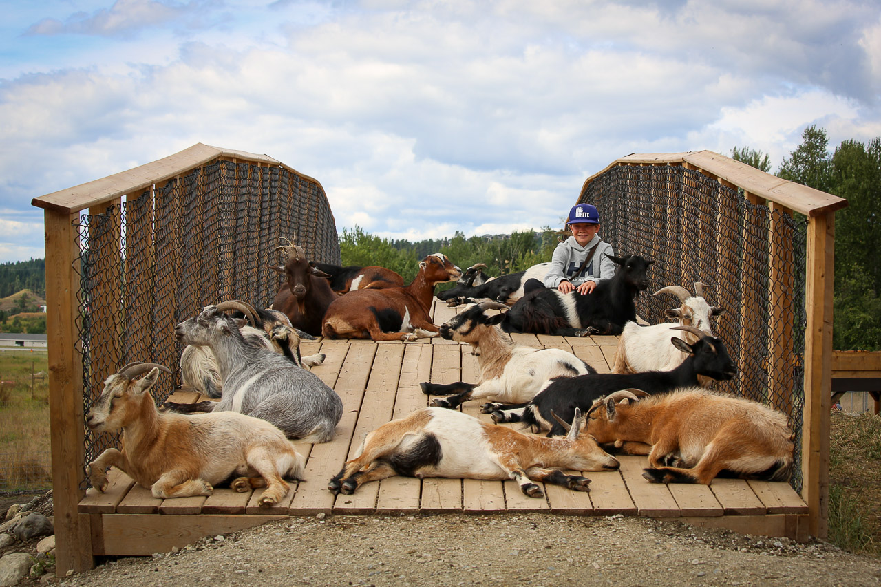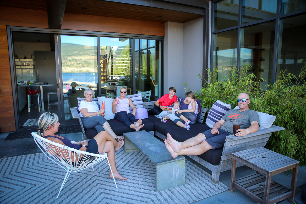 We had a nice surprise our last night in Vernon, as Jenn’s brother and gf Sarah plus new baby Denver stopped in for the night! Jenn’s family were all due to meet up in Summerland the following afternoon so we were happy to see them earlier than expected. It was late when they arrived so Denver was already asleep; the next morning you might have thought it was Christmas with all the excitement! After introductions it was time for breakfast and one last dip in the pool before packing up and heading to Summerland. We had time to kill between leaving the house by 10am and arriving at the Summerland house by 3pm, so on the way down we met up with Jenn’s folks at the Log Barn in Armstrong for a little entertainment then lunch at Farmstrong Cider, before trying out Westside Road instead of the usual highway through Kelowna (a good decision I think, never went that way before) to get down to our final destination.