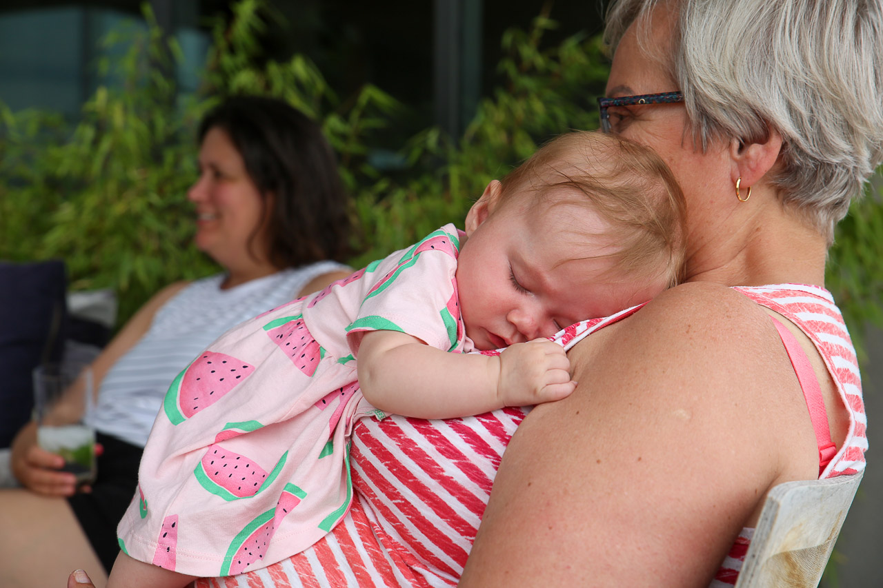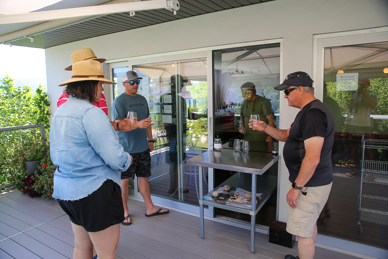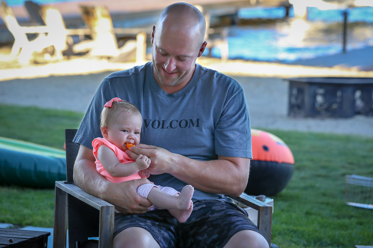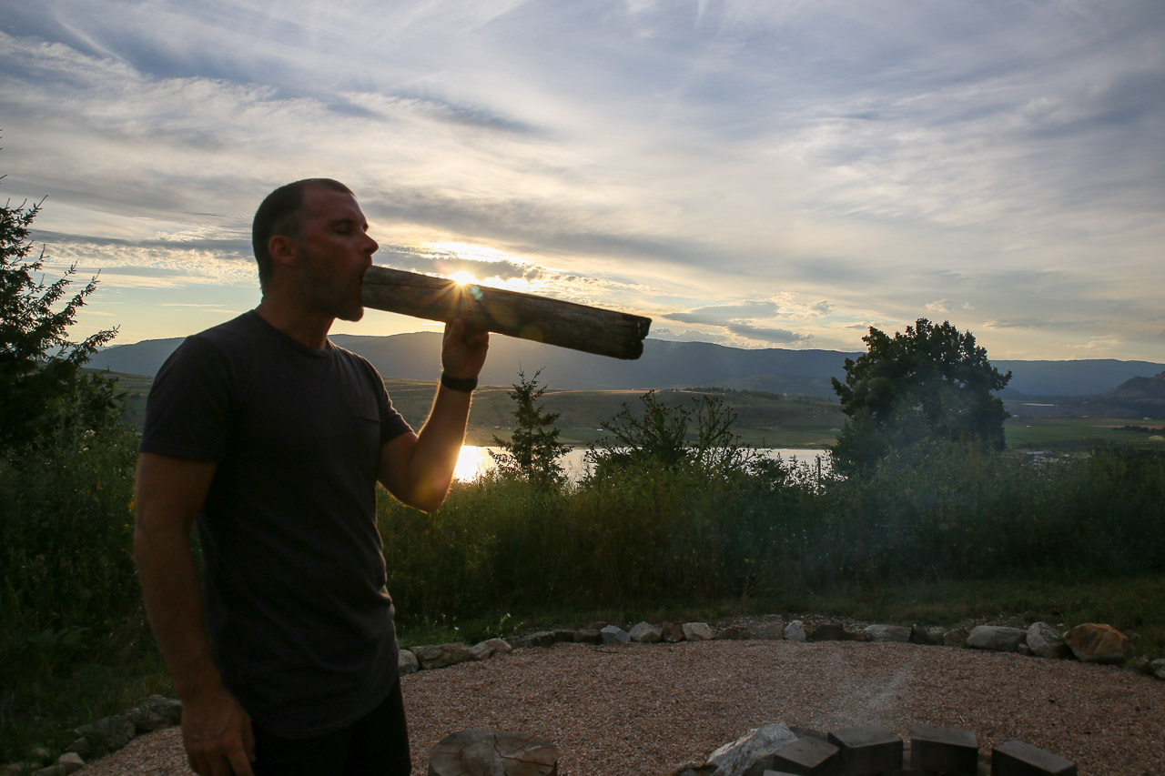We had a nice surprise our last night in Vernon, as Jenn’s brother and gf Sarah plus new baby Denver stopped in for the night! Jenn’s family were all due to meet up in Summerland the following afternoon so we were happy to see them earlier than expected. It was late when they arrived so Denver was already asleep; the next morning you might have thought it was Christmas with all the excitement! After introductions it was time for breakfast and one last dip in the pool before packing up and heading to Summerland. We had time to kill between leaving the house by 10am and arriving at the Summerland house by 3pm, so on the way down we met up with Jenn’s folks at the Log Barn in Armstrong for a little entertainment then lunch at Farmstrong Cider, before trying out Westside Road instead of the usual highway through Kelowna (a good decision I think, never went that way before) to get down to our final destination.