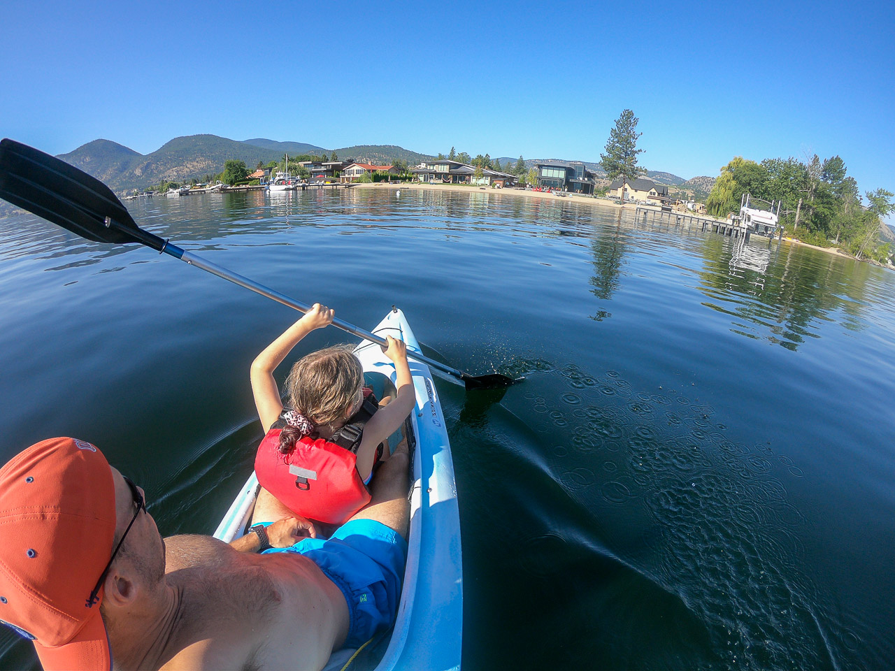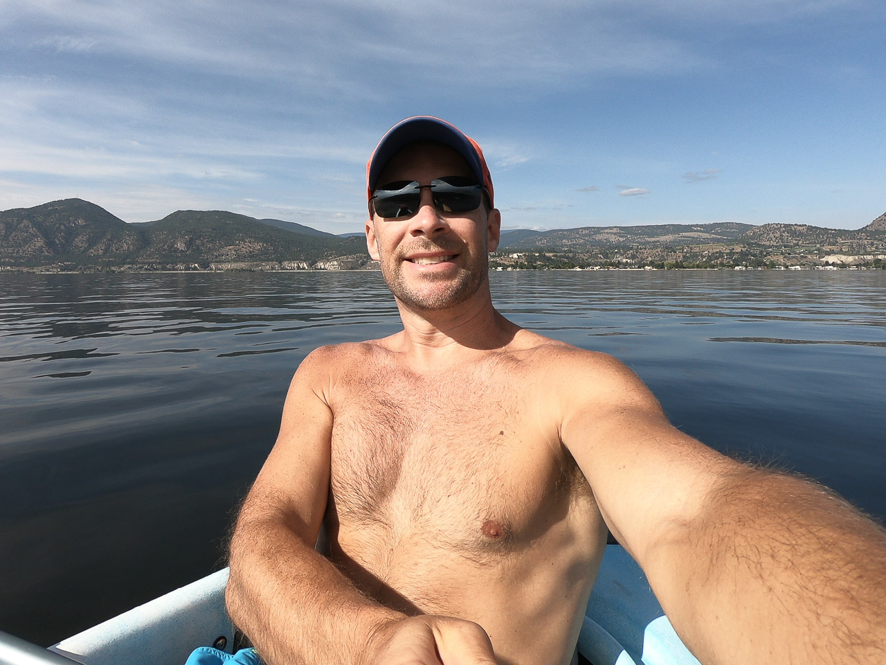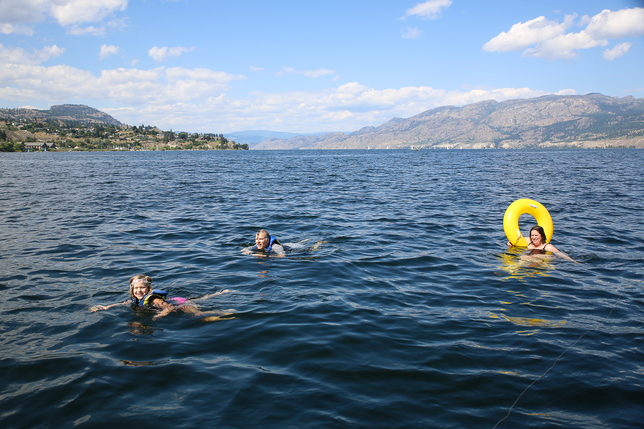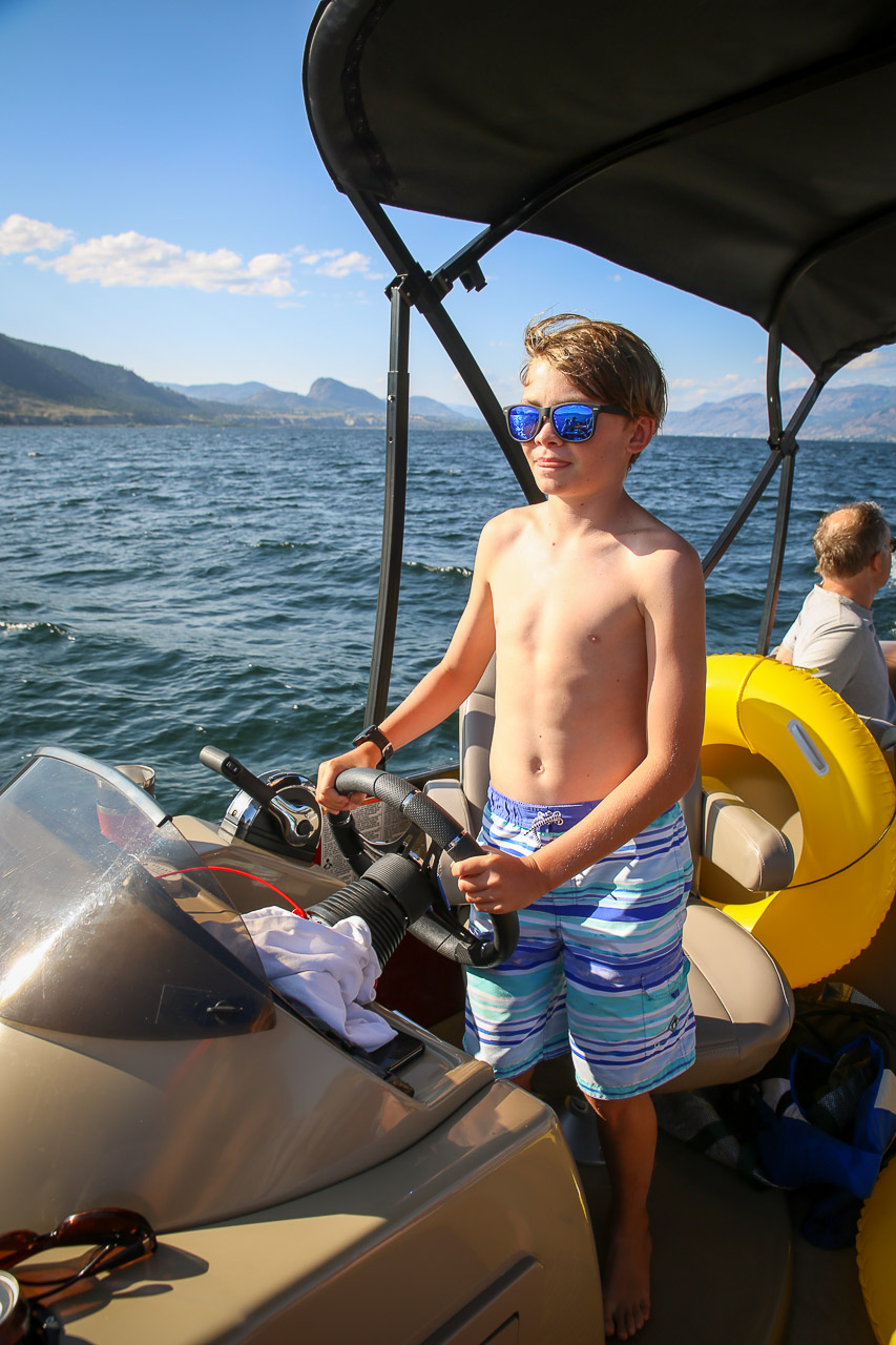 We did get some exercise while eating and drinking the week away… in addition to going for some long-awaited runs, we thought it would be a good idea to take the kayaks and paddle to the opposite side of the lake and back! We wondered aloud more than a few times how long it would take, so Jenn convinced Tim and I to just go for it. Turns out it was about 2.5km across, I believe it took about an hour to get across and back. Then Jenn and Wendy did it the following morning, and Josh made the trip with me after that! We also did some actual boating with the whole family, too, on a pontoon boat we rented for a day down in nearby Penticton.