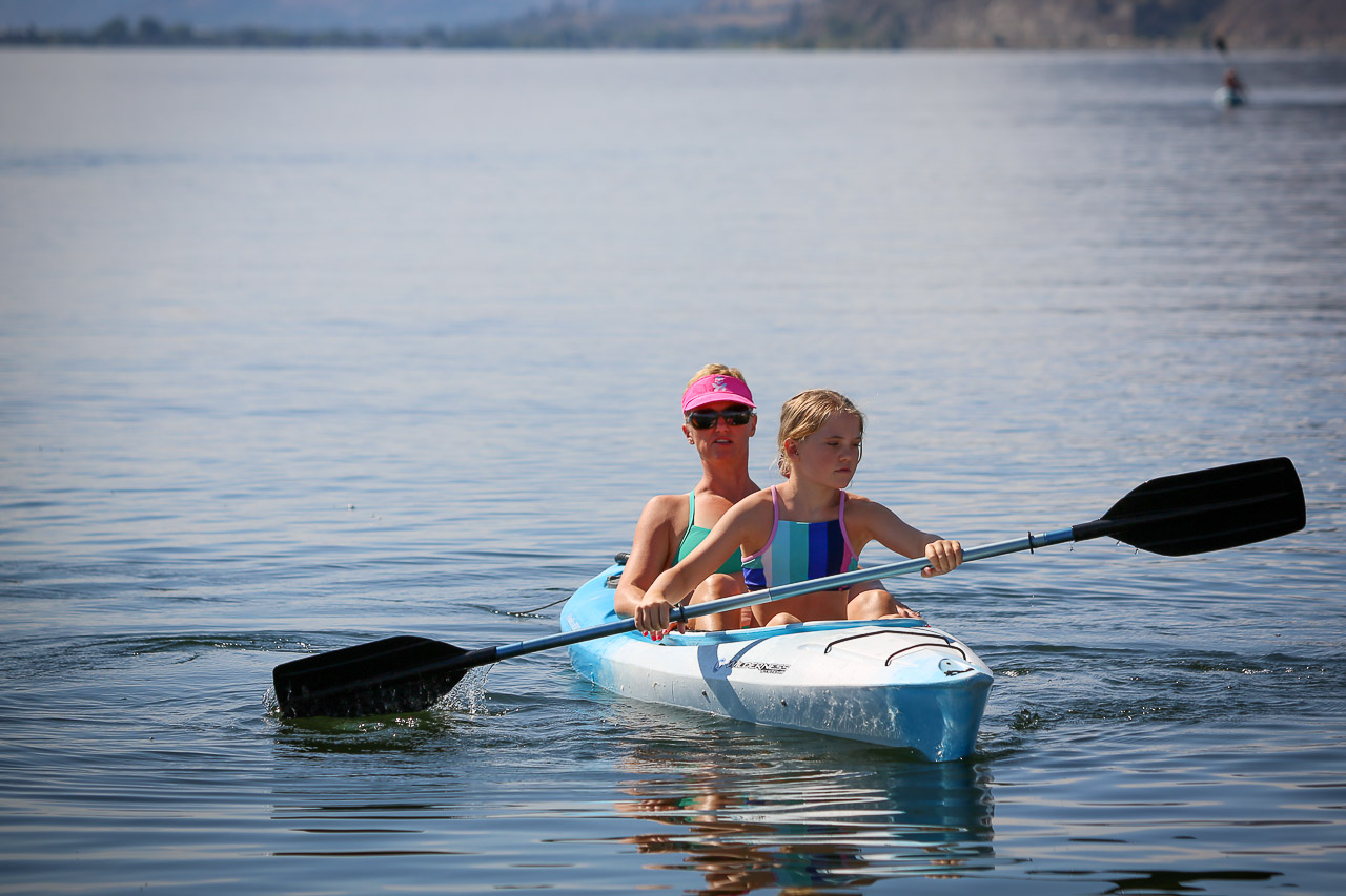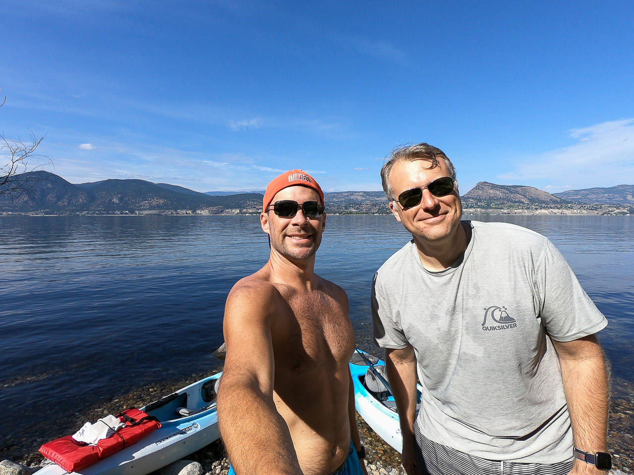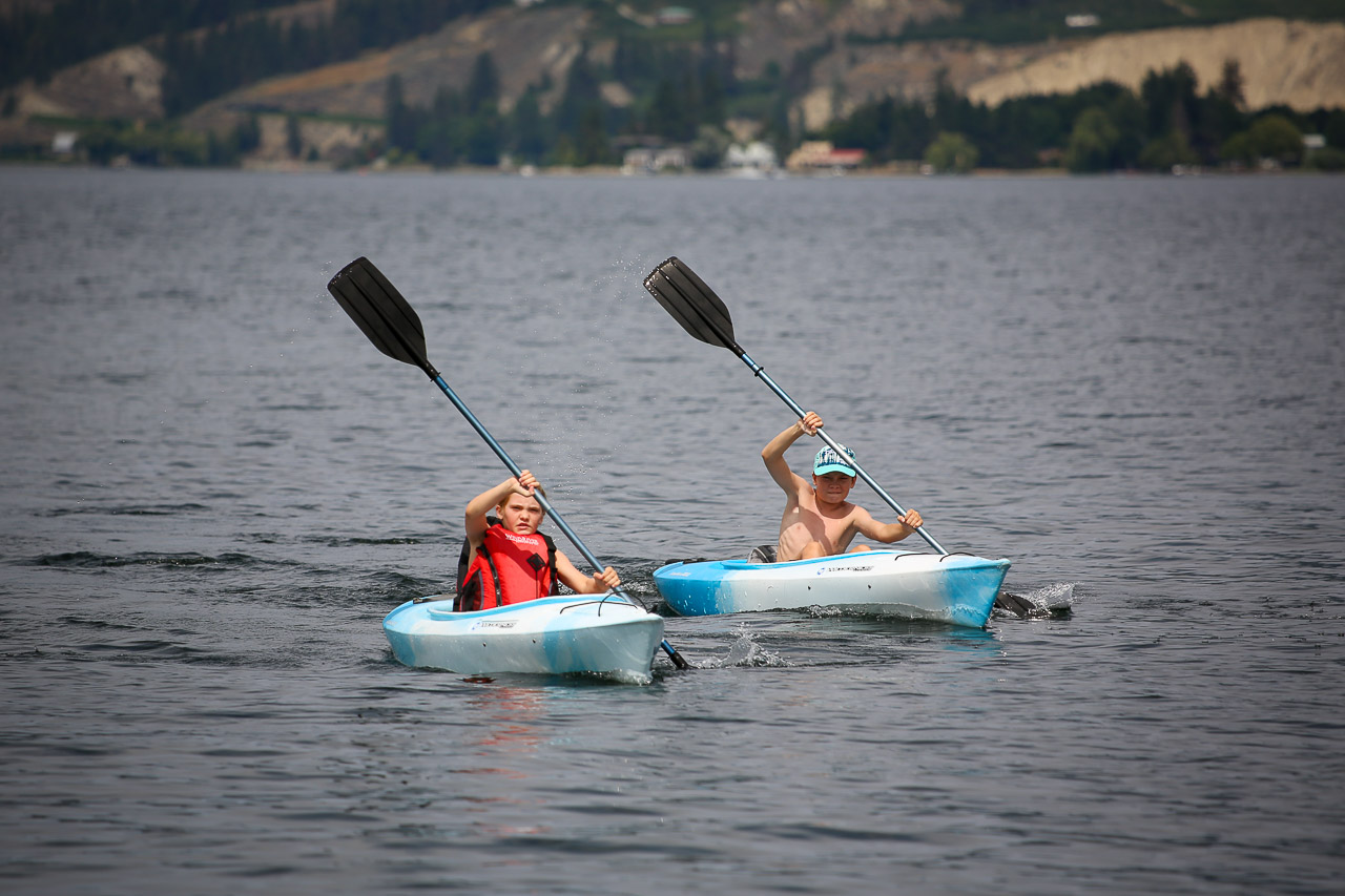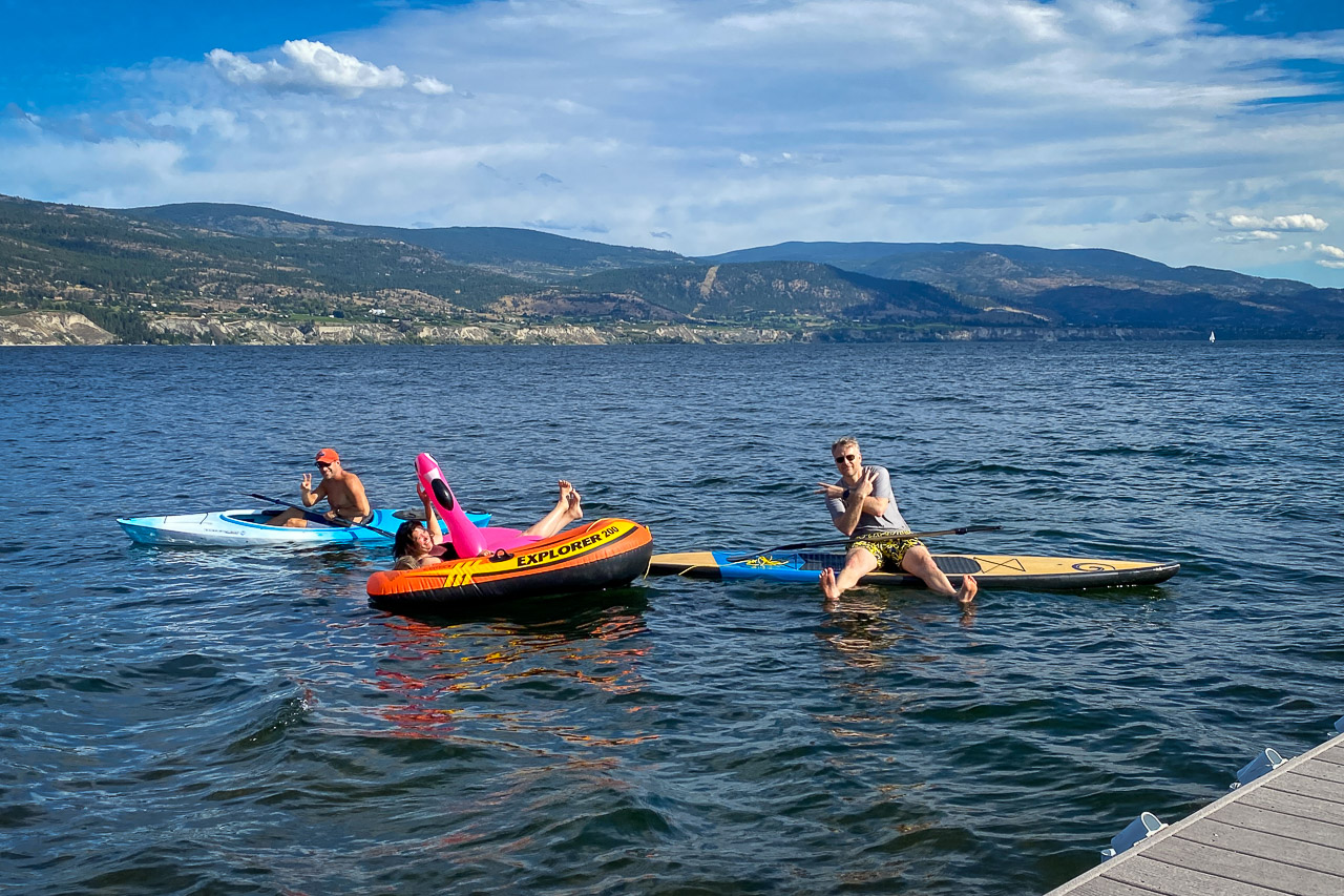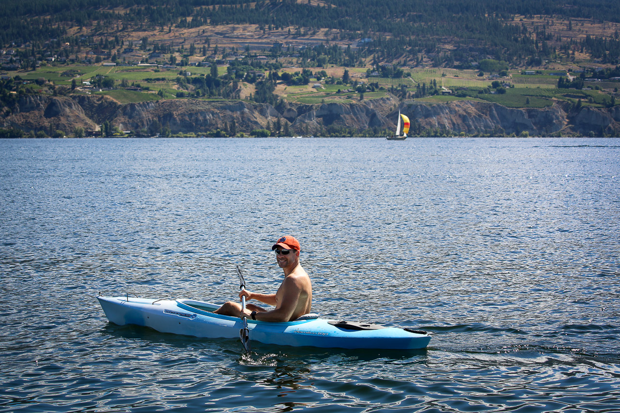 We did get some exercise while eating and drinking the week away… in addition to going for some long-awaited runs, we thought it would be a good idea to take the kayaks and paddle to the opposite side of the lake and back! We wondered aloud more than a few times how long it would take, so Jenn convinced Tim and I to just go for it. Turns out it was about 2.5km across, I believe it took about an hour to get across and back. Then Jenn and Wendy did it the following morning, and Josh made the trip with me after that! We also did some actual boating with the whole family, too, on a pontoon boat we rented for a day down in nearby Penticton.