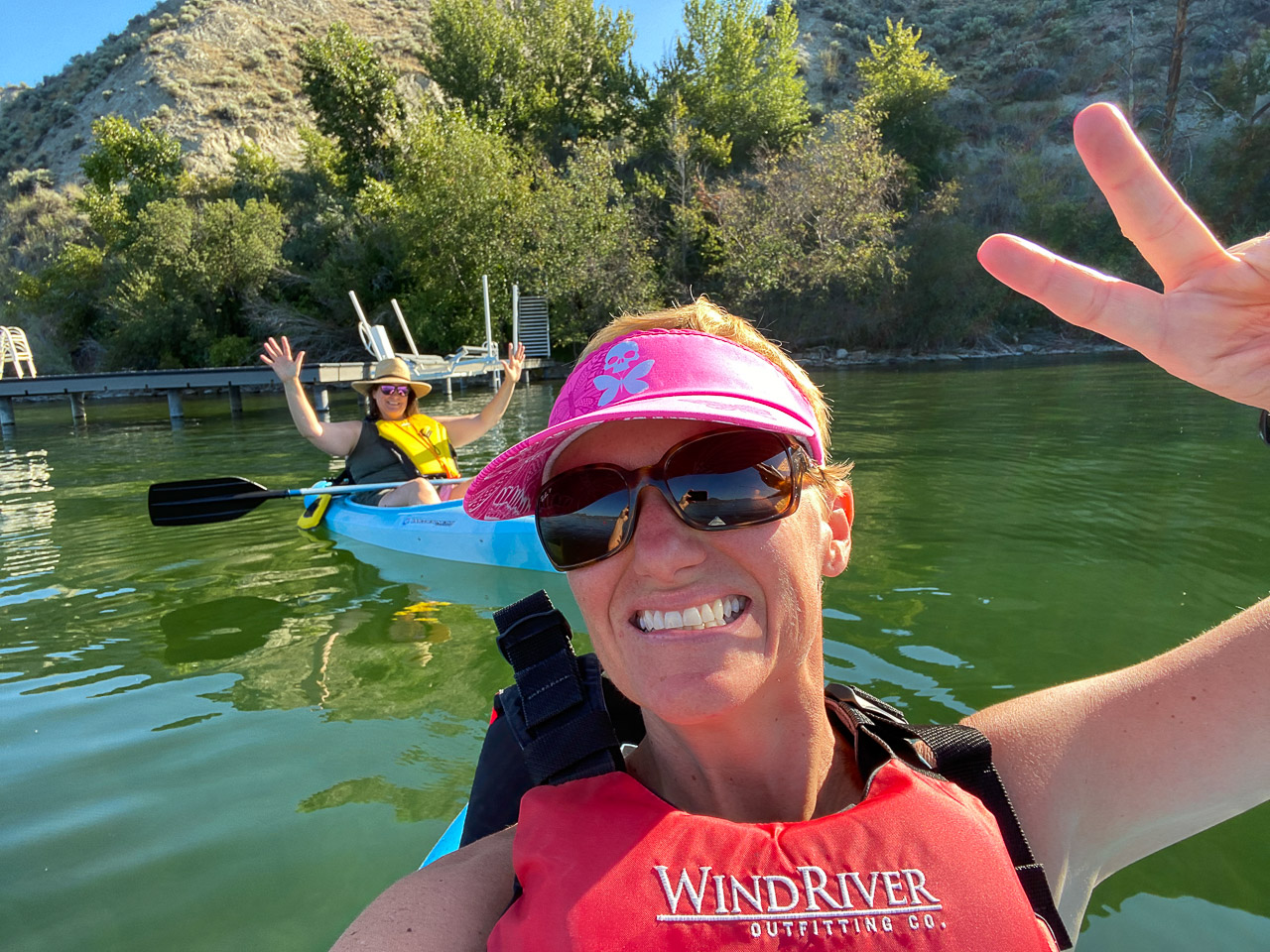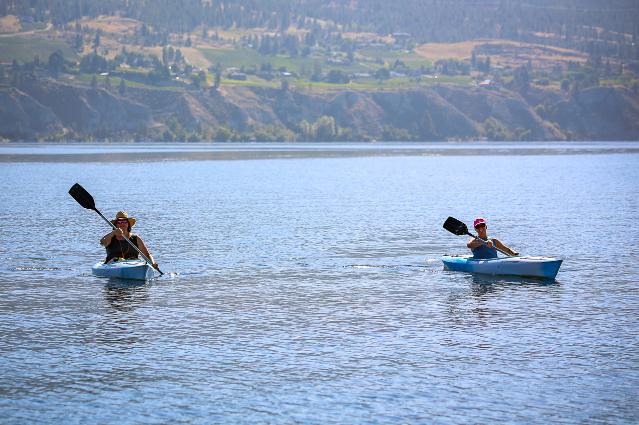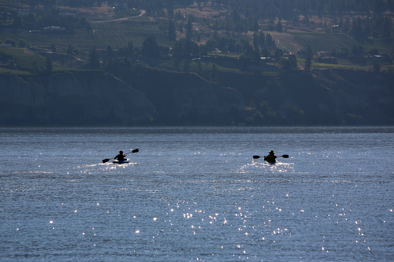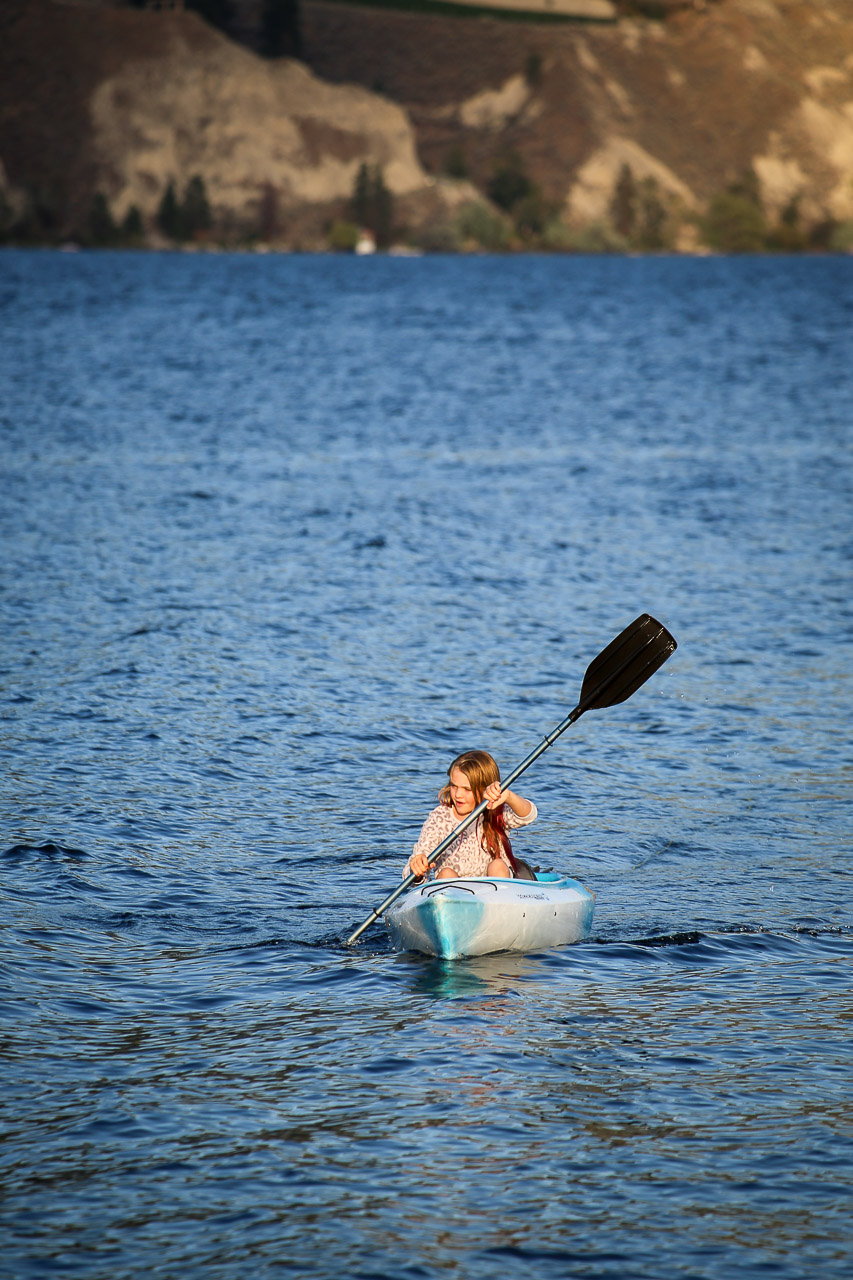 We did get some exercise while eating and drinking the week away… in addition to going for some long-awaited runs, we thought it would be a good idea to take the kayaks and paddle to the opposite side of the lake and back! We wondered aloud more than a few times how long it would take, so Jenn convinced Tim and I to just go for it. Turns out it was about 2.5km across, I believe it took about an hour to get across and back. Then Jenn and Wendy did it the following morning, and Josh made the trip with me after that! We also did some actual boating with the whole family, too, on a pontoon boat we rented for a day down in nearby Penticton.