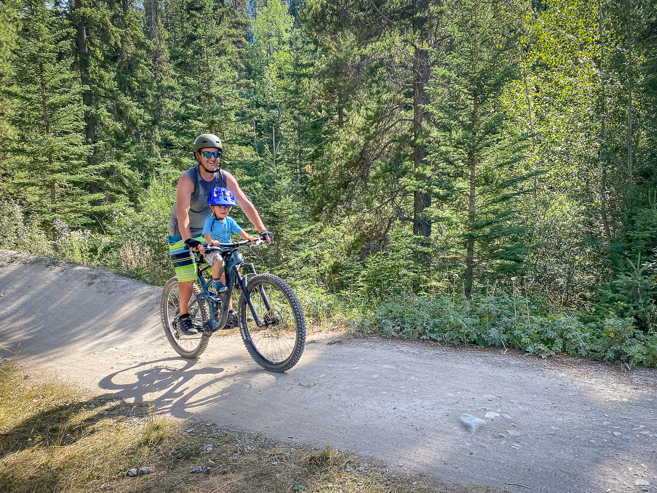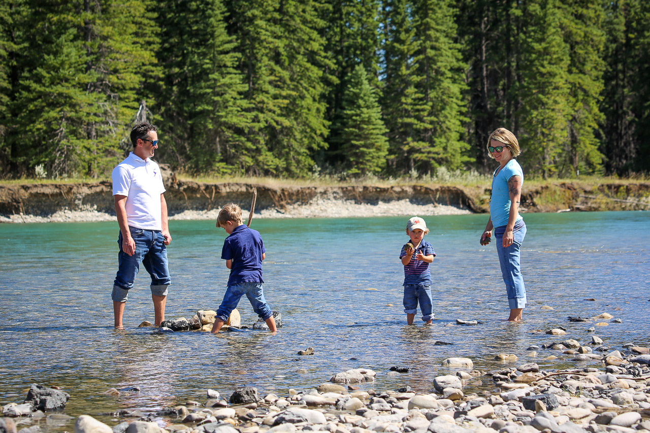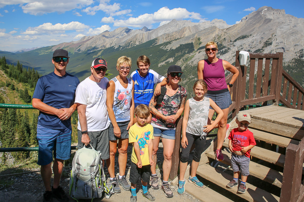 We had about 4 days there, so we filled ’em up with plenty of stuff! We spent lots of time biking along the various trails (like around the Nordic Center) and back roads in Canmore (Josh, Kent, Dad, and myself did 20K one day); there are just so many trails and bike parks, it’s awesome. We had rented some pretty sweet mountain bikes at the Nordic Center – Josh had a full suspension bike and was definitely loving the bike parks! We did our share of hiking, too – we took on the Grotto Canyon trail as well as another smaller trail in town, both of which were handled admirably by the little boys! Mom managed to find time to get Uncle Kyle to come down for some family photos as well – they should turn out pretty well, she’ll have these up on her wall in no time I’m sure! Ski hills are pretty cool to see in the summertime, Mount Norquay is no exception. They served us a great lunch at the quaint Cliffhouse Bistro at the top of the main lift – Ryley’s charcuterie board was the most talked about (the fancy local wild meat was amazing)!