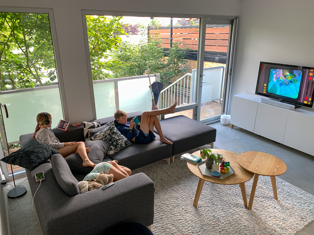 So we arrive in Vancouver on what I believe was day 28 of our crazy Canadian trip… what a break so far, we’ve nearly reached the end (promise!). It was actually Tim’s birthday so we happily helped him celebrate! We snuck away to Chilliwack (with Ruby in tow) for our first full day to see my Lang grandparents (another box ticked!) and nearly got lost in a corn maze; it was nice to see them and hang at their place for a bit – it had been a while! Back in Vancouver, we did a few things like a bike ride one afternoon in Stanley Park (’cause you’ve gotta!), but mostly spent our final week of vacation chillin’ like villains at Wendy and Tim’s new house (yet another box ticked!). It was great to have the space to stay with them at their beautiful place, in their previous (smaller) abode we would have got a hotel room nearby. We were originally planning on being there for just a few days, but due to flight changes we ended up staying for an entire week! Jenn and I helped Wendy with some things around the house over the weekend (yay, building stuff!) and due to our extended time away we agreed to return to work remotely for our final few days. The kids went to a mountain biking camp with their cousin Ruby to pass the time (and not drive Wendy bonkers!) while we worked.